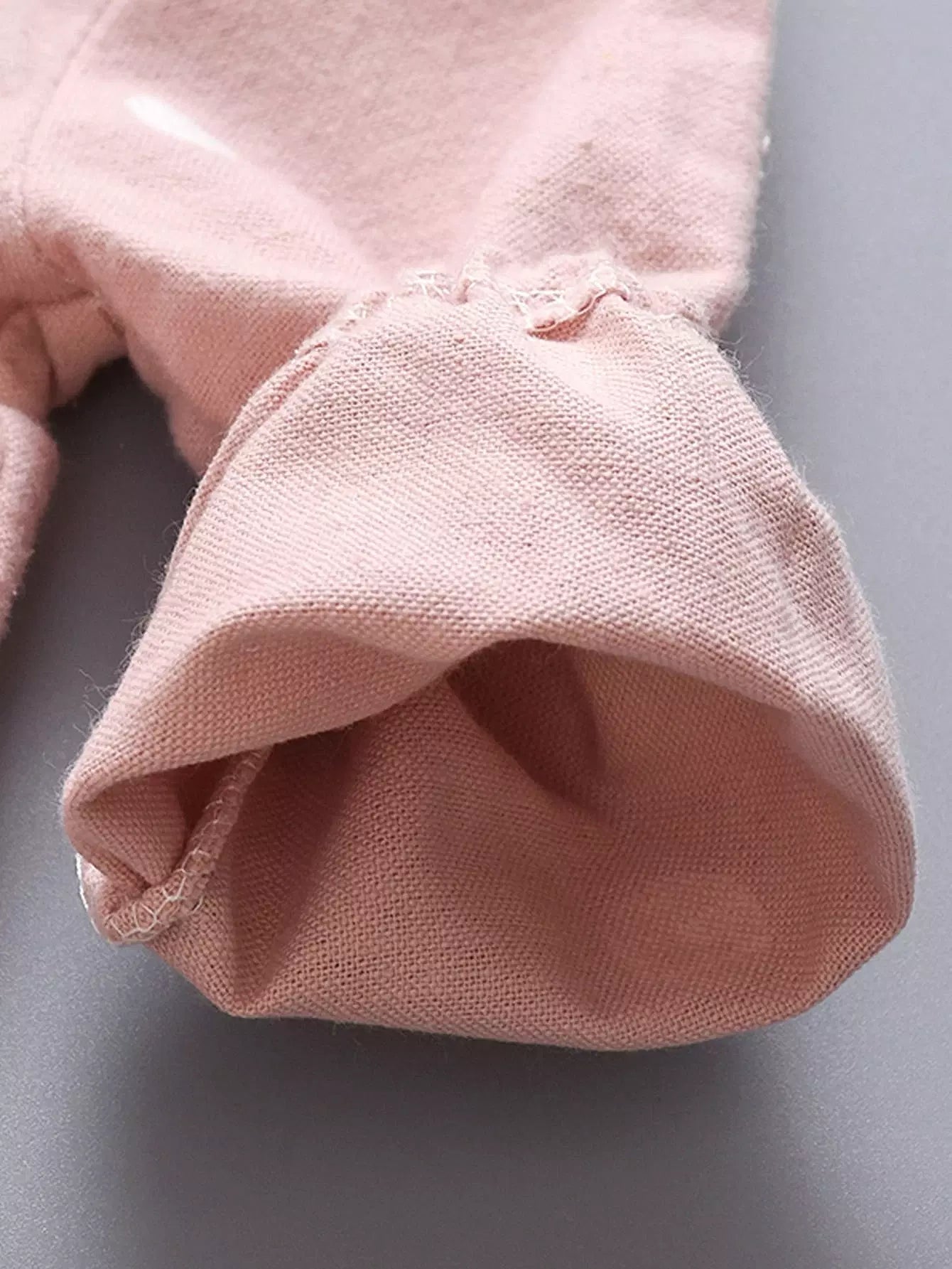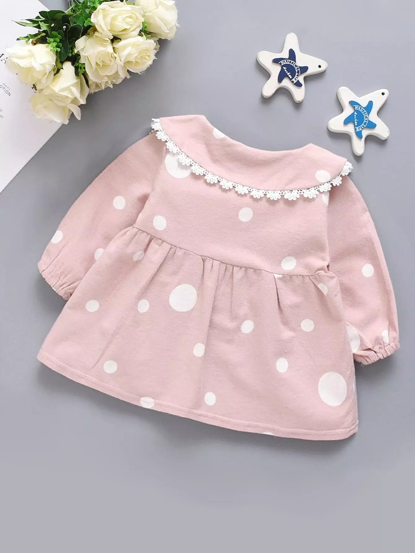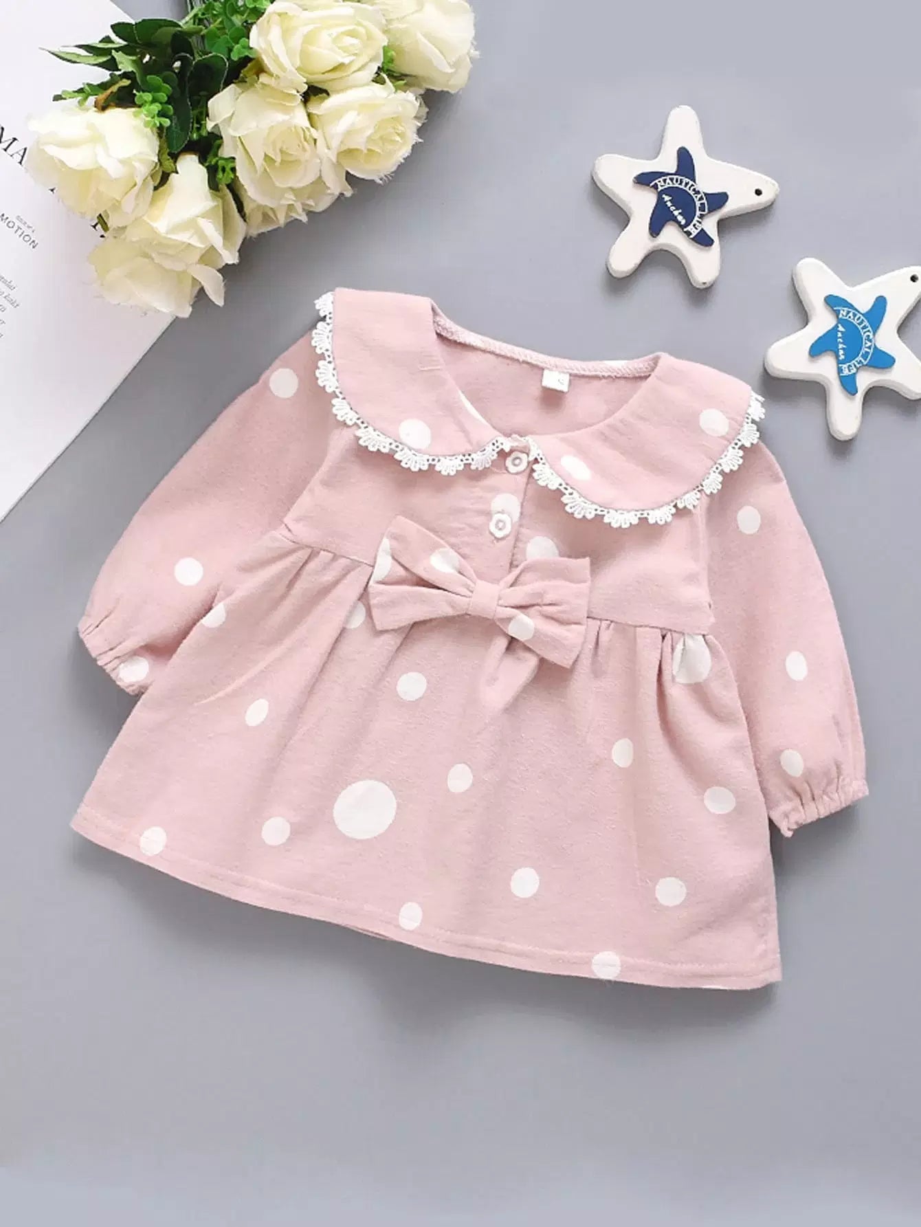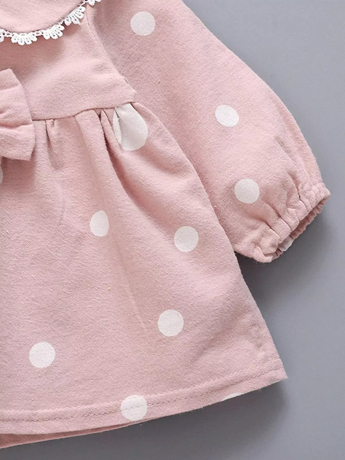 الأطفال - بلوزة أمامية مزينة بفيونكة من الدانتيل وجيبور منقطة للفتيات الصغيرات