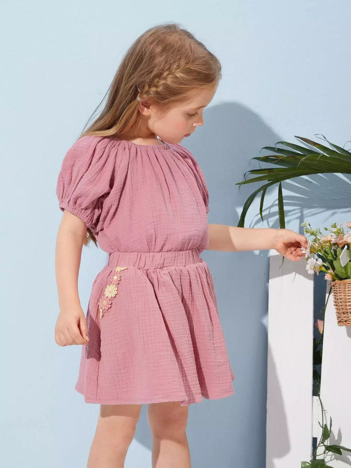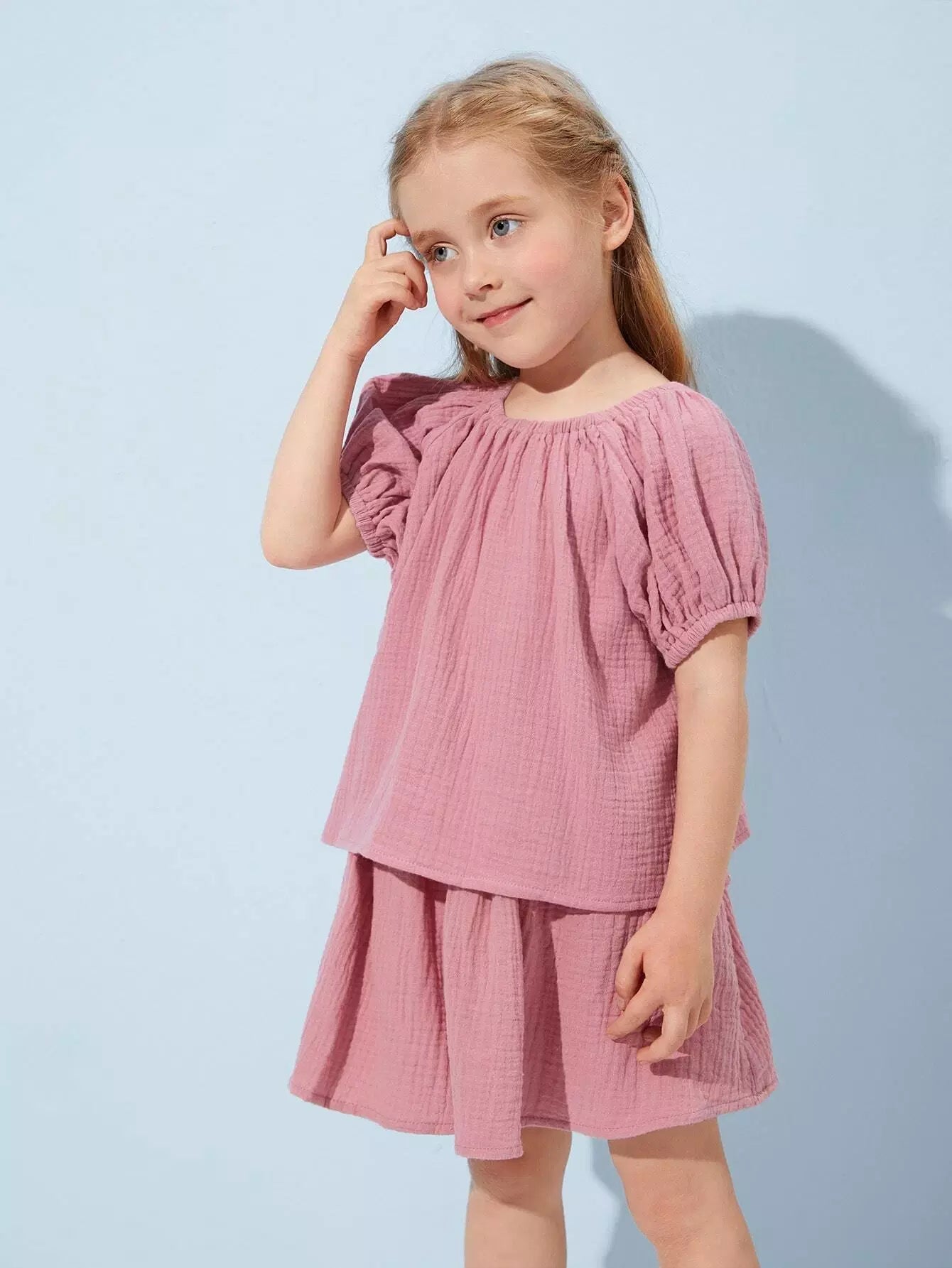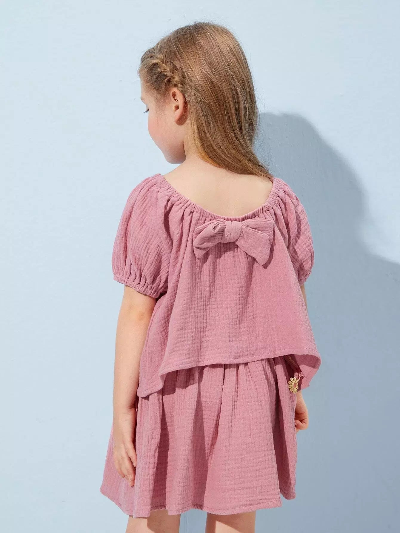 بلوزة بأكمام راجلان ظهر بعقدة للبنات الصغار
