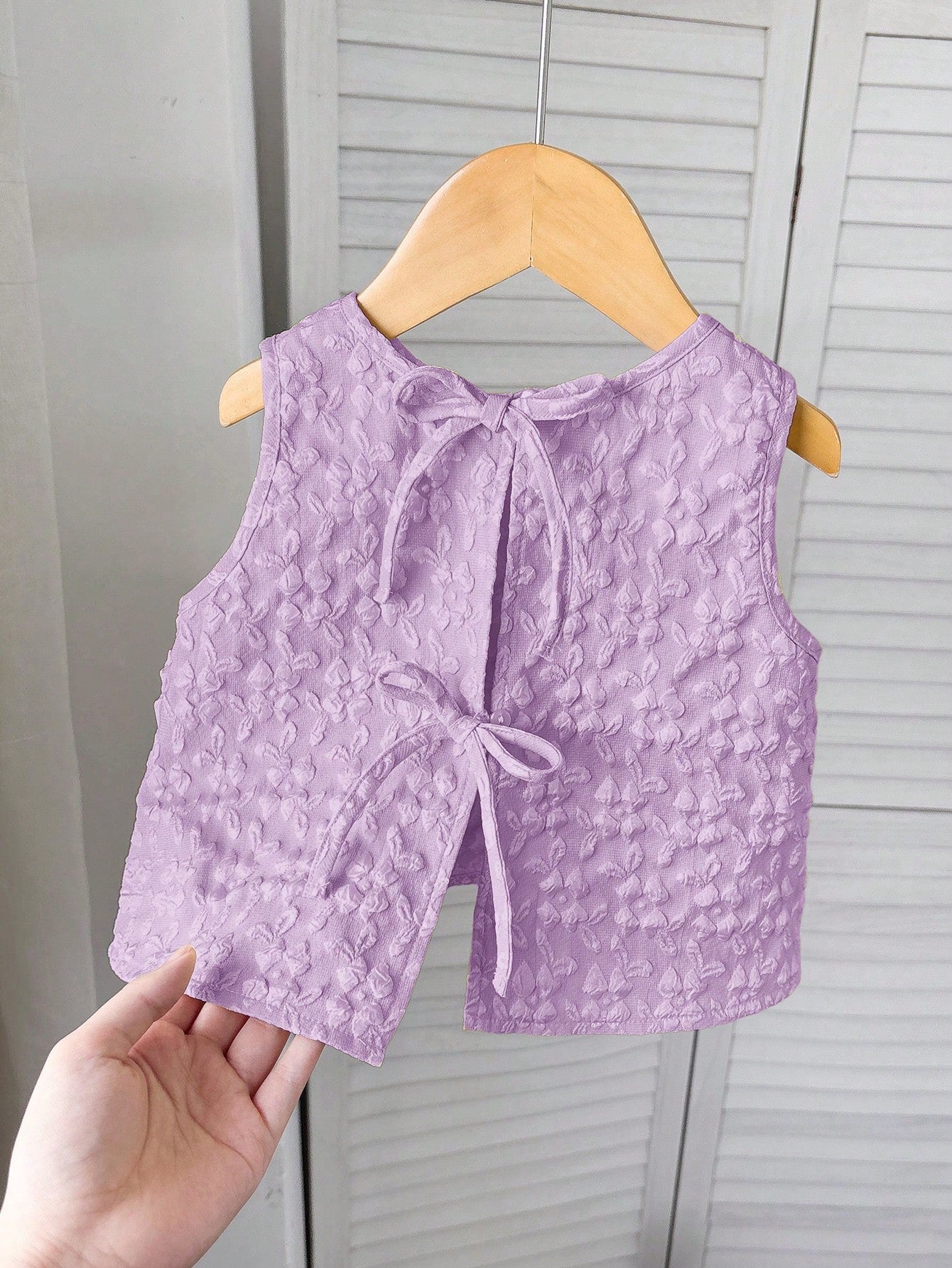 Young Girl Fashionable Plain Round Neck Sleeveless Woven Vest