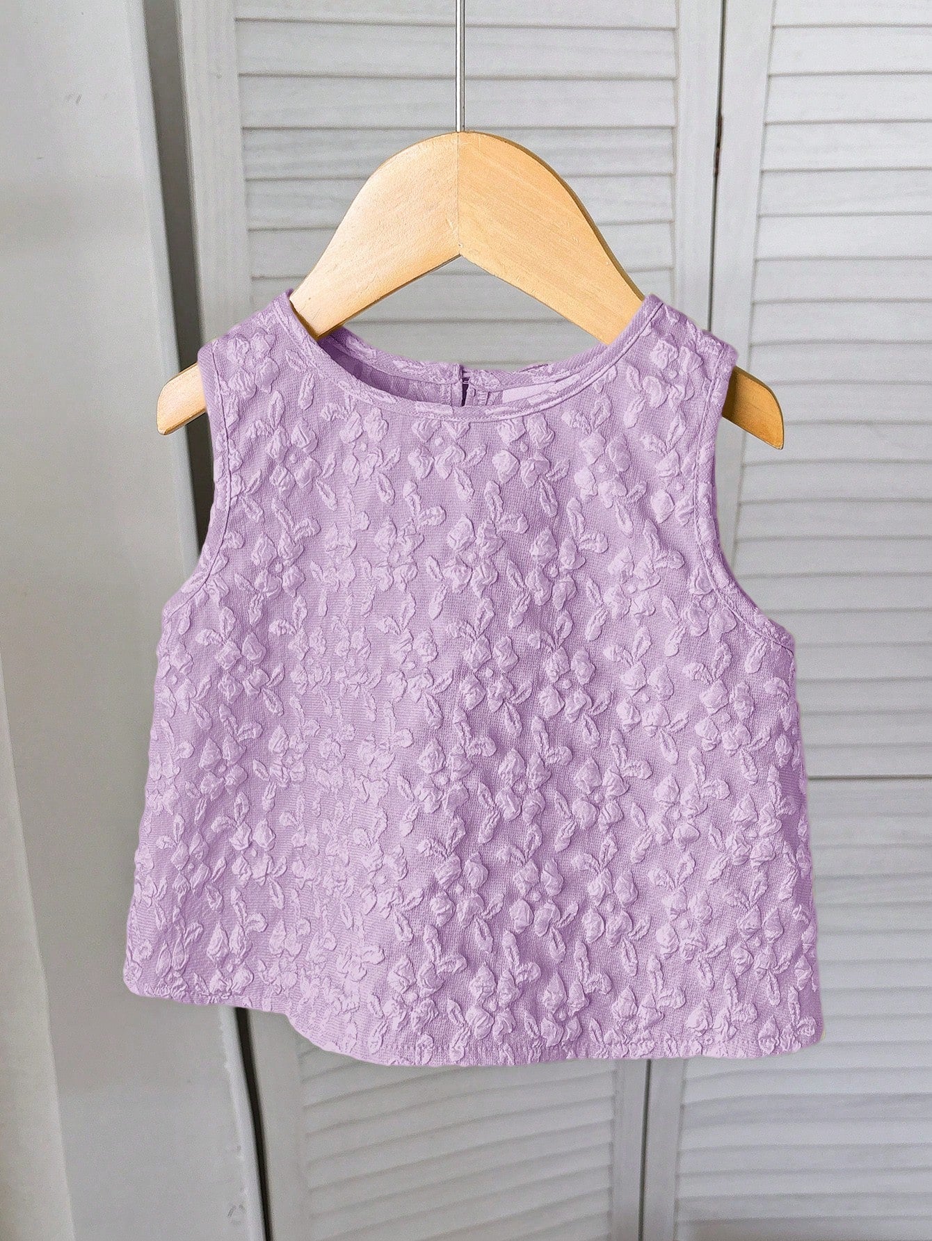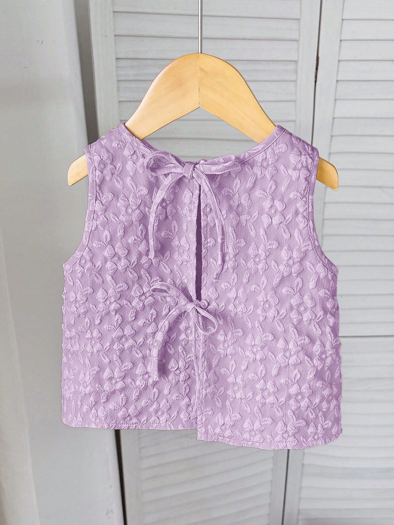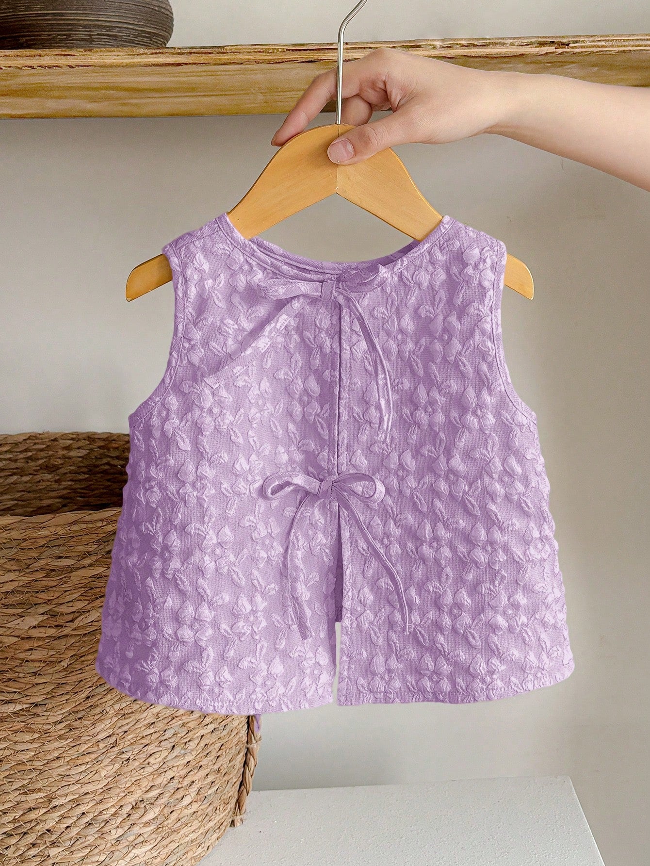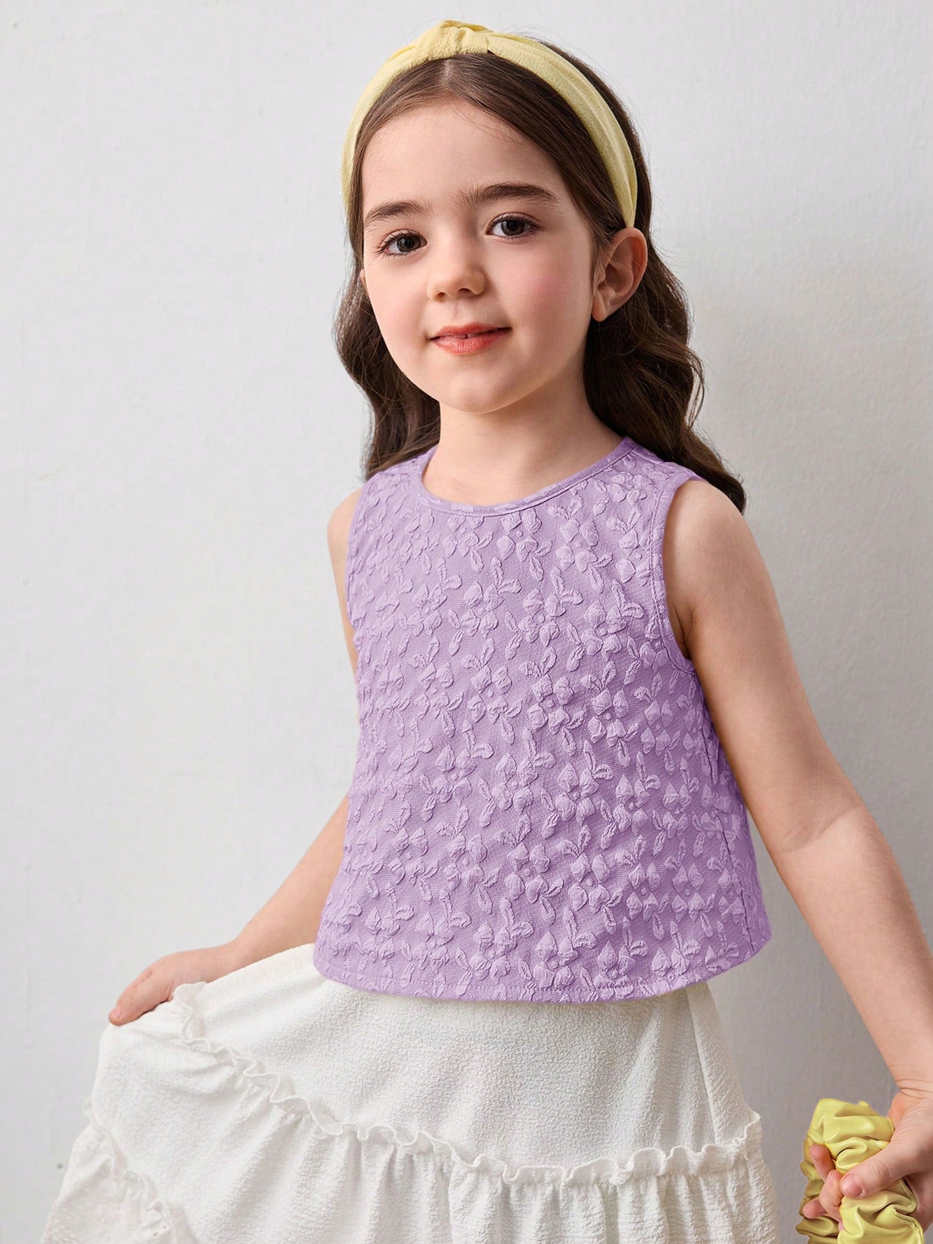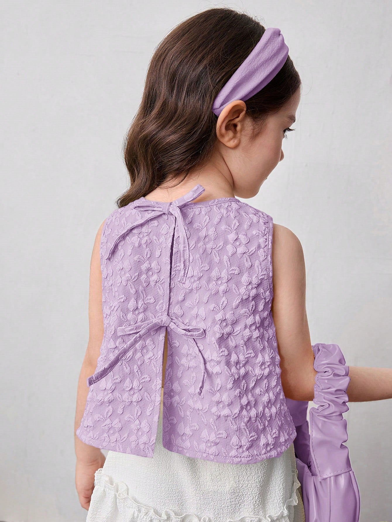 سترة منسوجة بدون أكمام ورقبة دائرية بسيطة أنيقة لفتاة صغيرة
