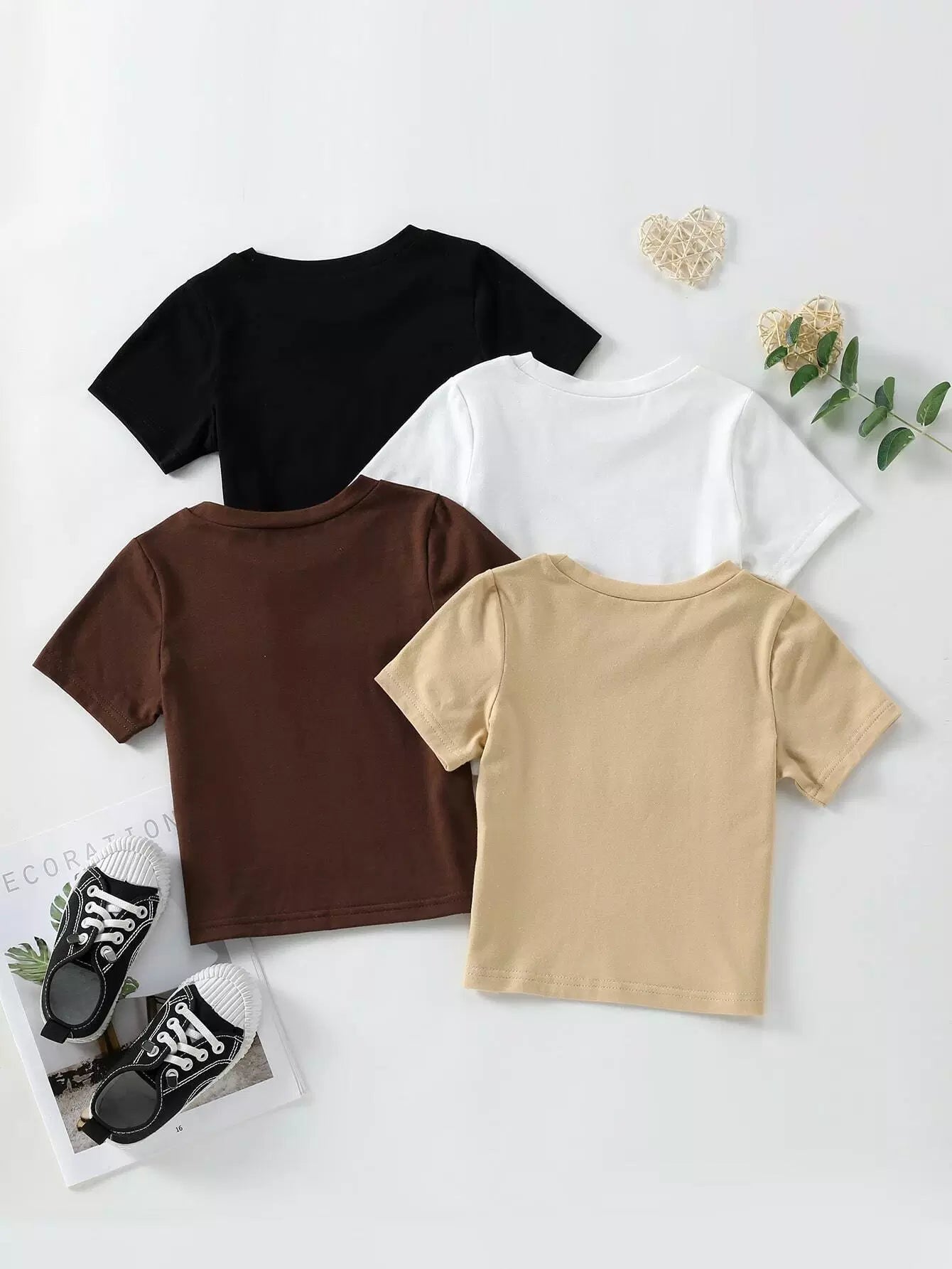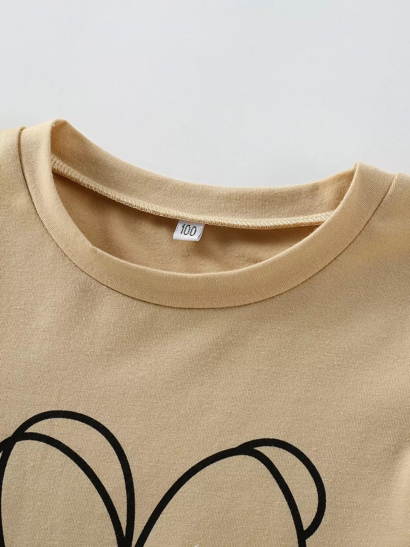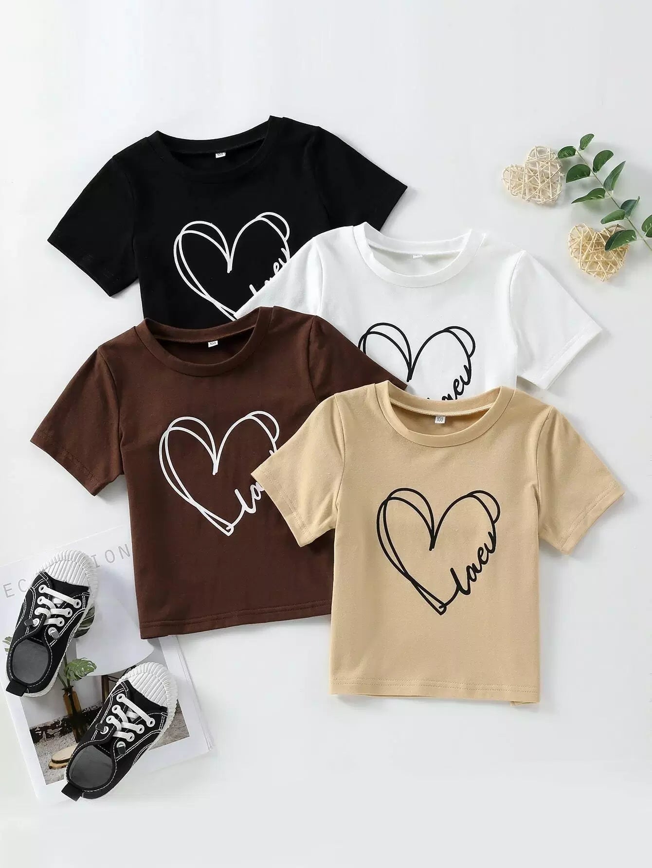 تي شيرت برسومات قلب وحروف لطفلة صغيرة 4 قطع