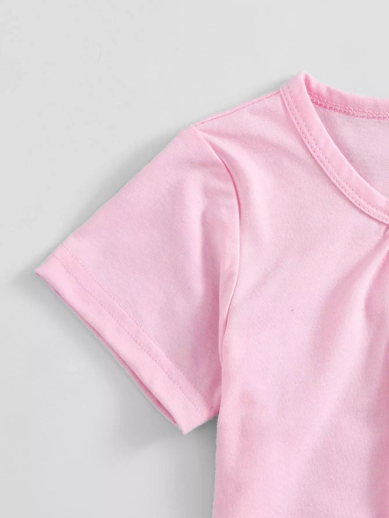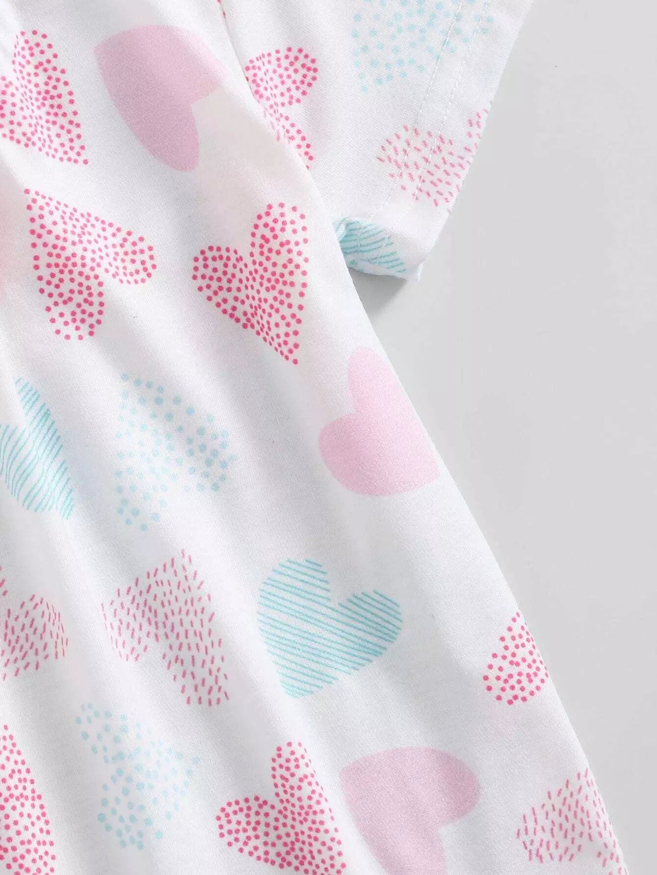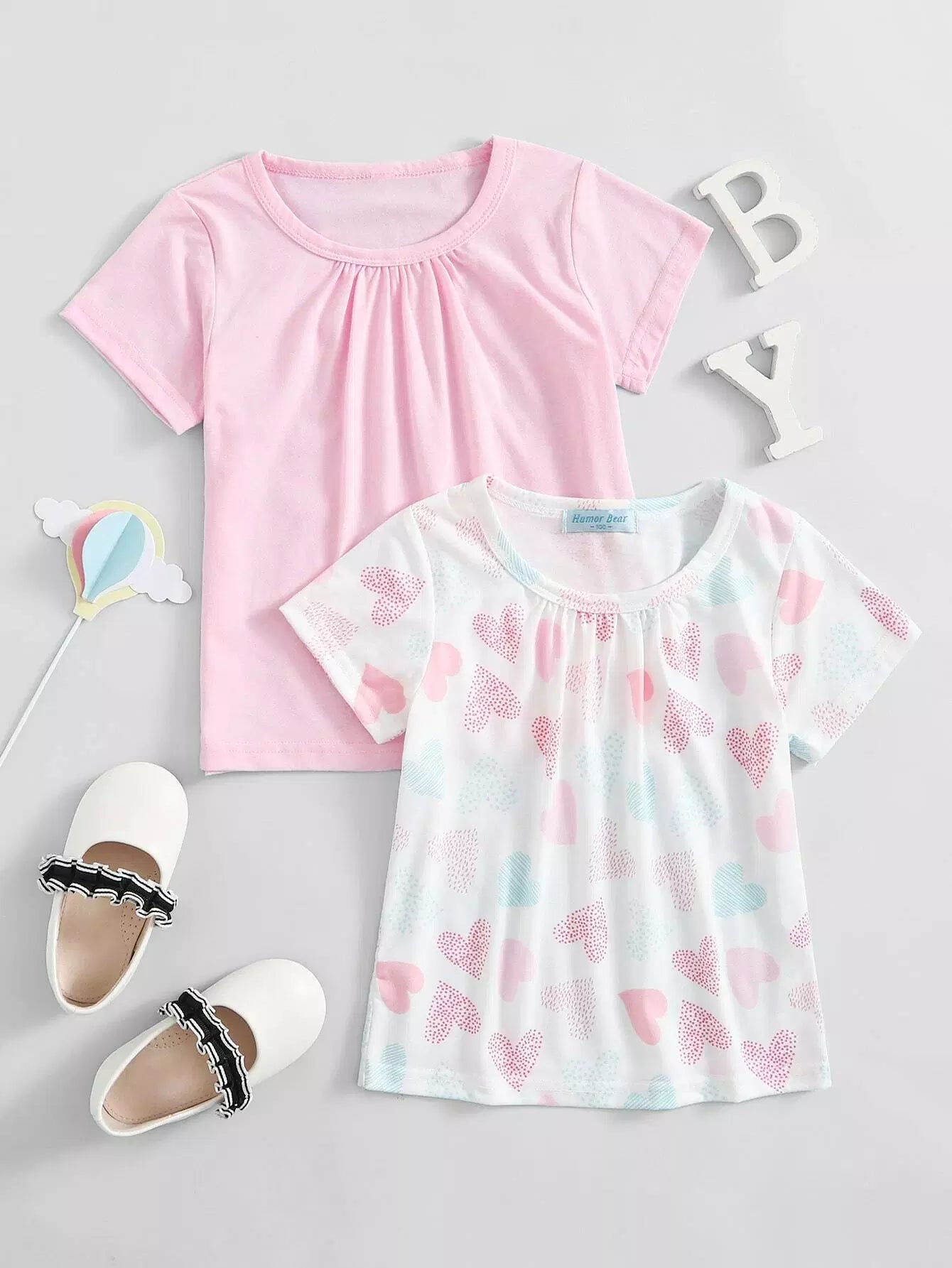 تي شيرت بطبعة قلب للبنات الصغيرات 2 قطعة