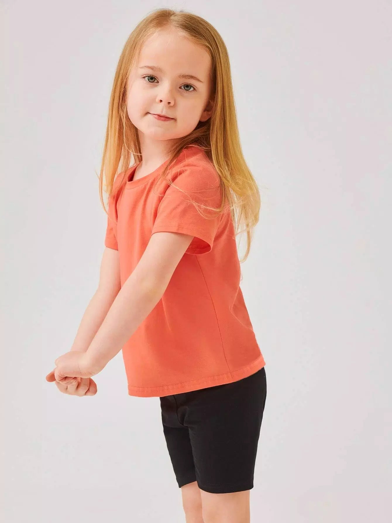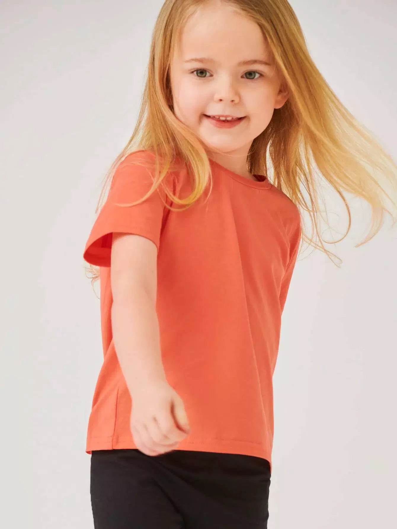 تي شيرت برقبة دائرية قطن برقبة دائرية سادة للبنات الصغار