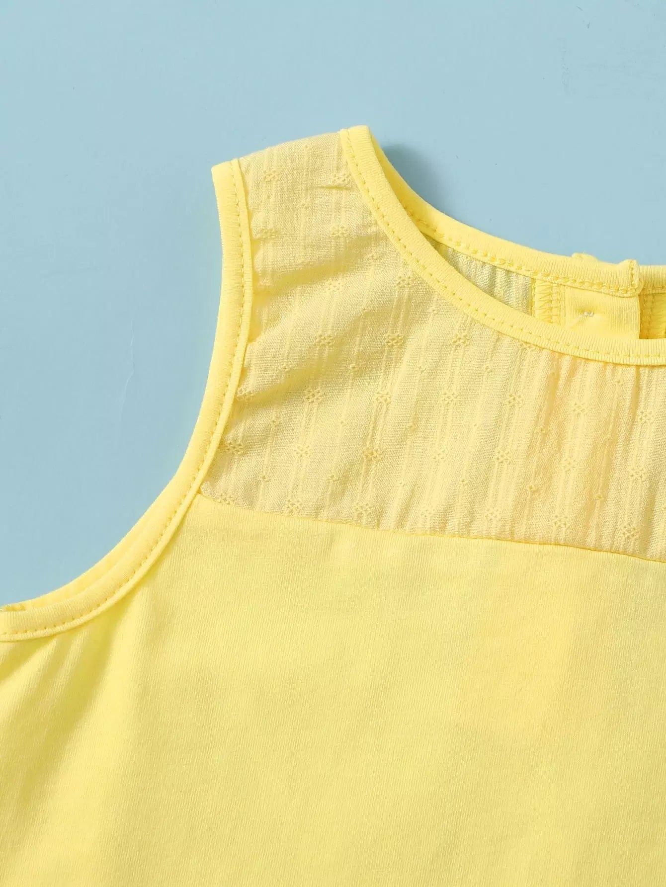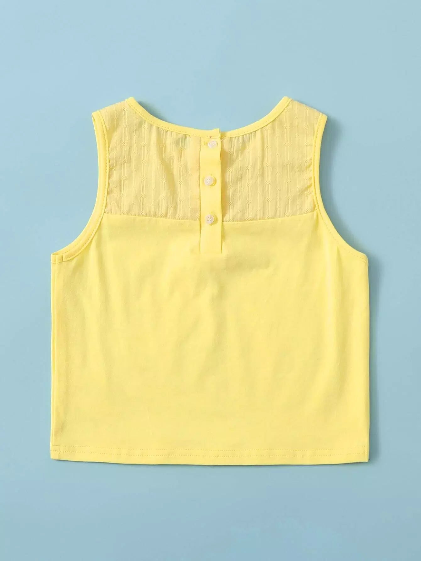 بلوزة بدون أكمام مطرزة بفتحة عنق للفتيات الصغيرات