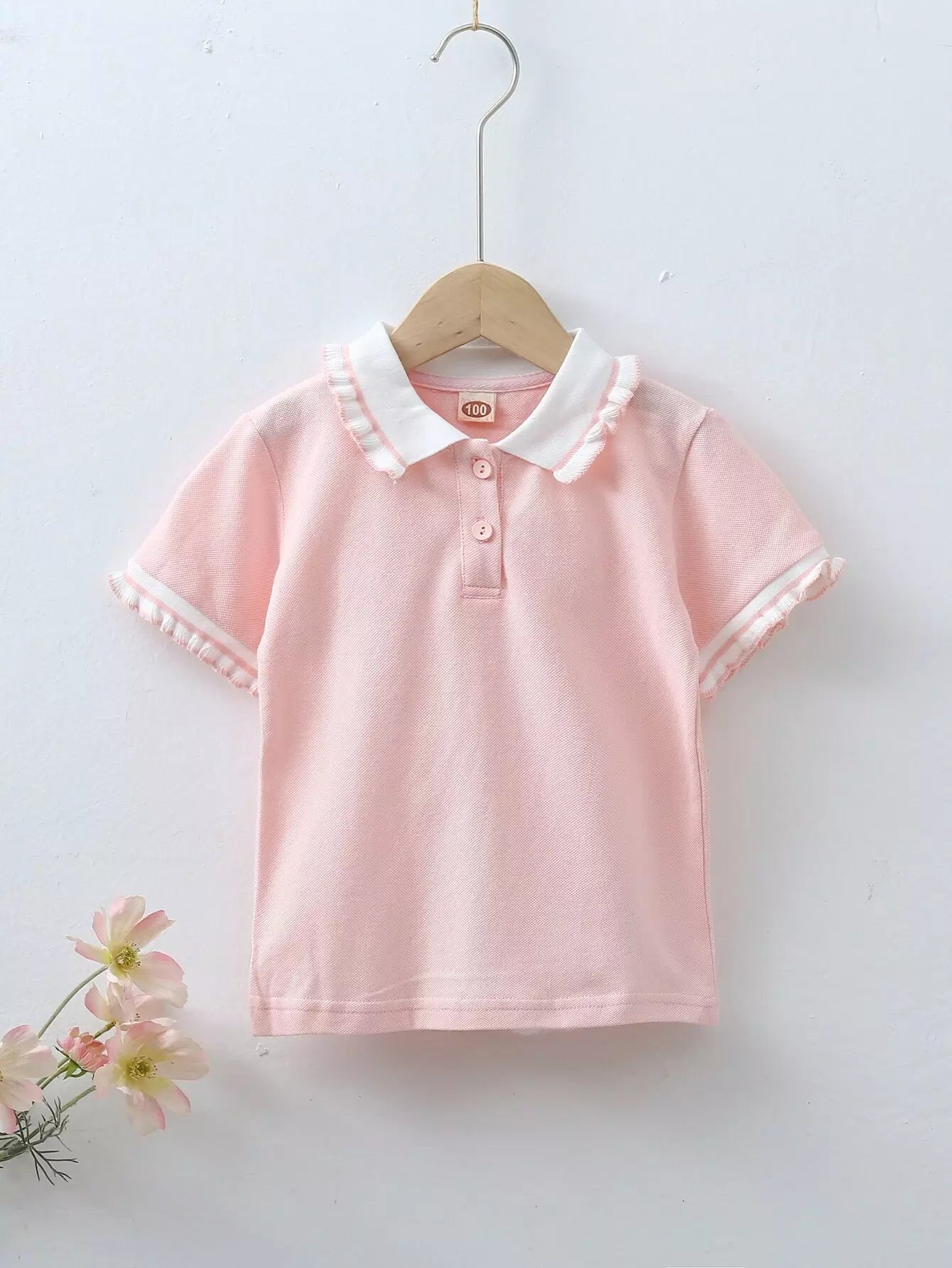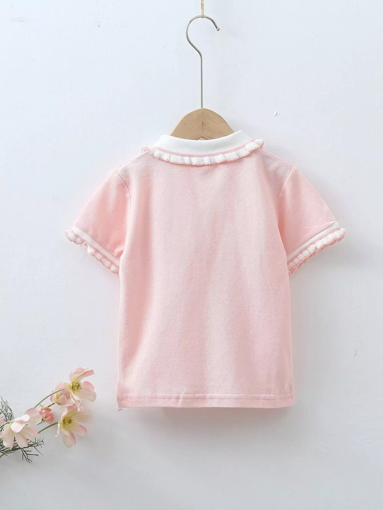 تي شيرت بولو بحواف كشكش للبنات الصغار
