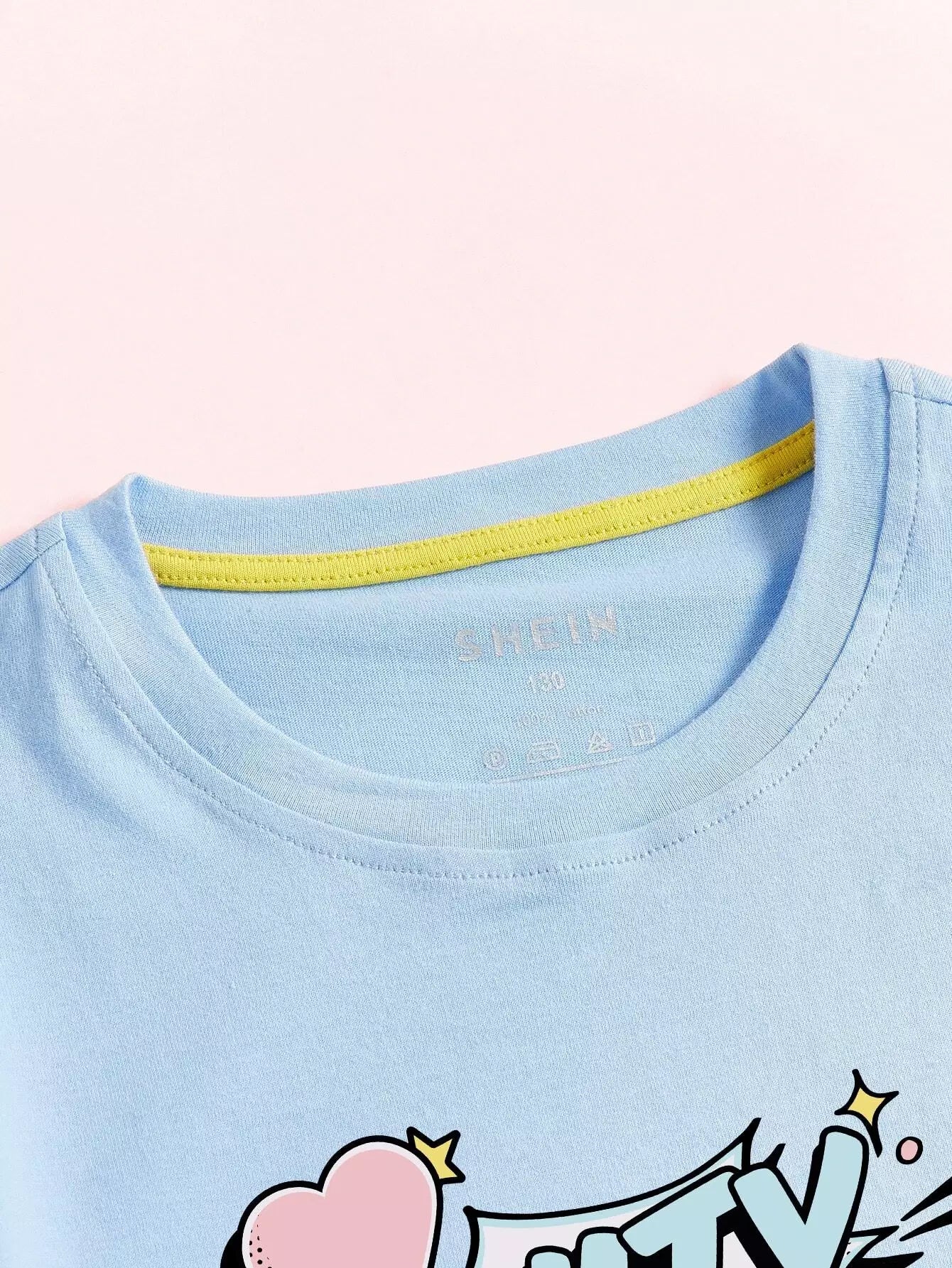 تي شيرت برسمة قلب وحرف للبنات الصغار