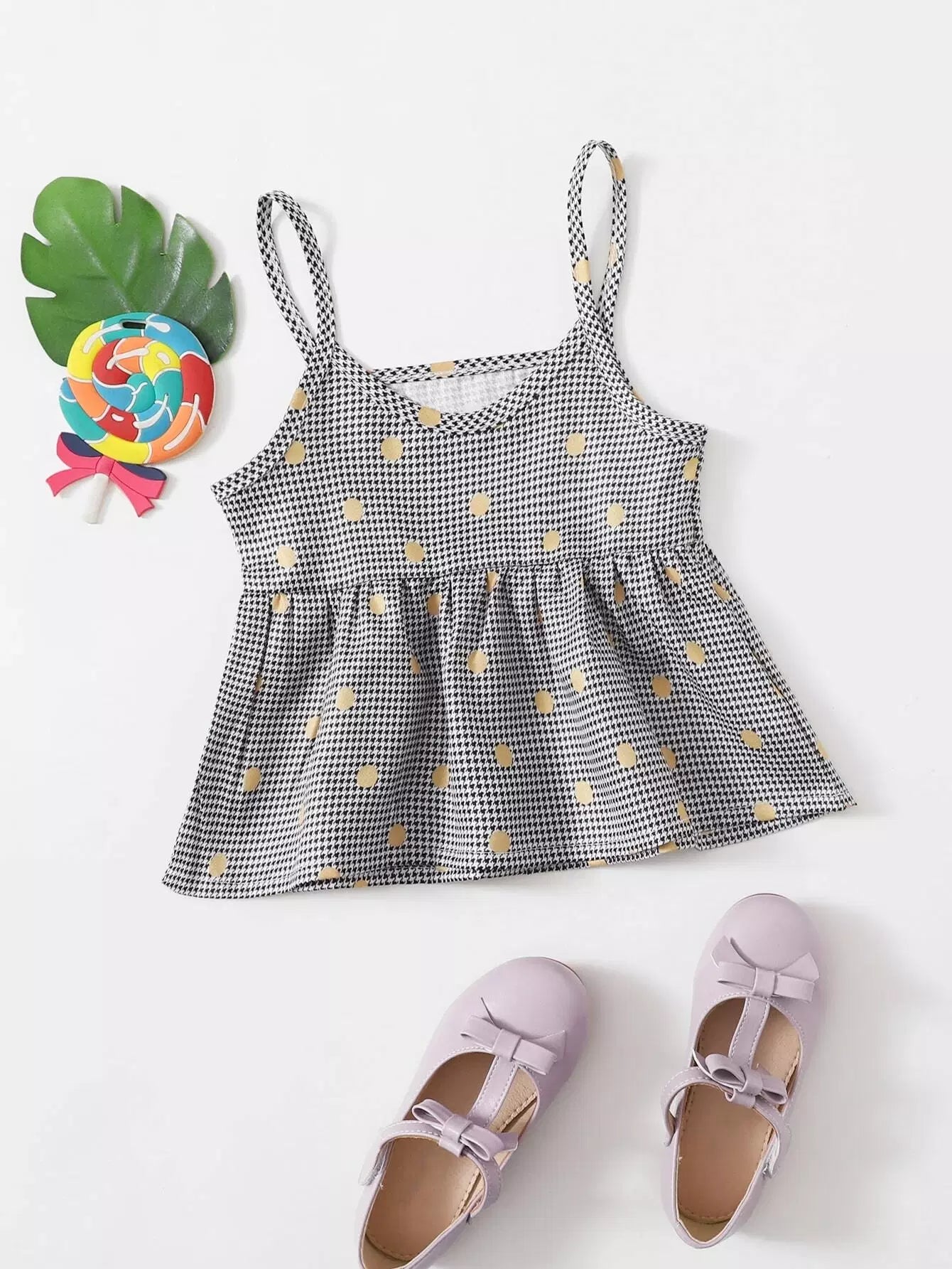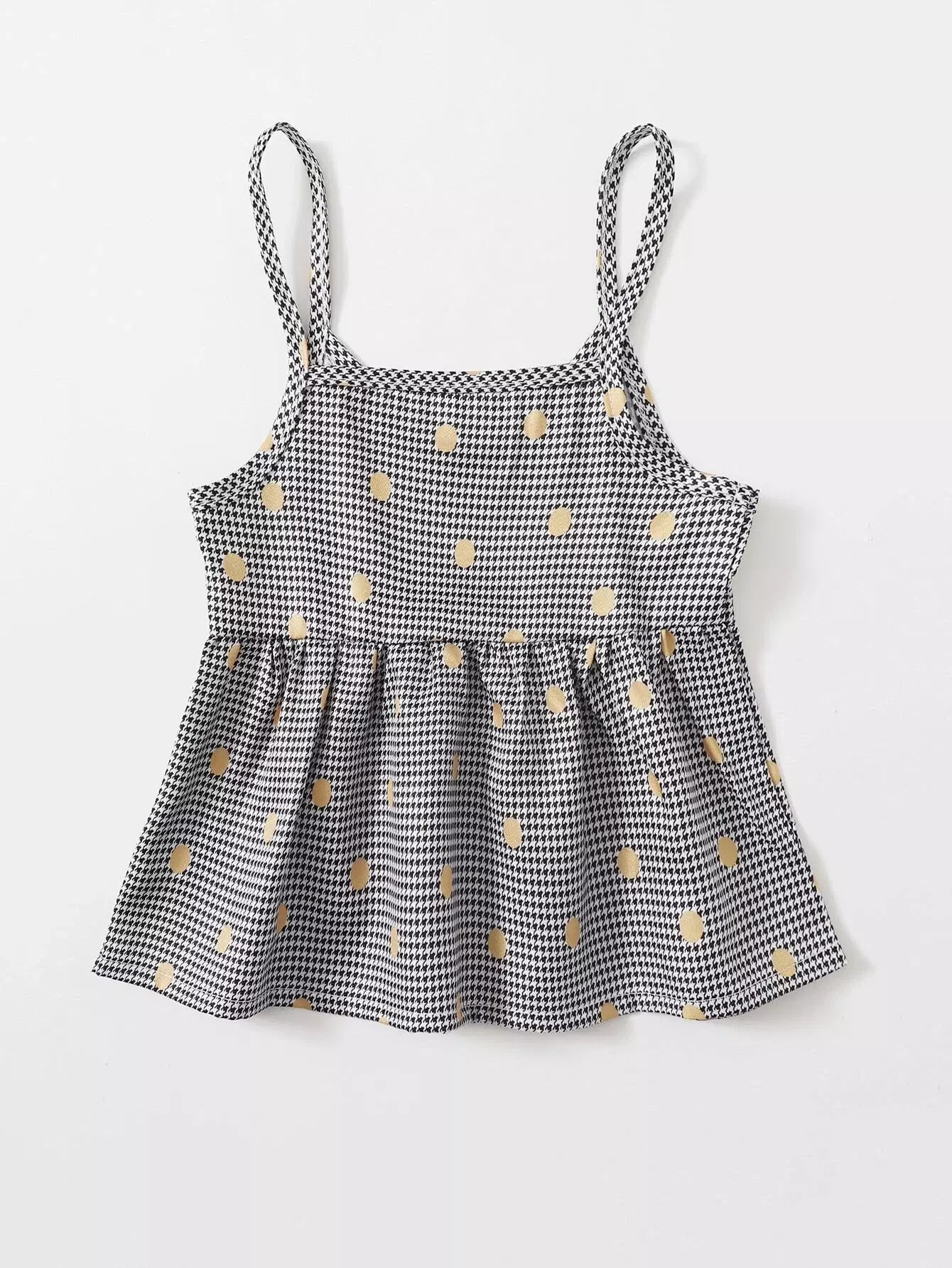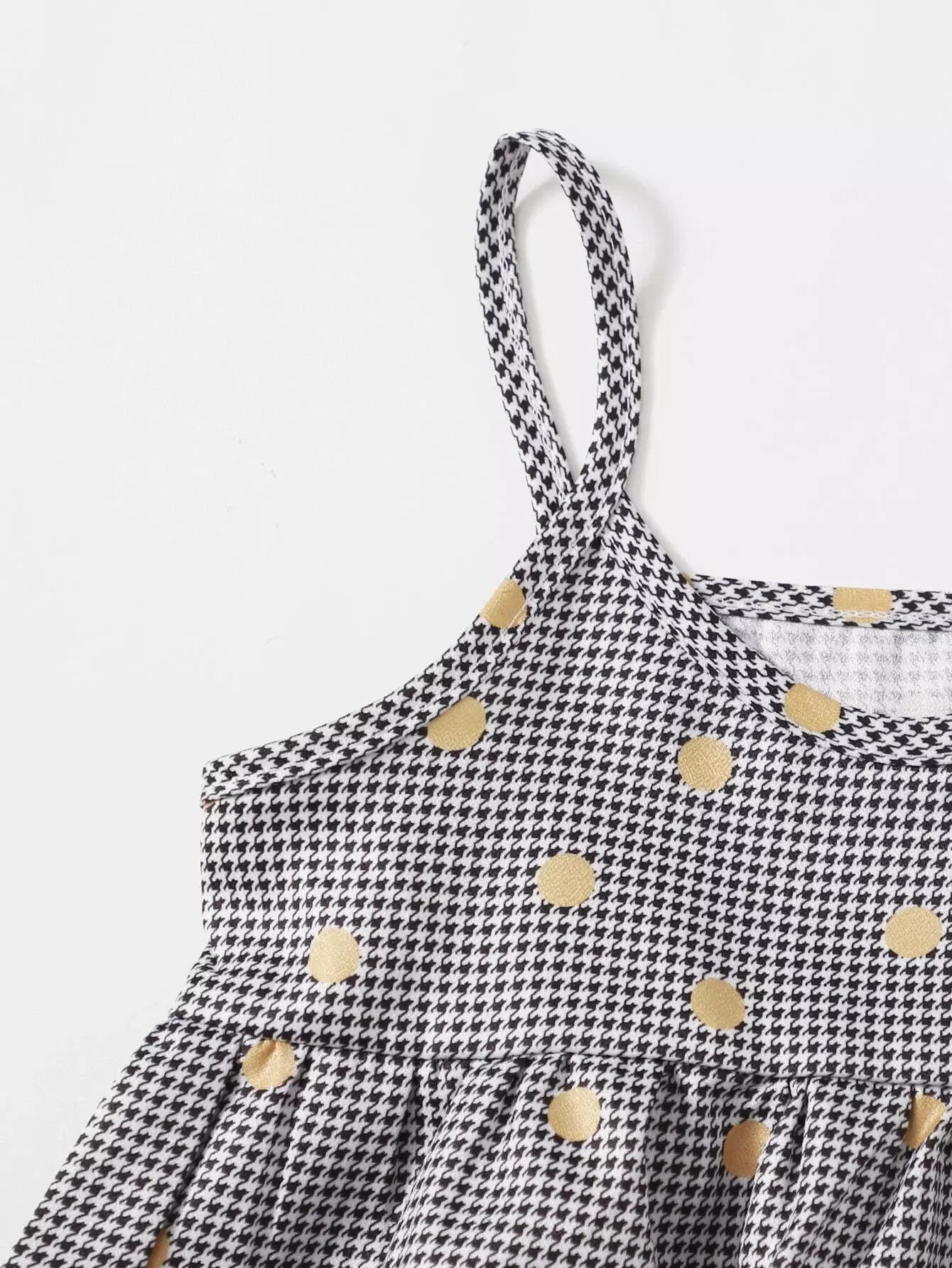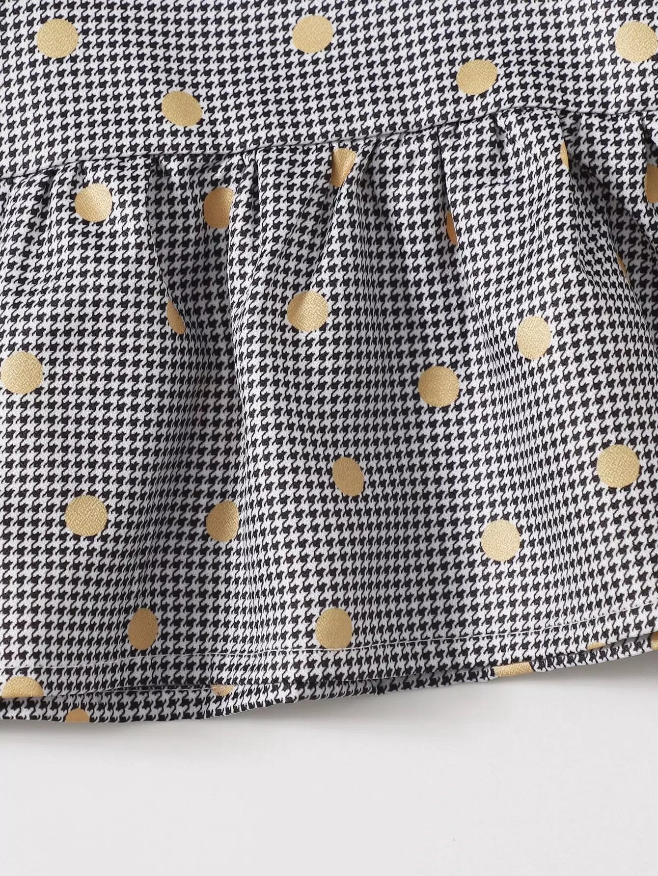 قميص قصير بناتي صغيرات مزين بنقشة هاوندستوث وطبعة ذهبية