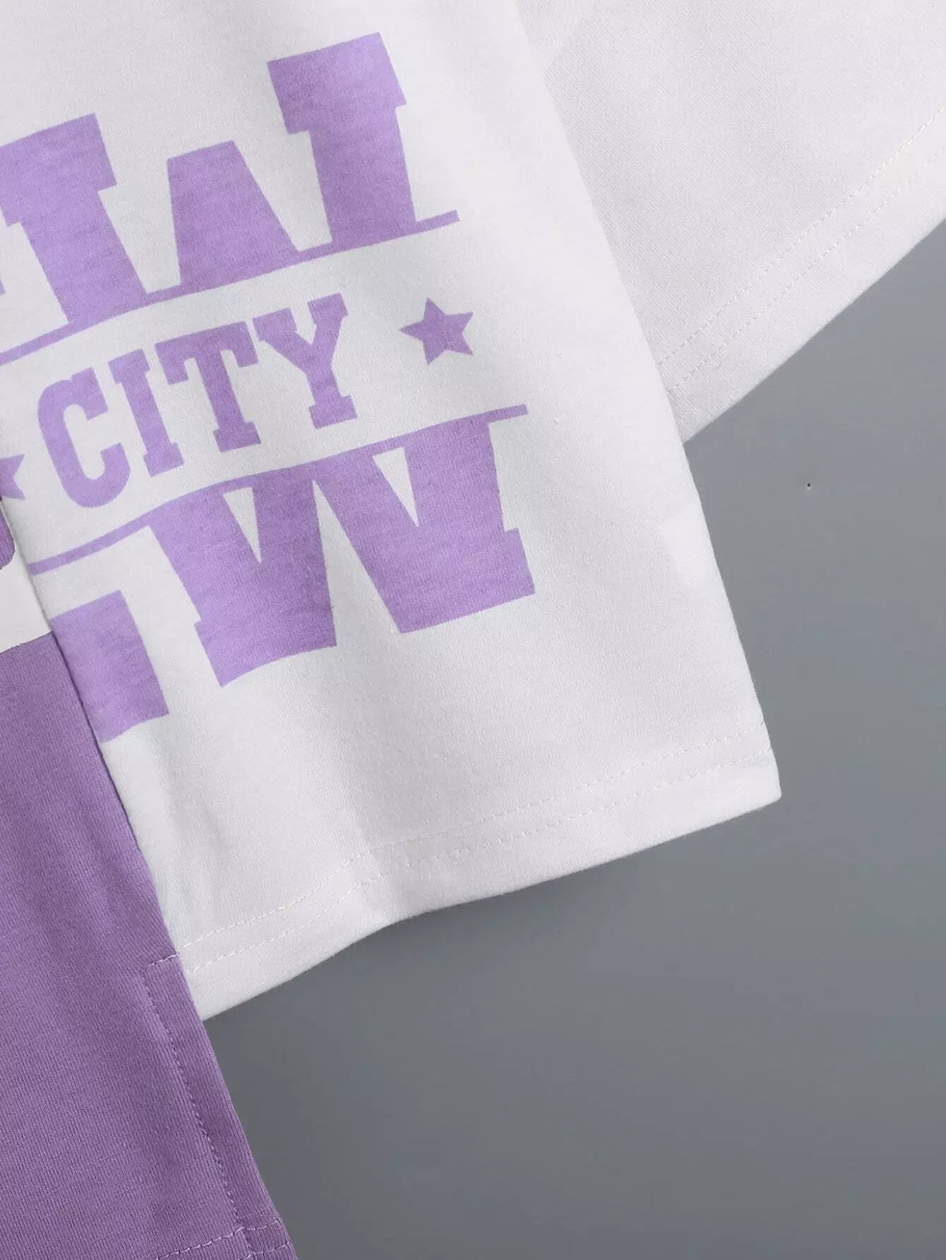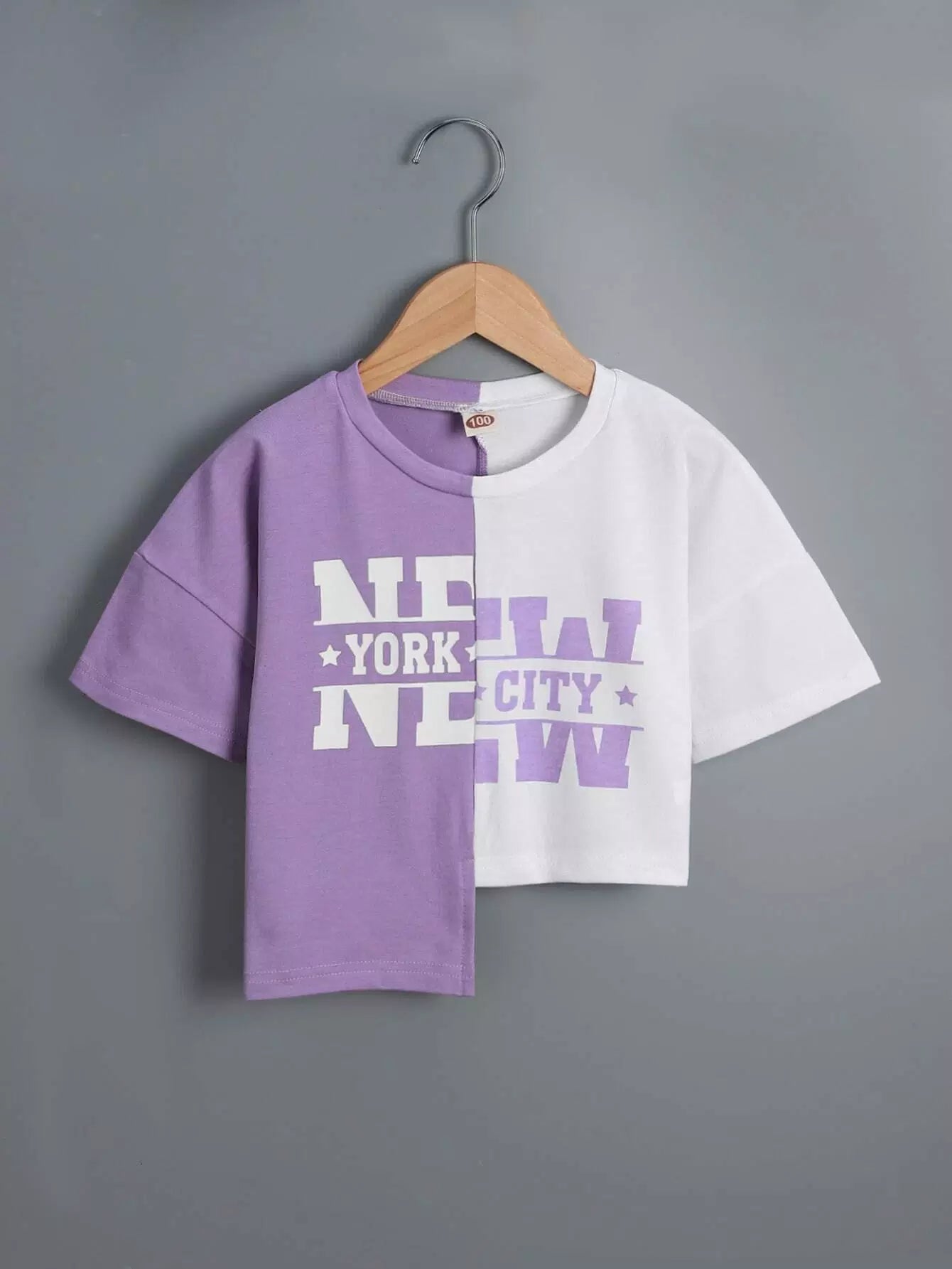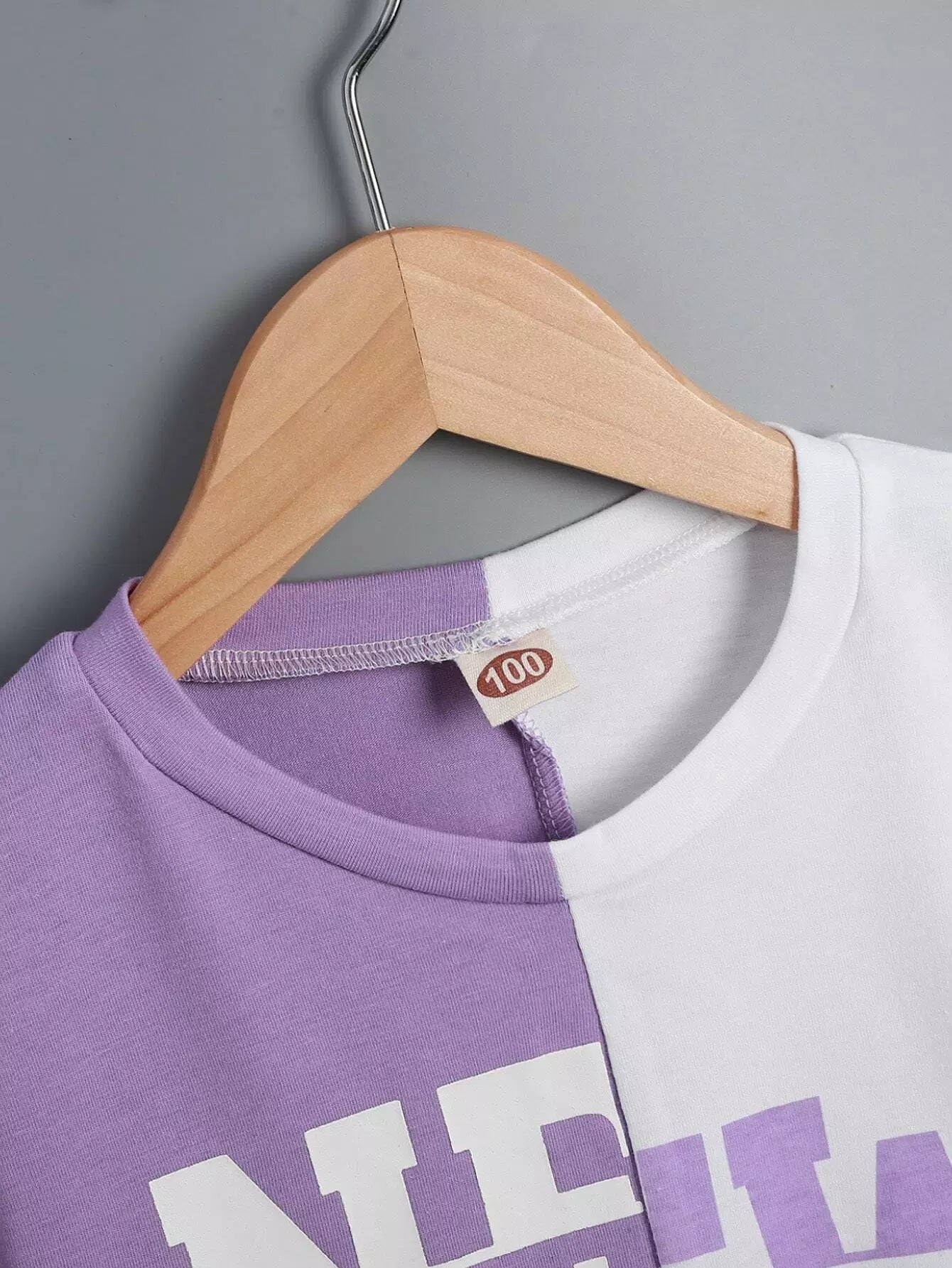الأطفال - تي شيرت مقسم برسومات الحروف للفتيات الصغيرات