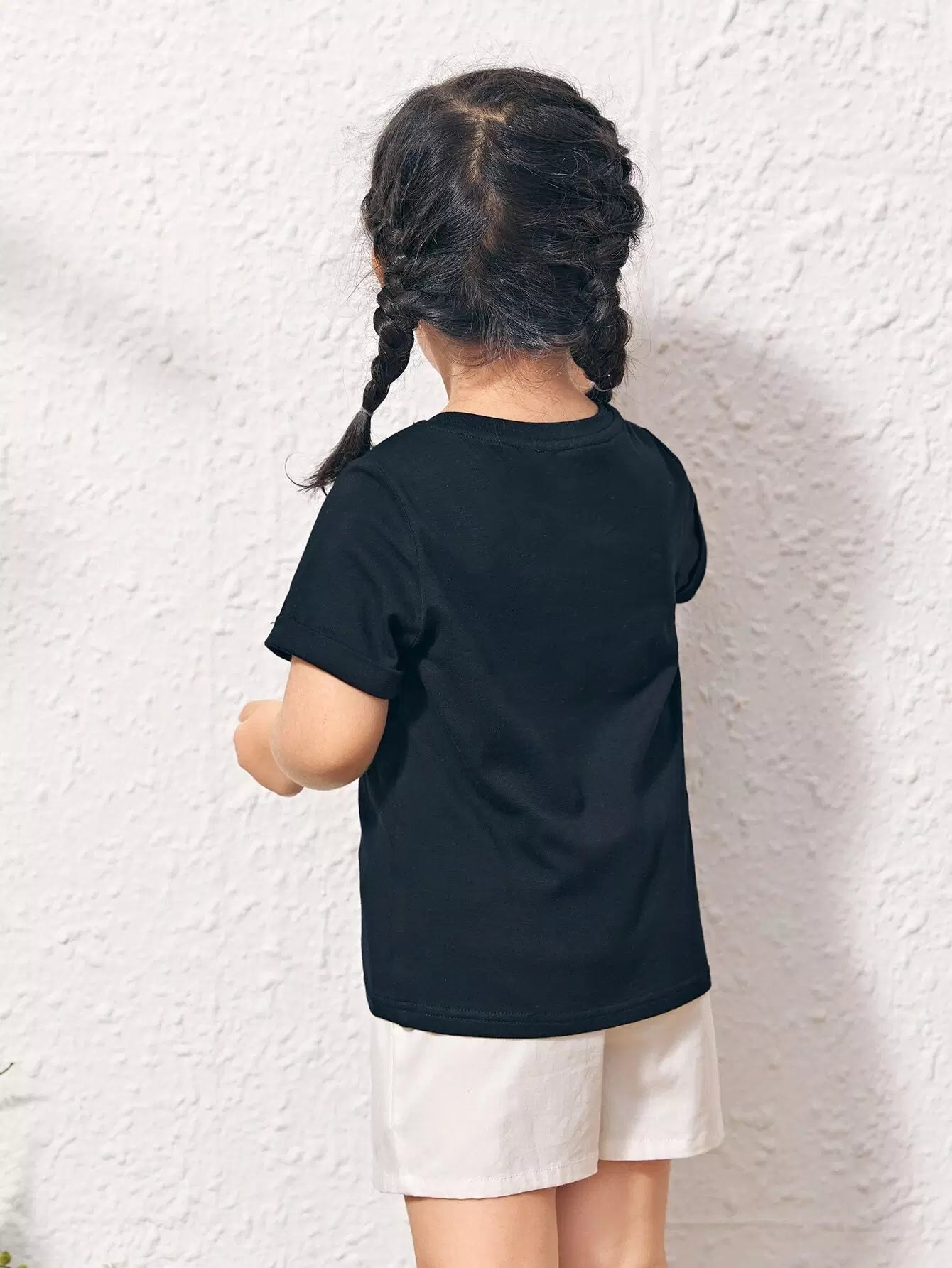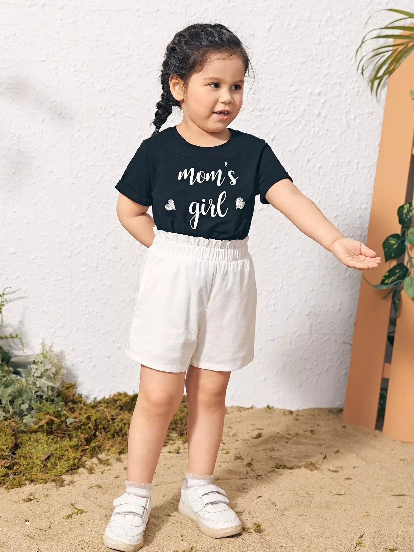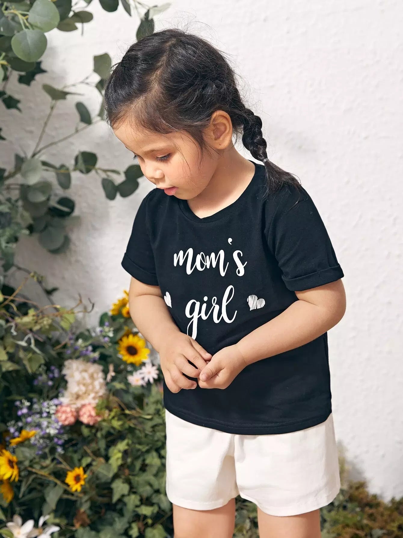 تي شيرت بطبعة حروف وقلوب للفتيات الصغيرات