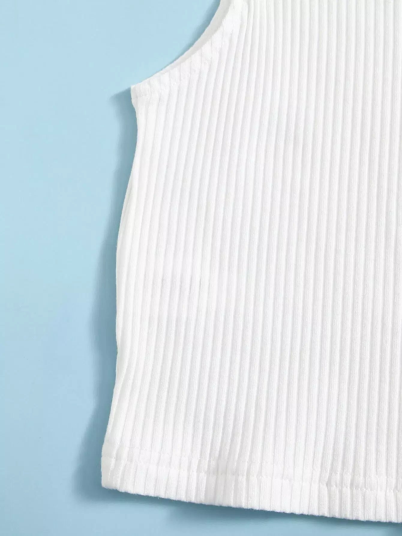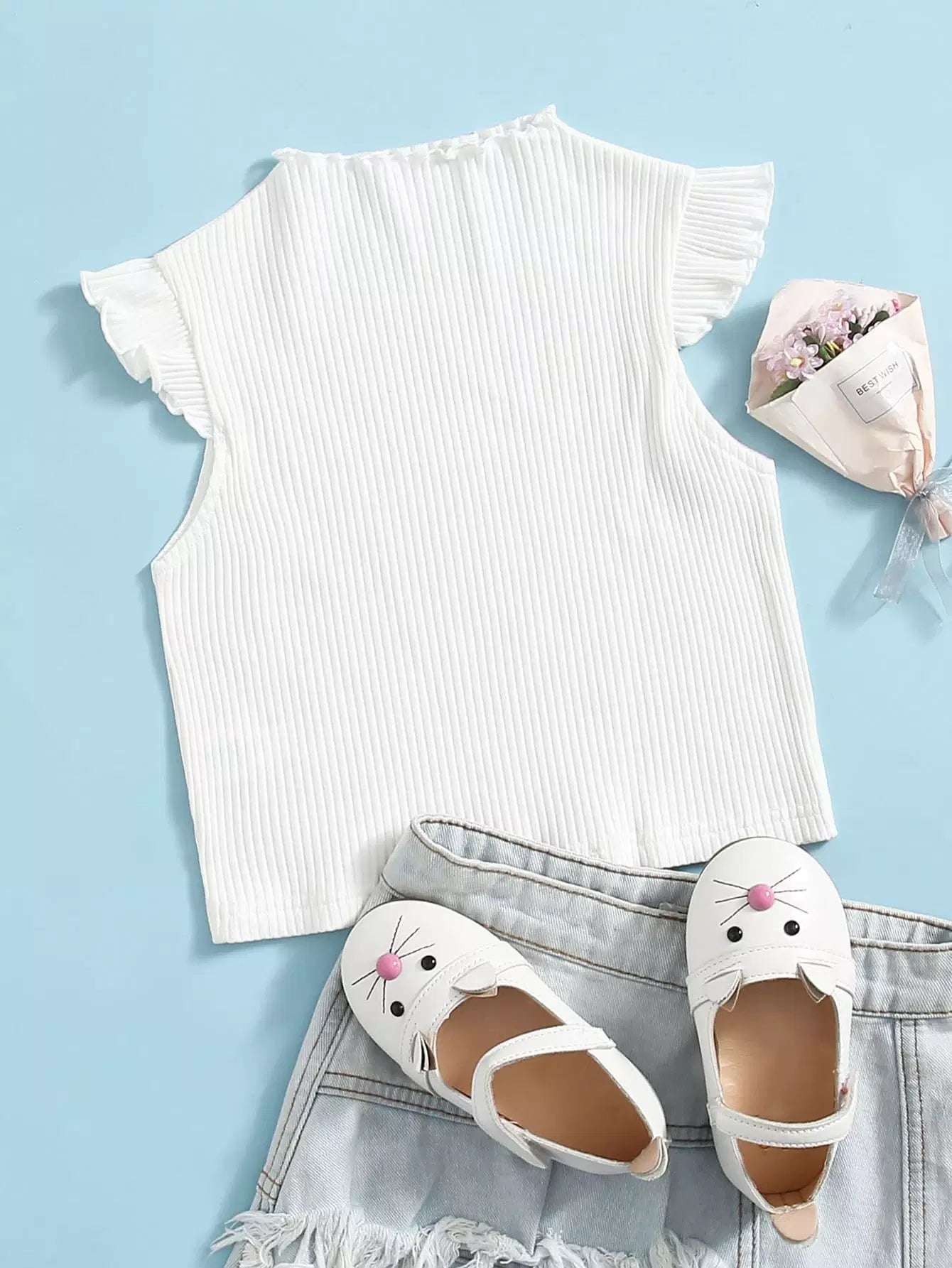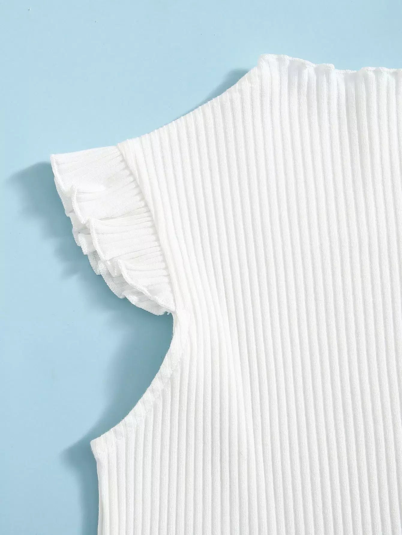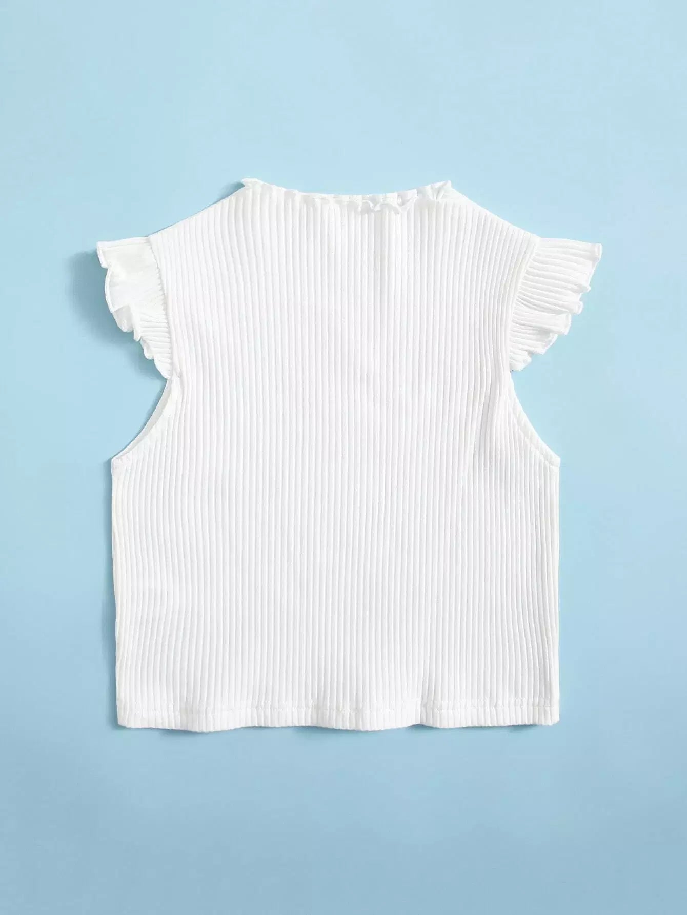 تي شيرت بنات صغيرات بفتحة ذراع مكشكشة بحواف من الخس