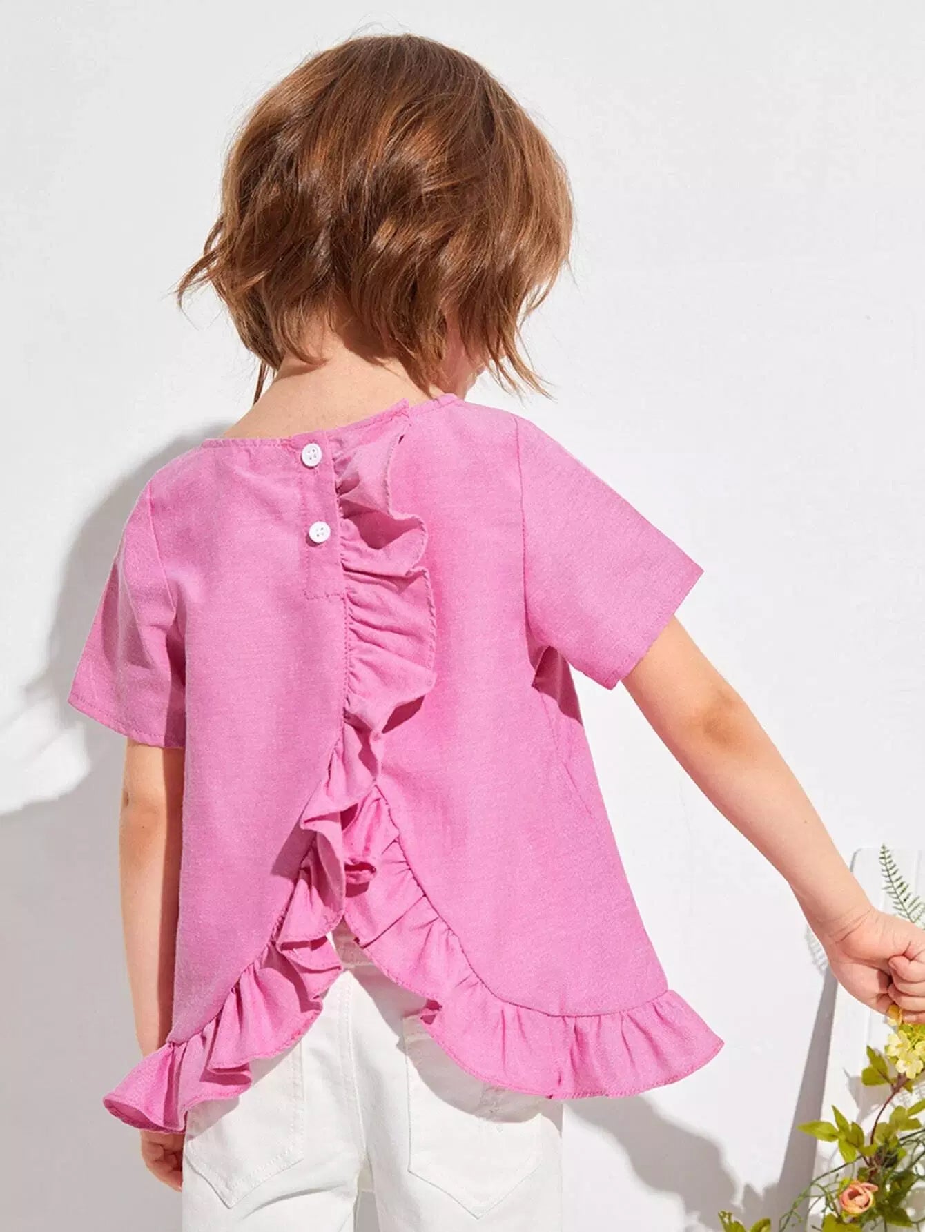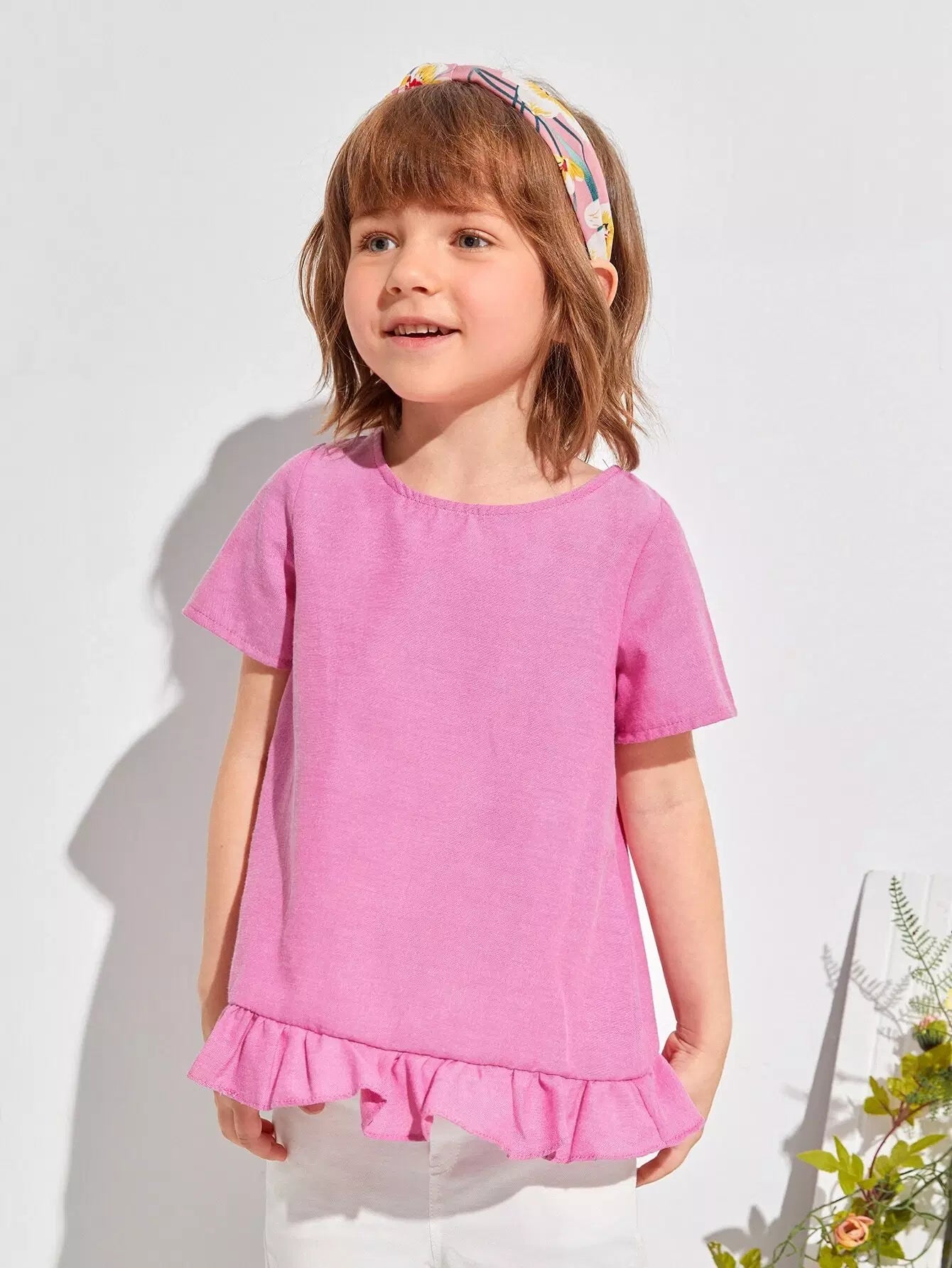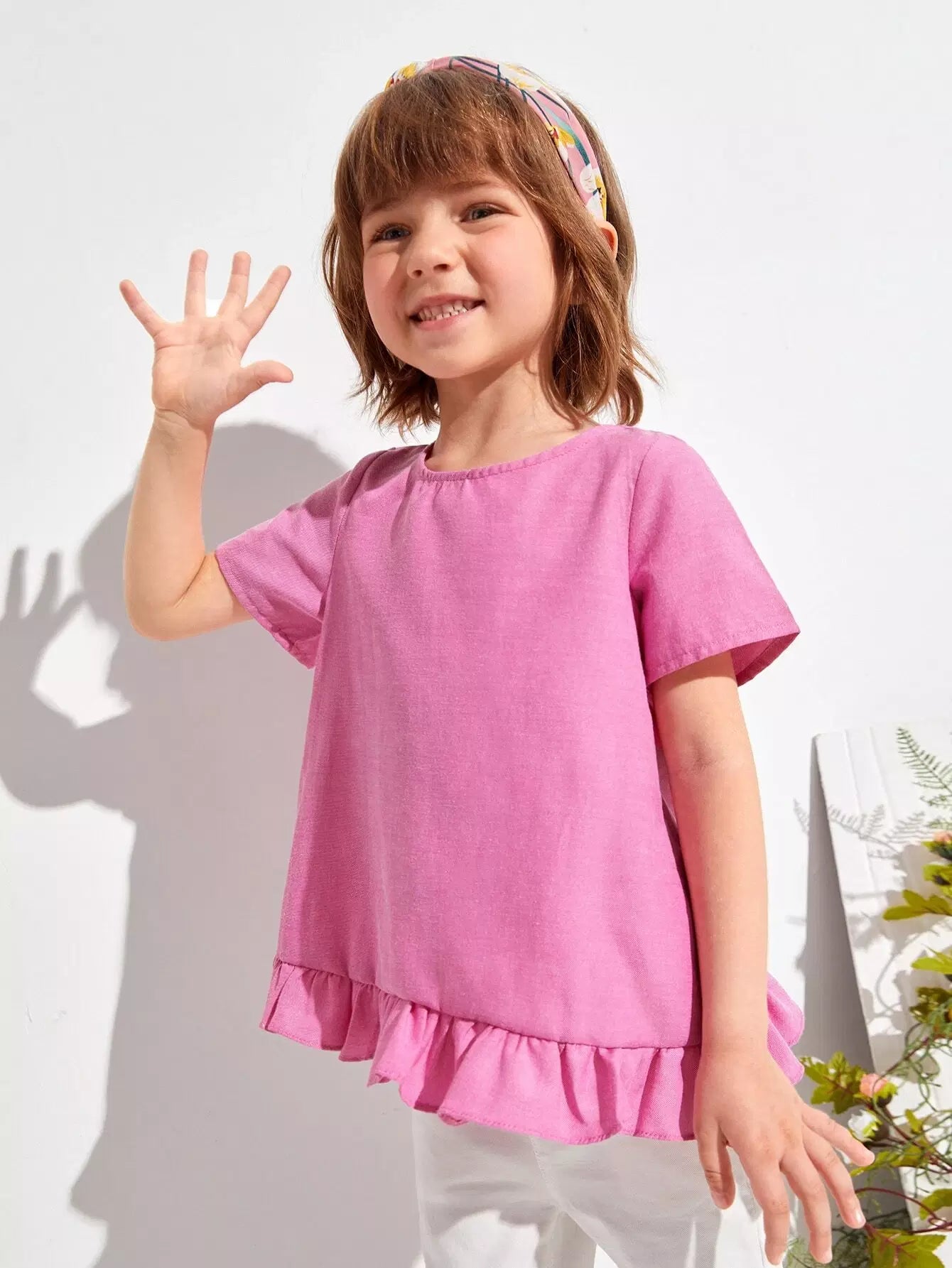 بلوزة سادة بتفاصيل مكشكشة للبنات الصغار
