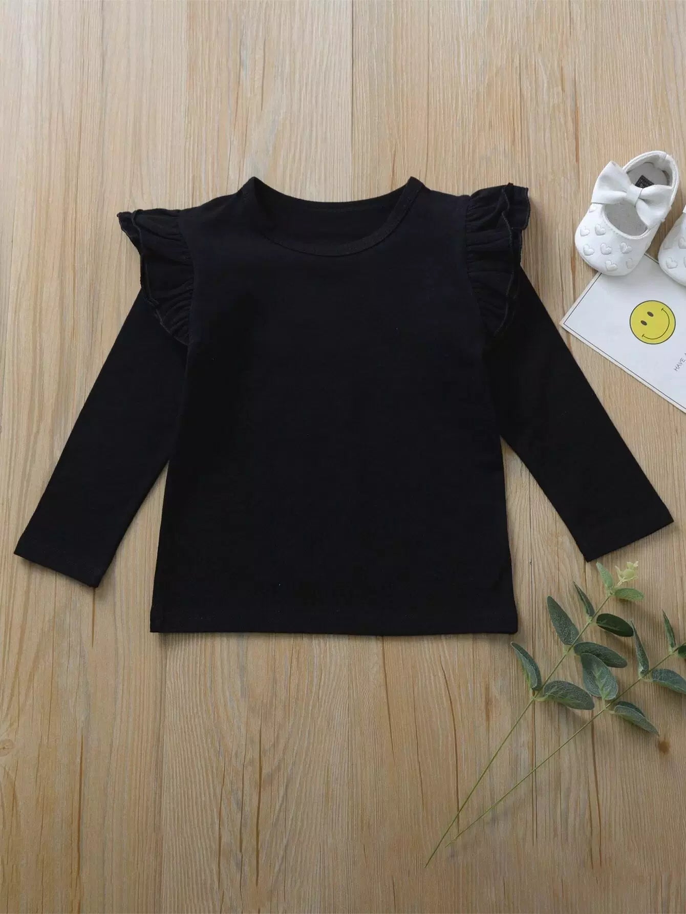تي شيرت سادة بحواف مكشكشة للبنات الصغار