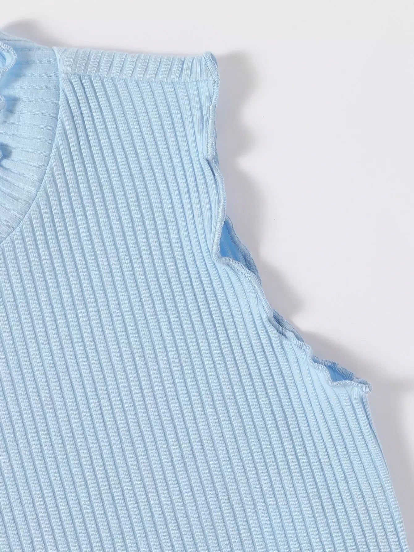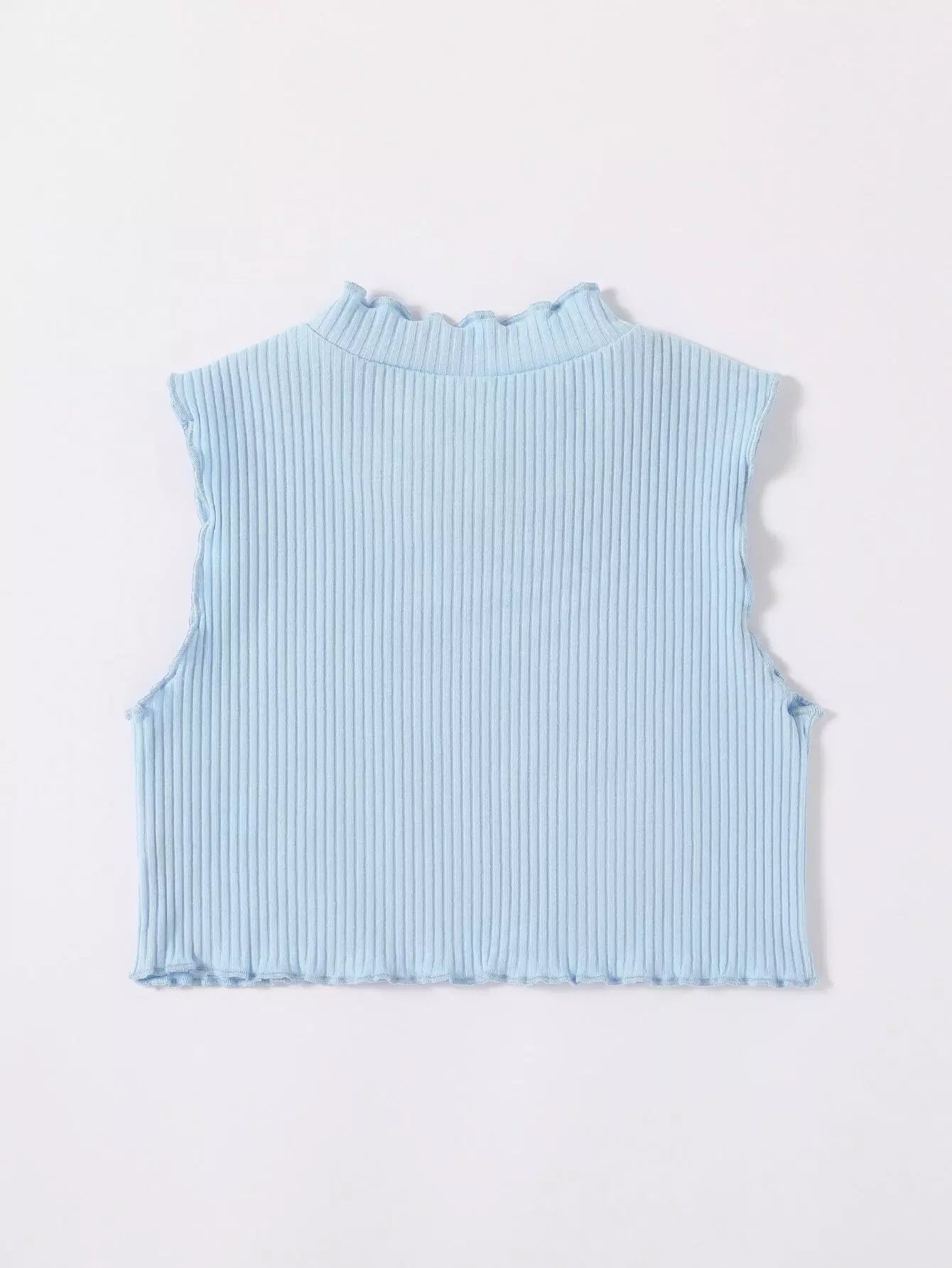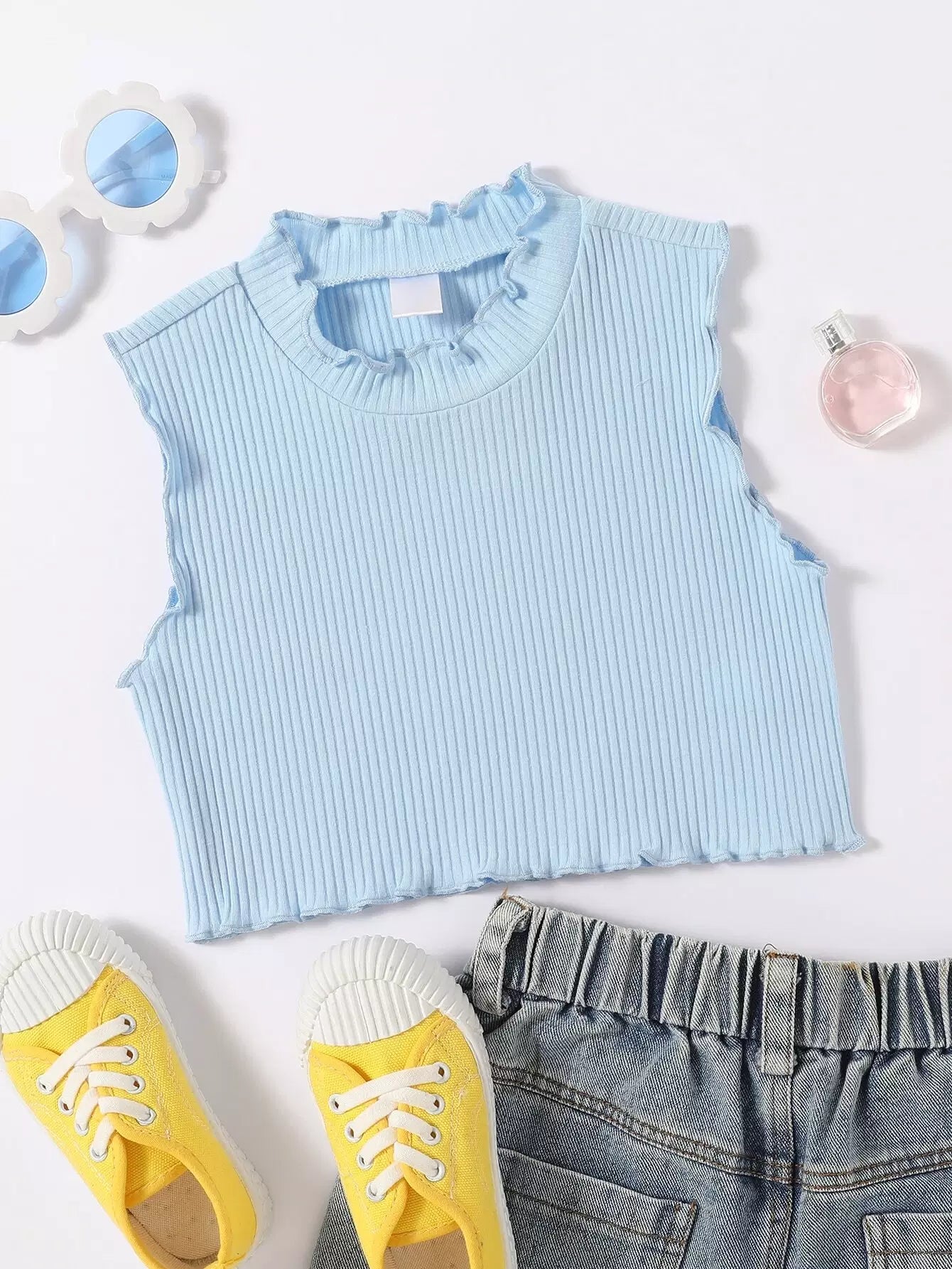 تانك بدون أكمام بحواف سادة مزين بالخس للبنات الصغار