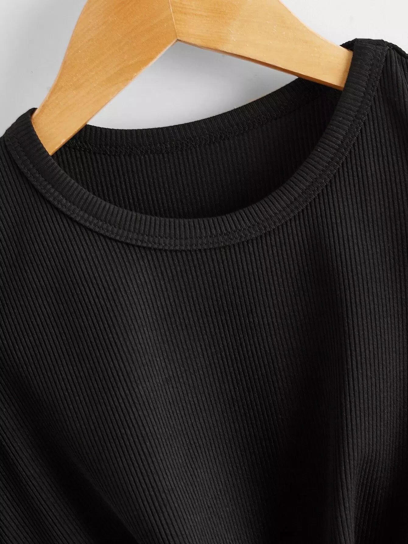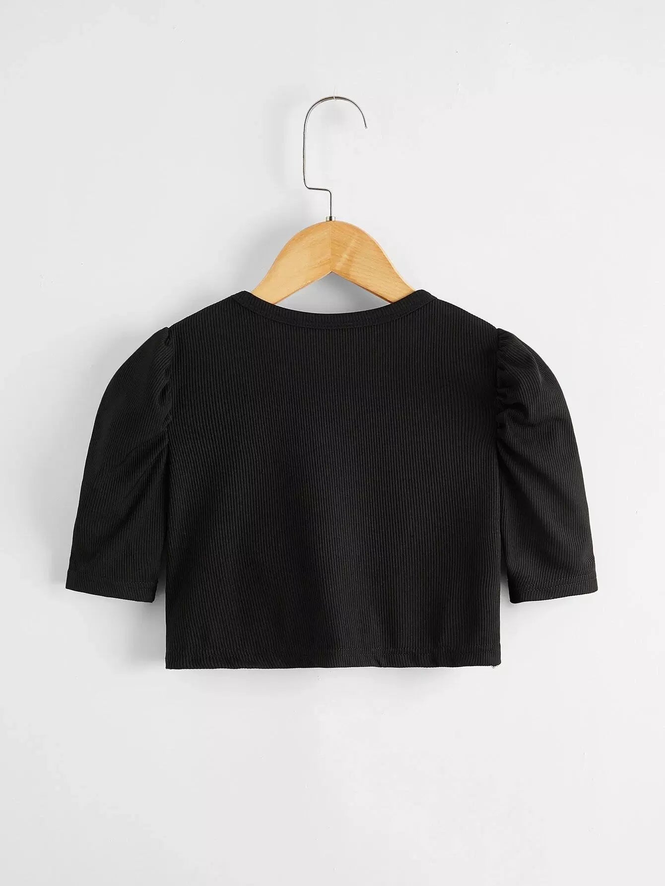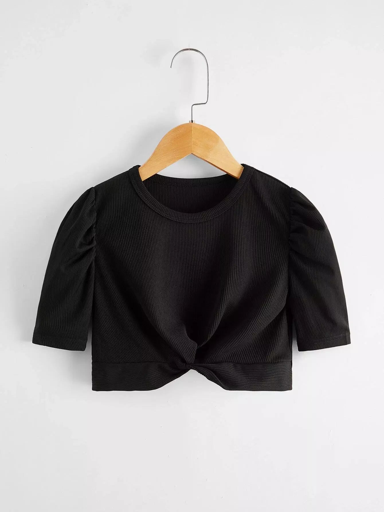تي شيرت سادة أمامي مطوي سادة للبنات الصغار