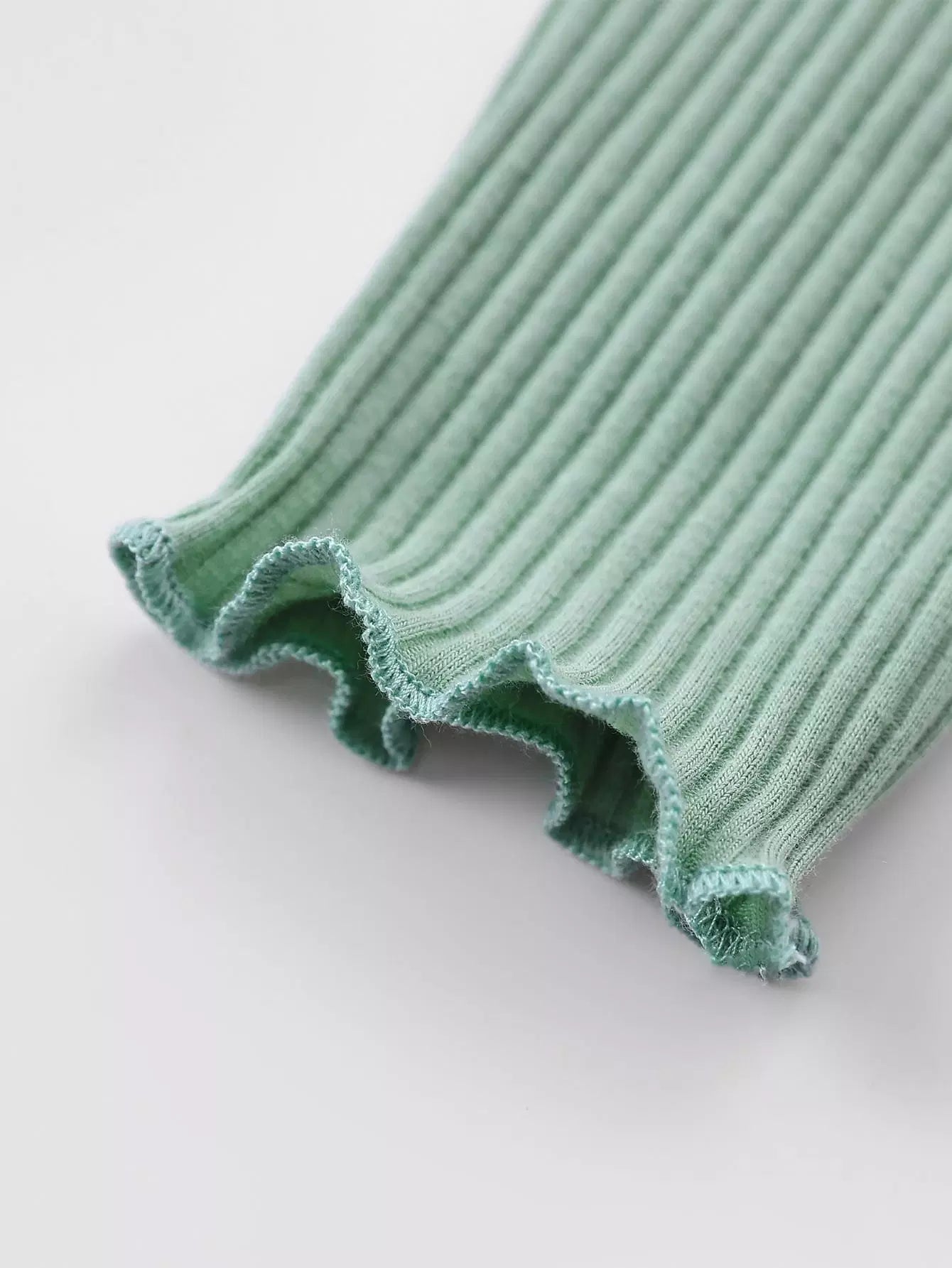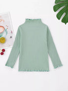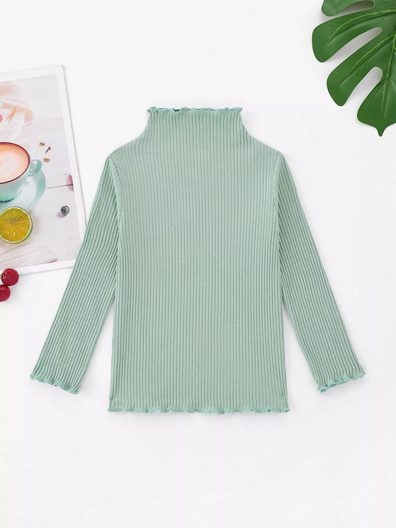 تي شيرت بياقة مستقيمة للبنات بياقة مستقيمة بحواف من الخس