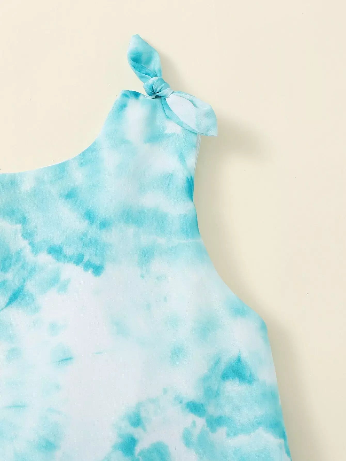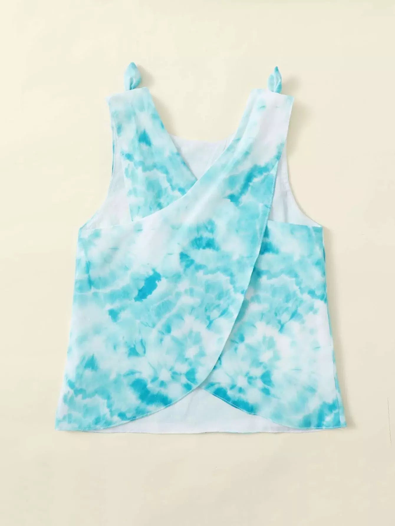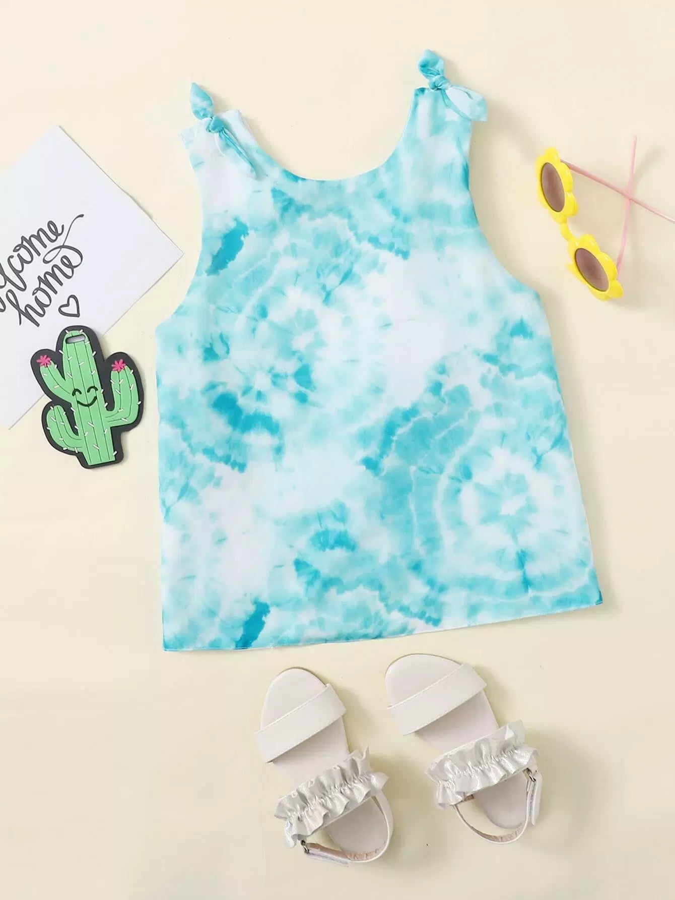 تانك بدون أكمام بناتي صغيرات مزين بصبغة تاي شيرت متقاطعة الظهر