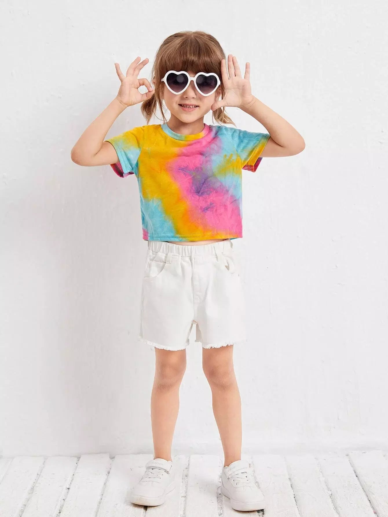 تي شيرت صبغ التعادل للفتيات الصغيرات
