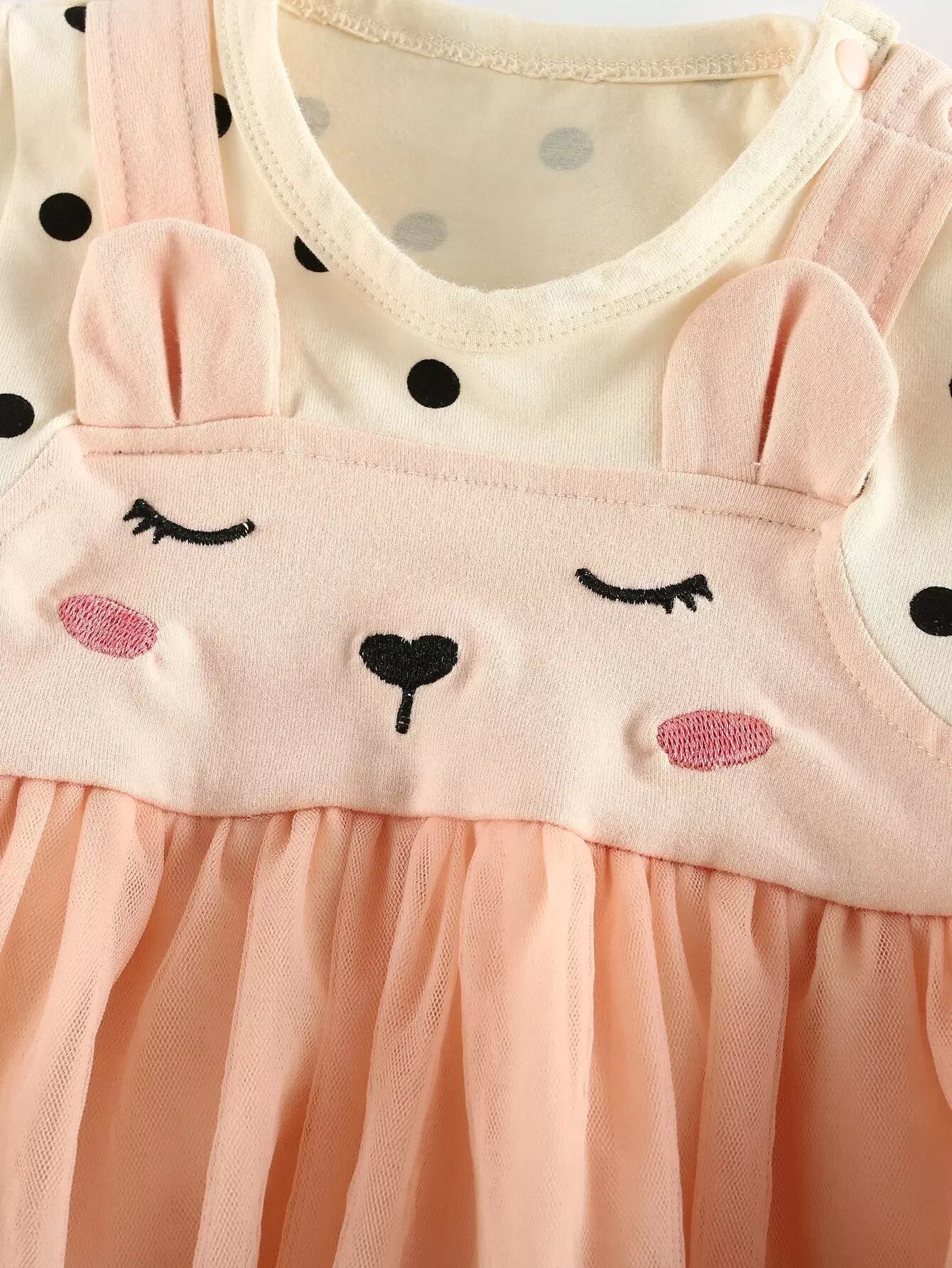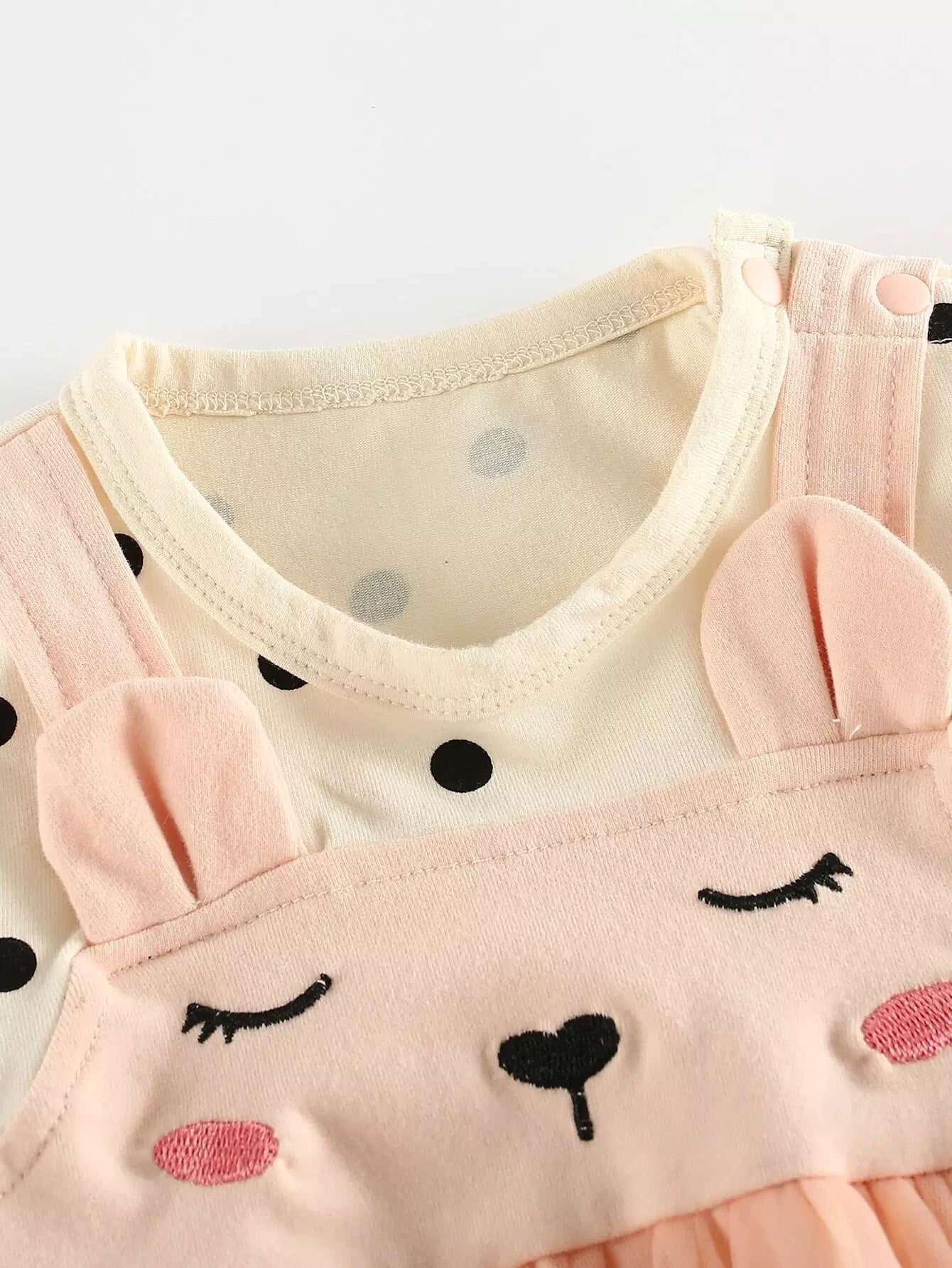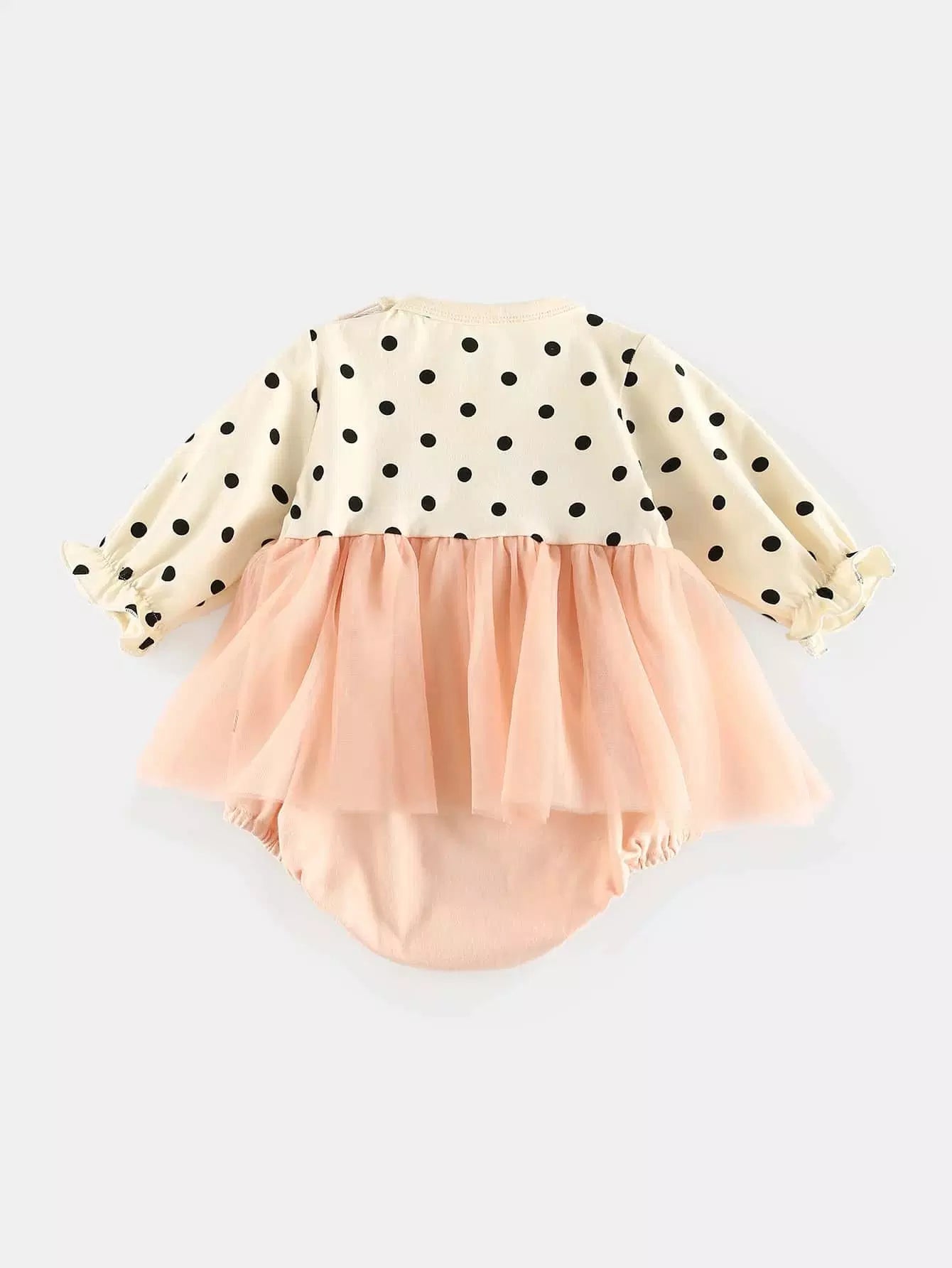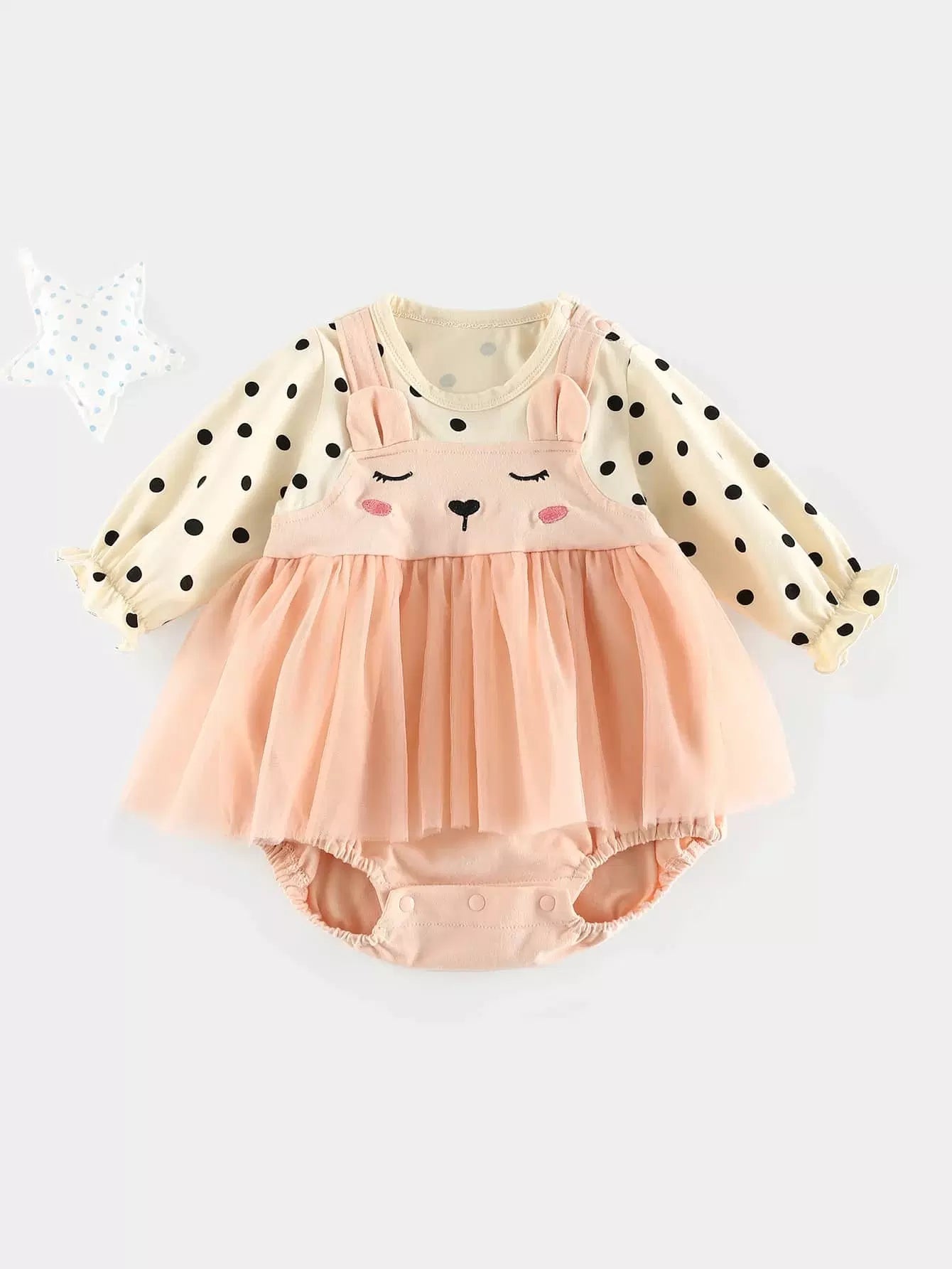 لباس قطعة واحدة بنقشة منقطة ومطبوع عليها رسومات كرتونية شبكية واسعة 2 في 1