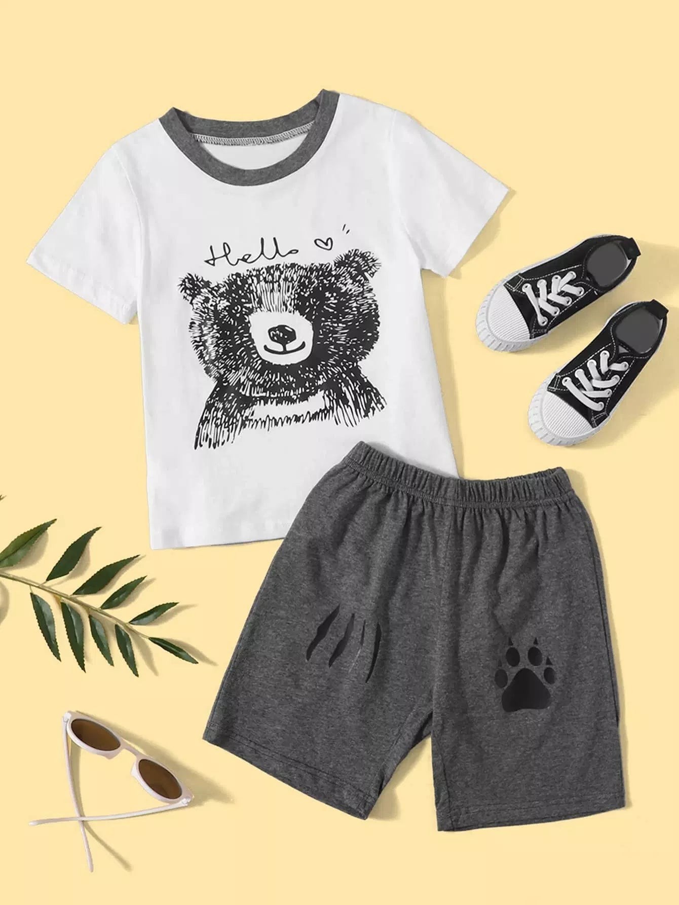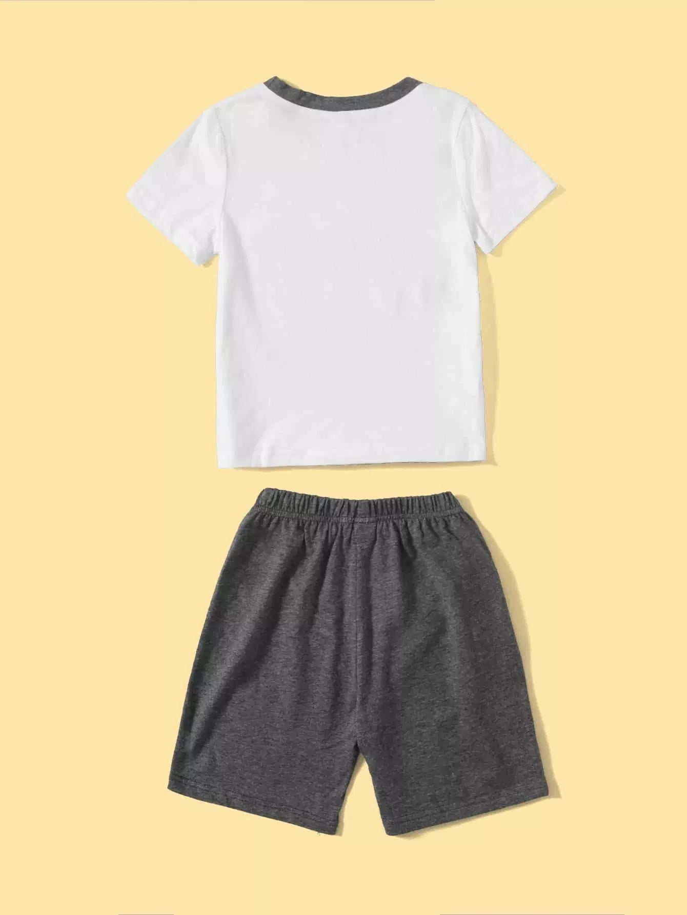 تي شيرت برسوم كرتونية للأولاد الصغار مع شورت رياضي