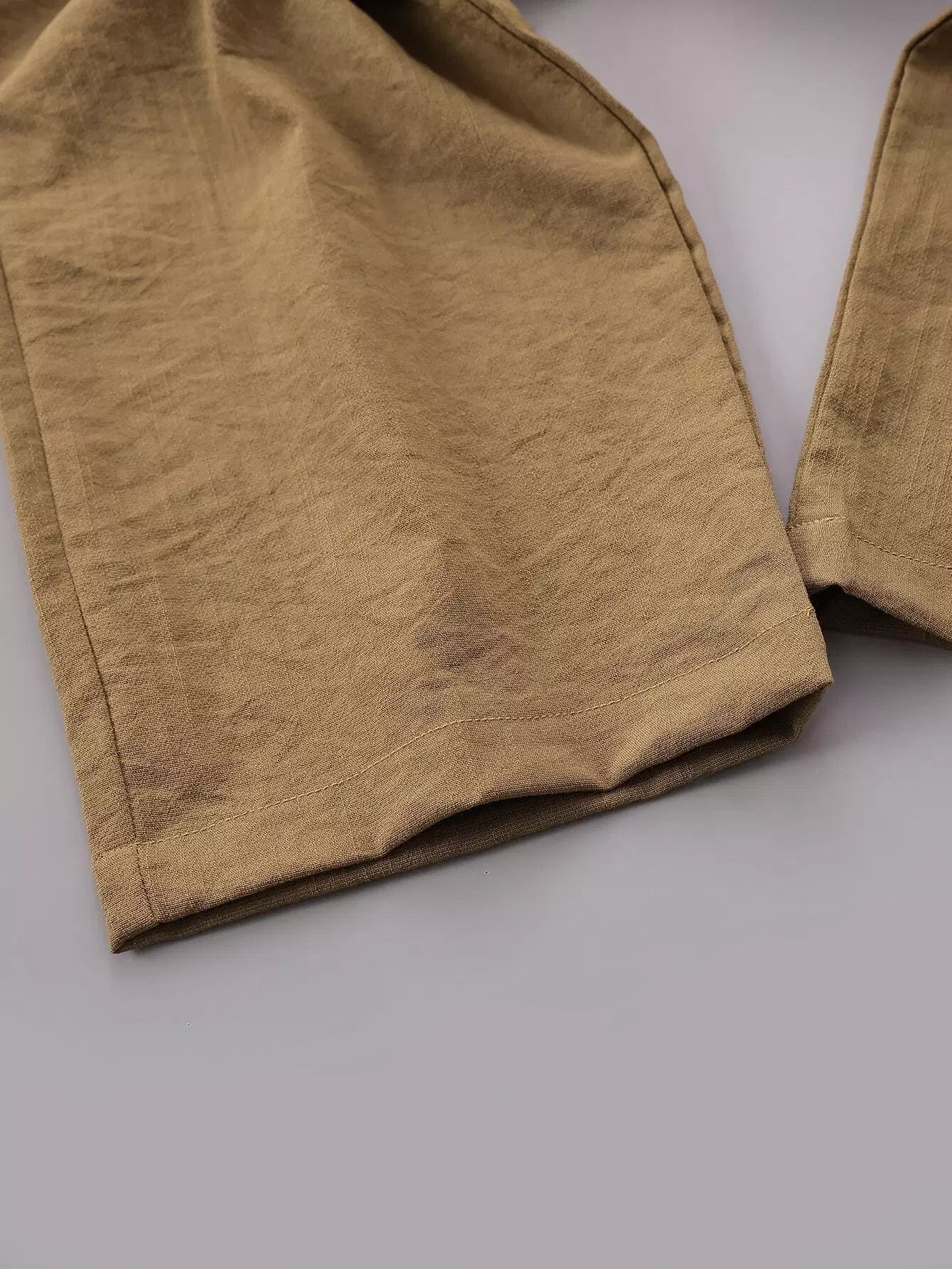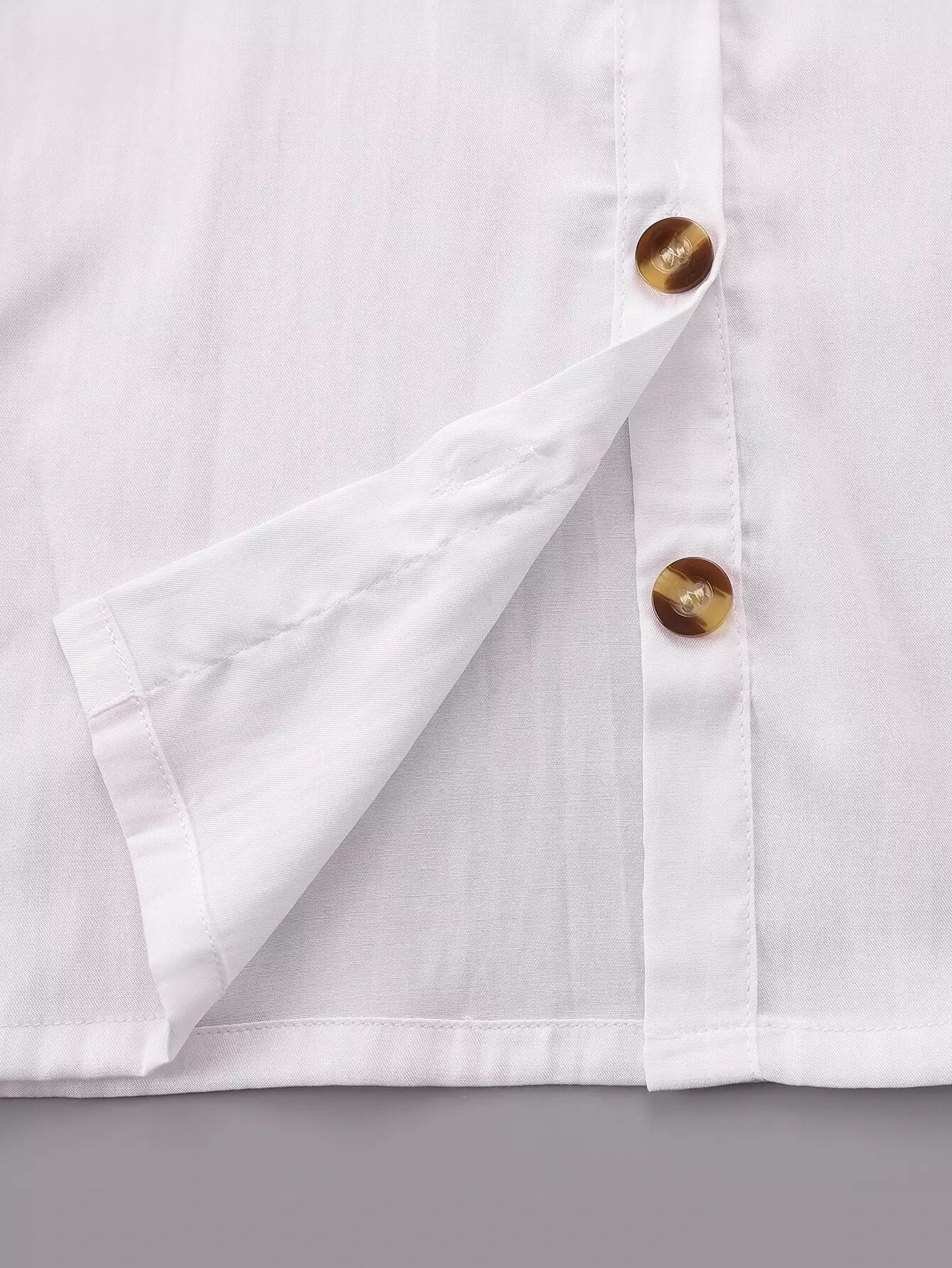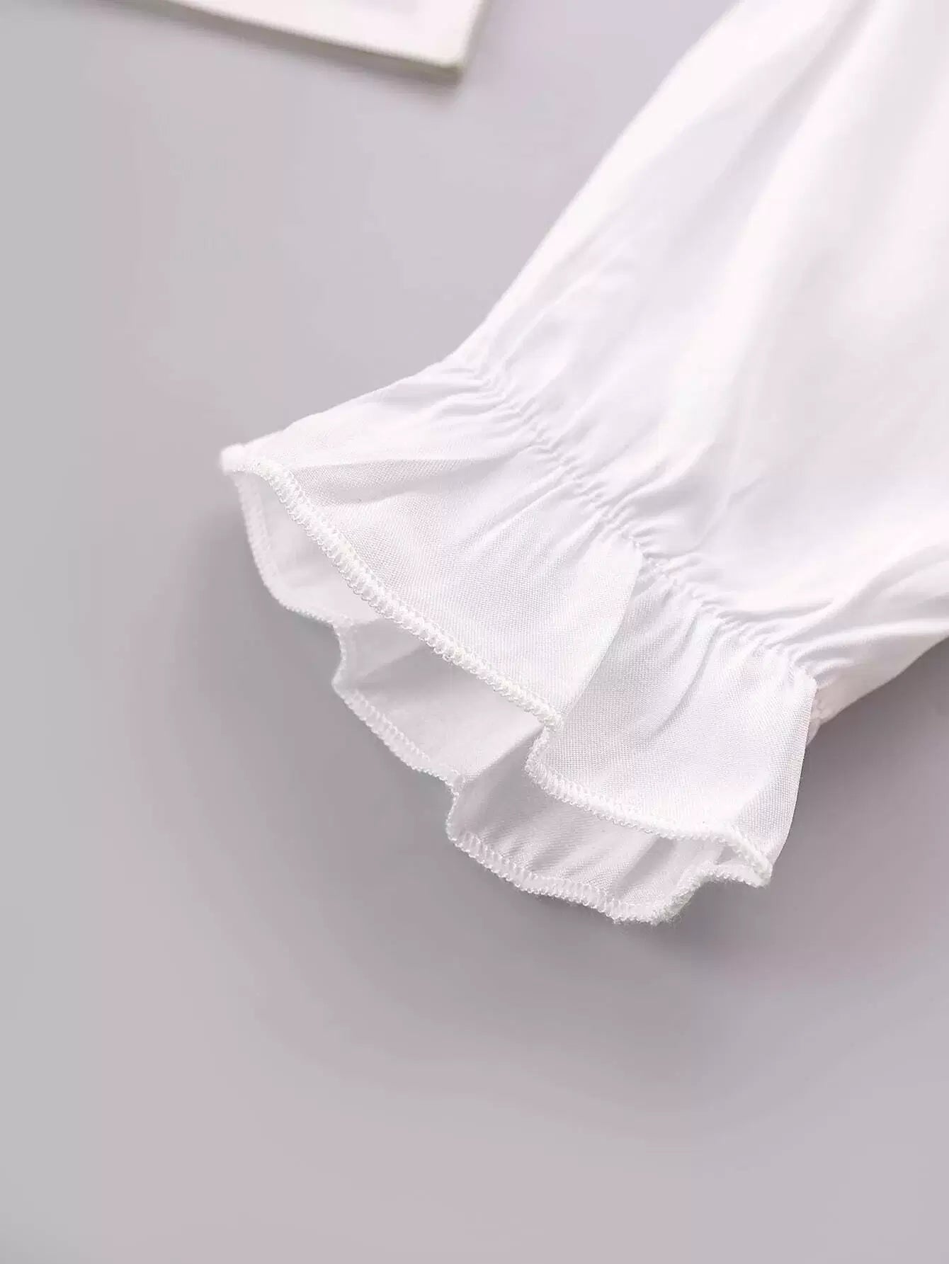 بلوزة بأزرار بأكمام منفوشة للبنات الصغيرات وبنطال بعقدة أمامية