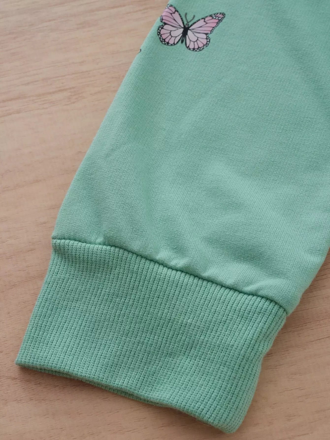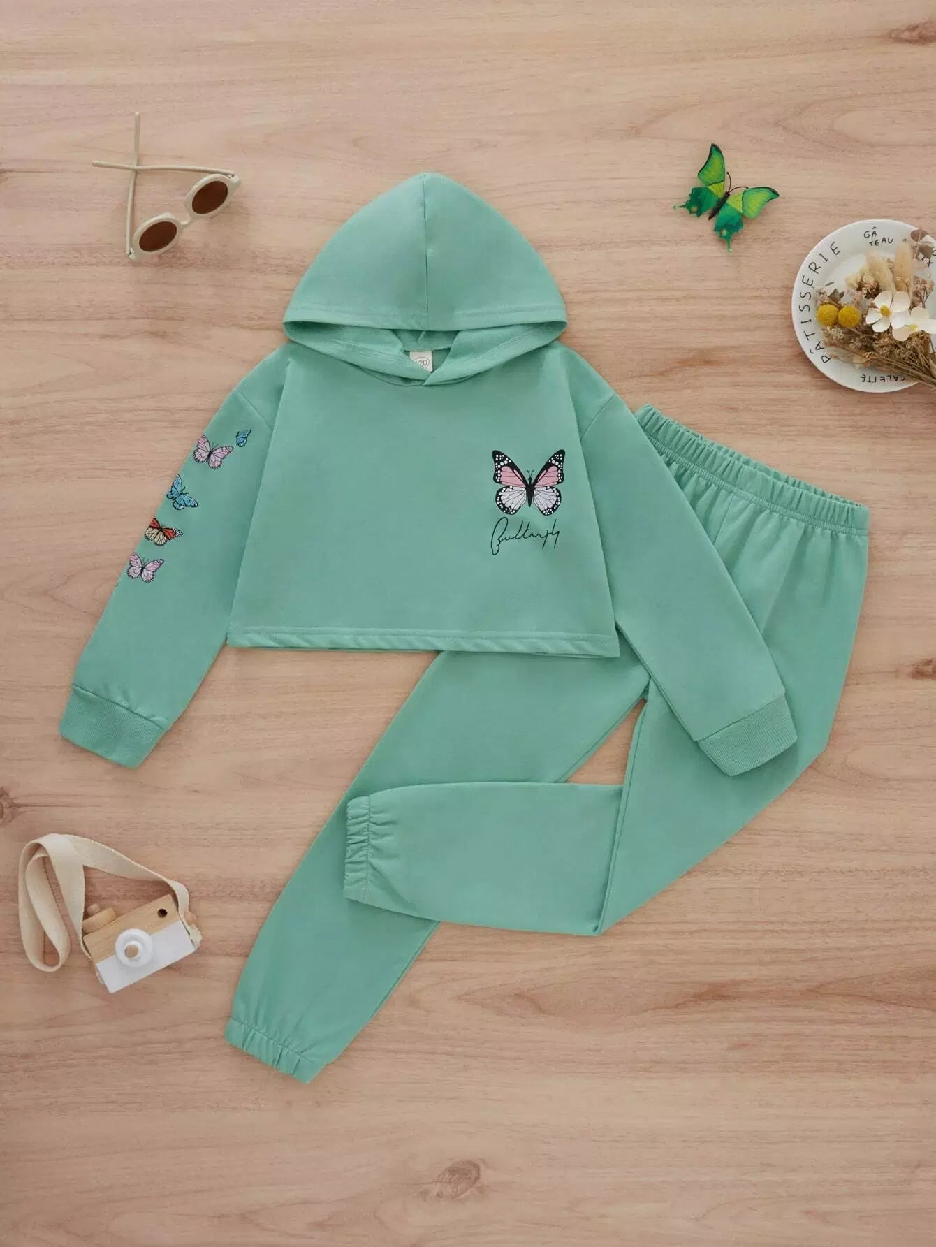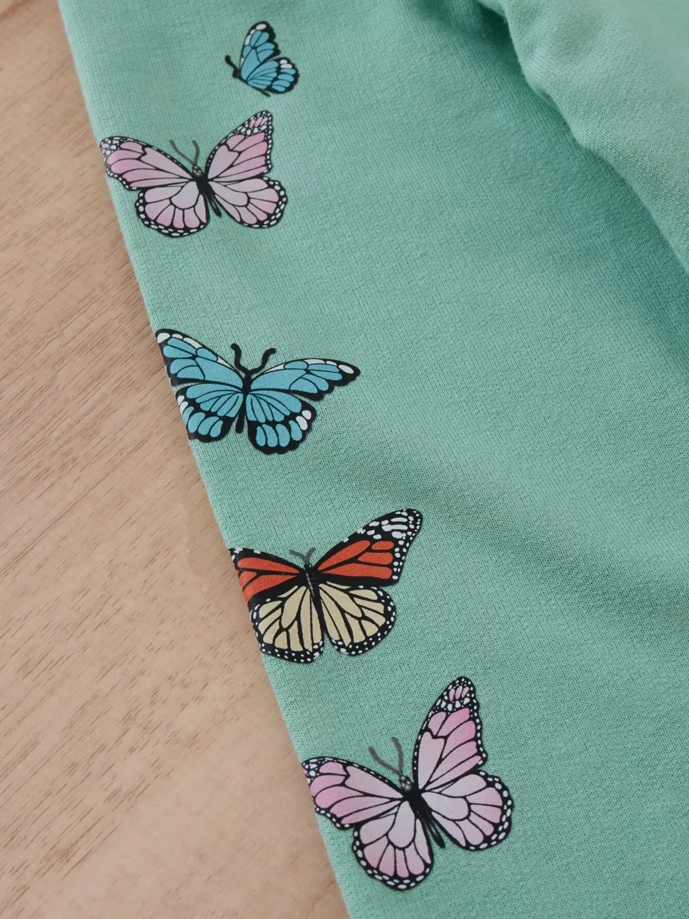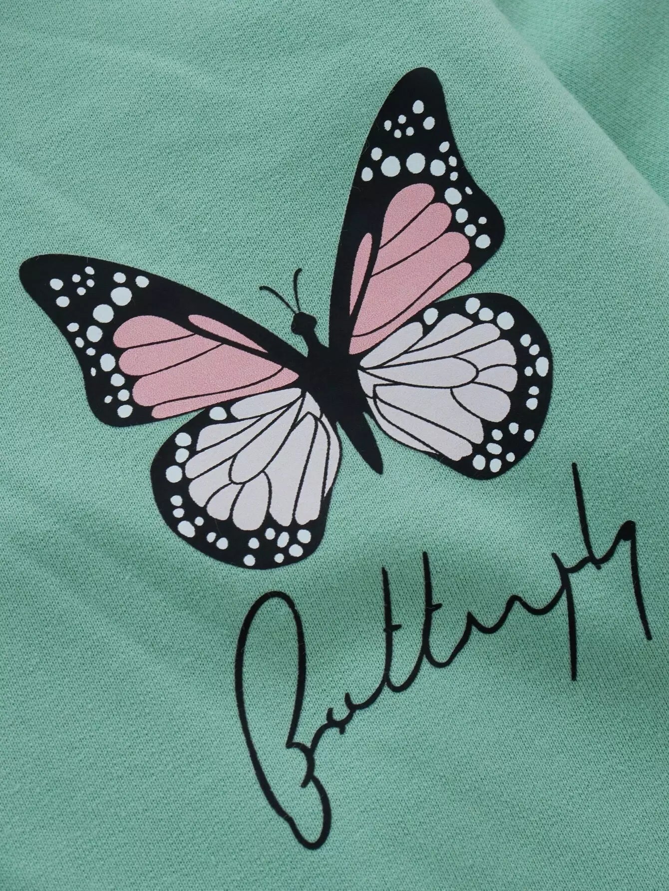 هودي وسويت شيرت بقبعة وبنطال رياضي بطبعة فراشات للبنات الصغار