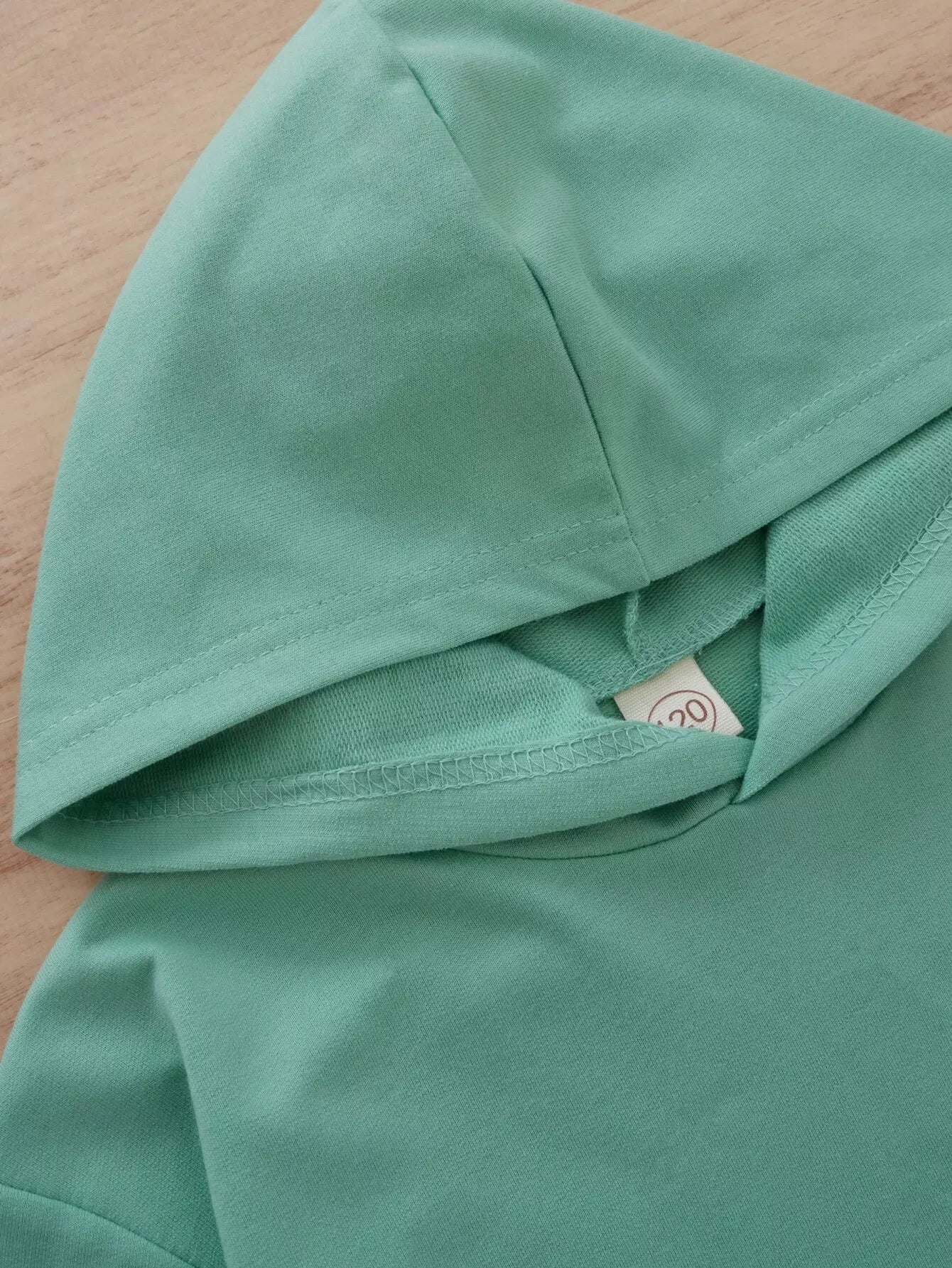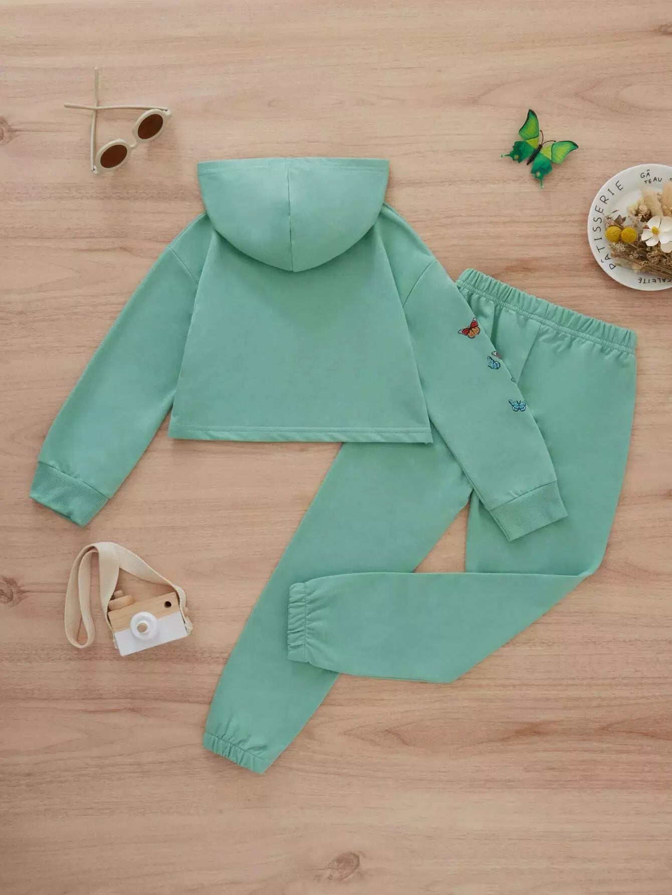 الأطفال - سترة بقلنسوة وبنطال رياضي بطبعة حروف وفراشات للفتيات الصغيرات