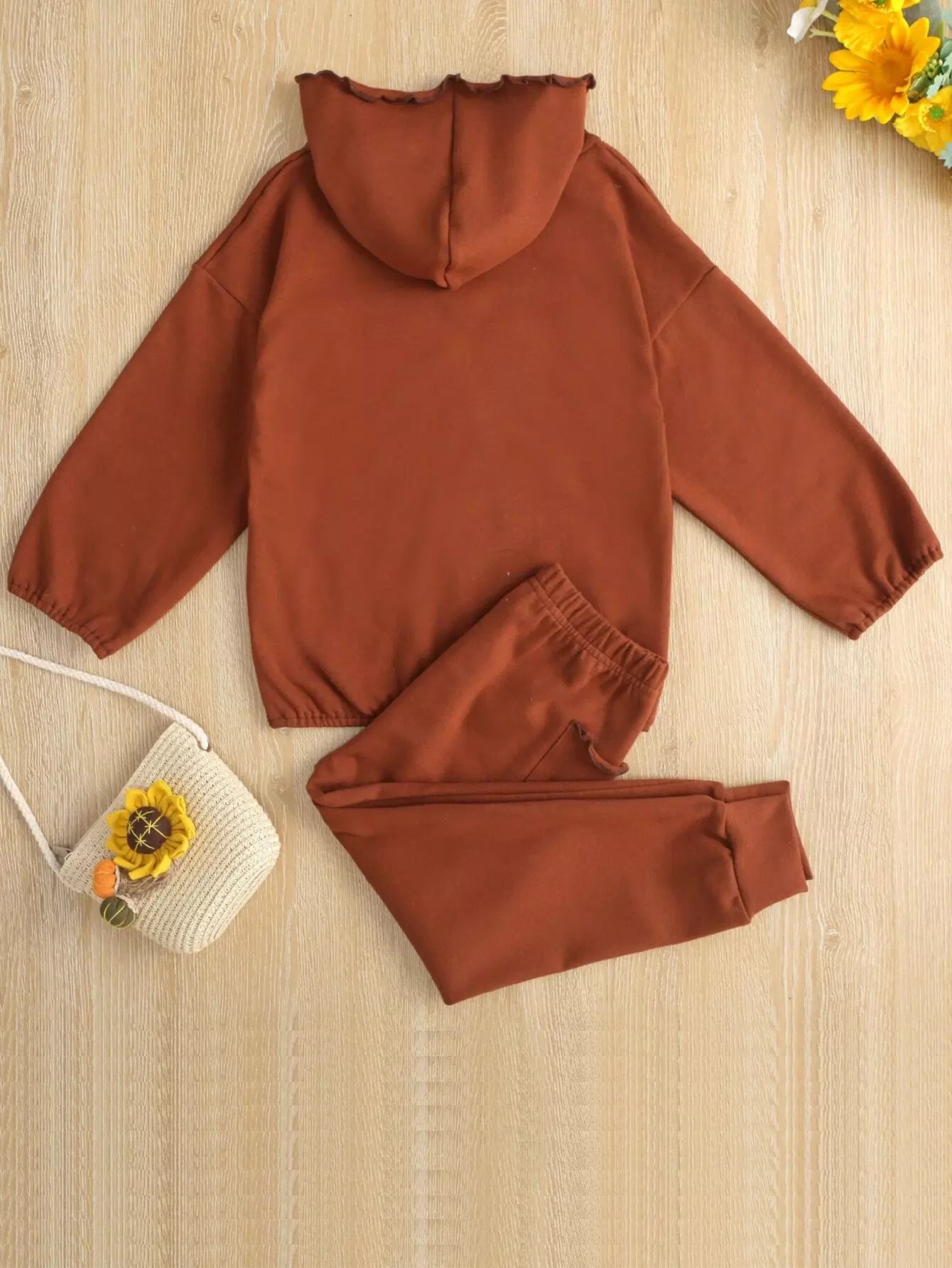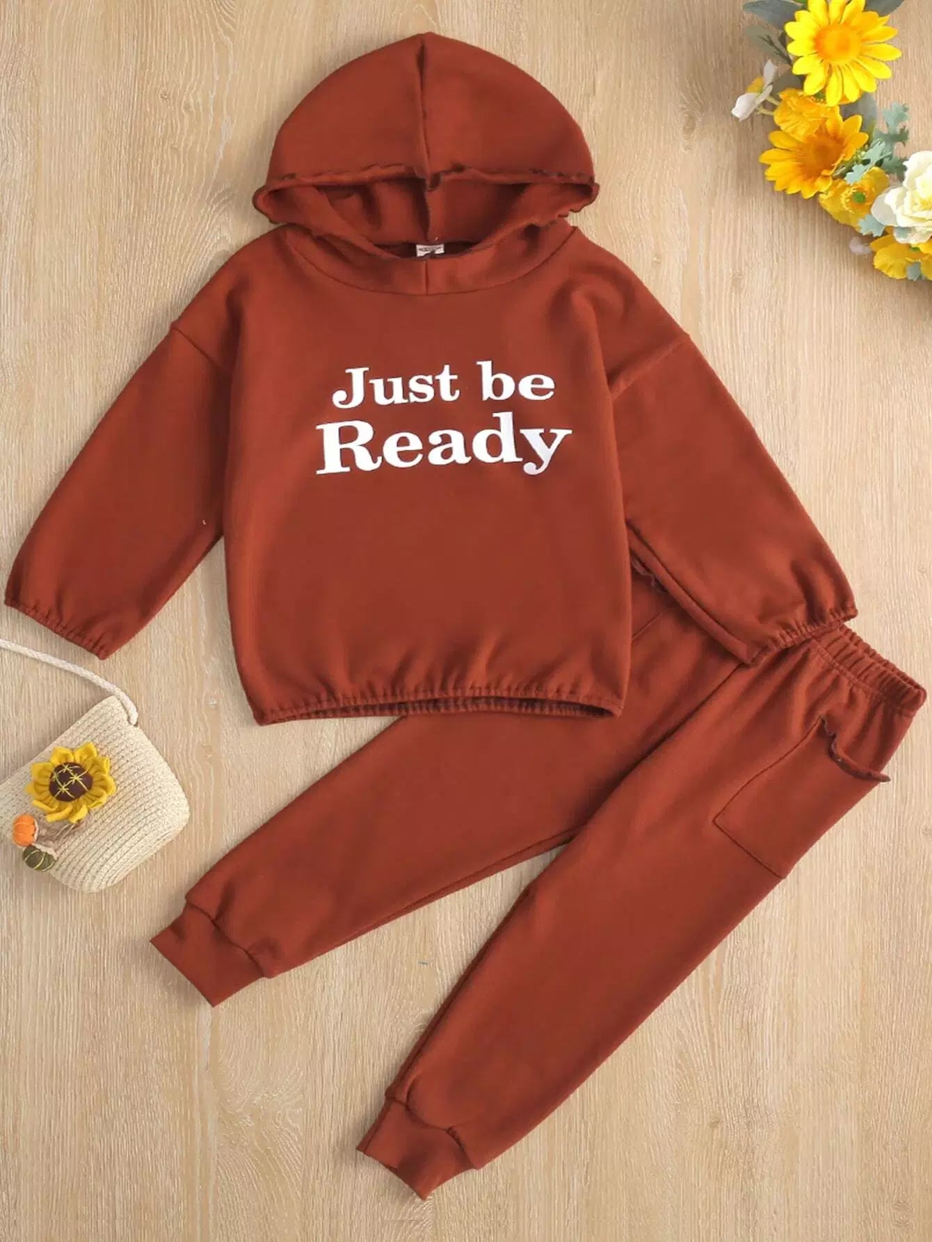 هودي وبنطال رياضي مزين بشعارات جرافيك للبنات الصغار