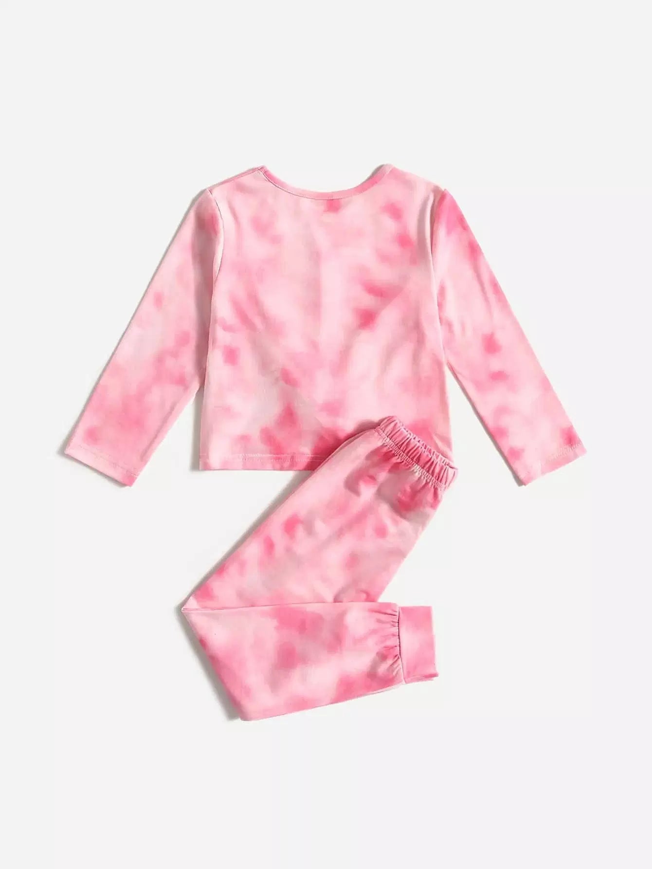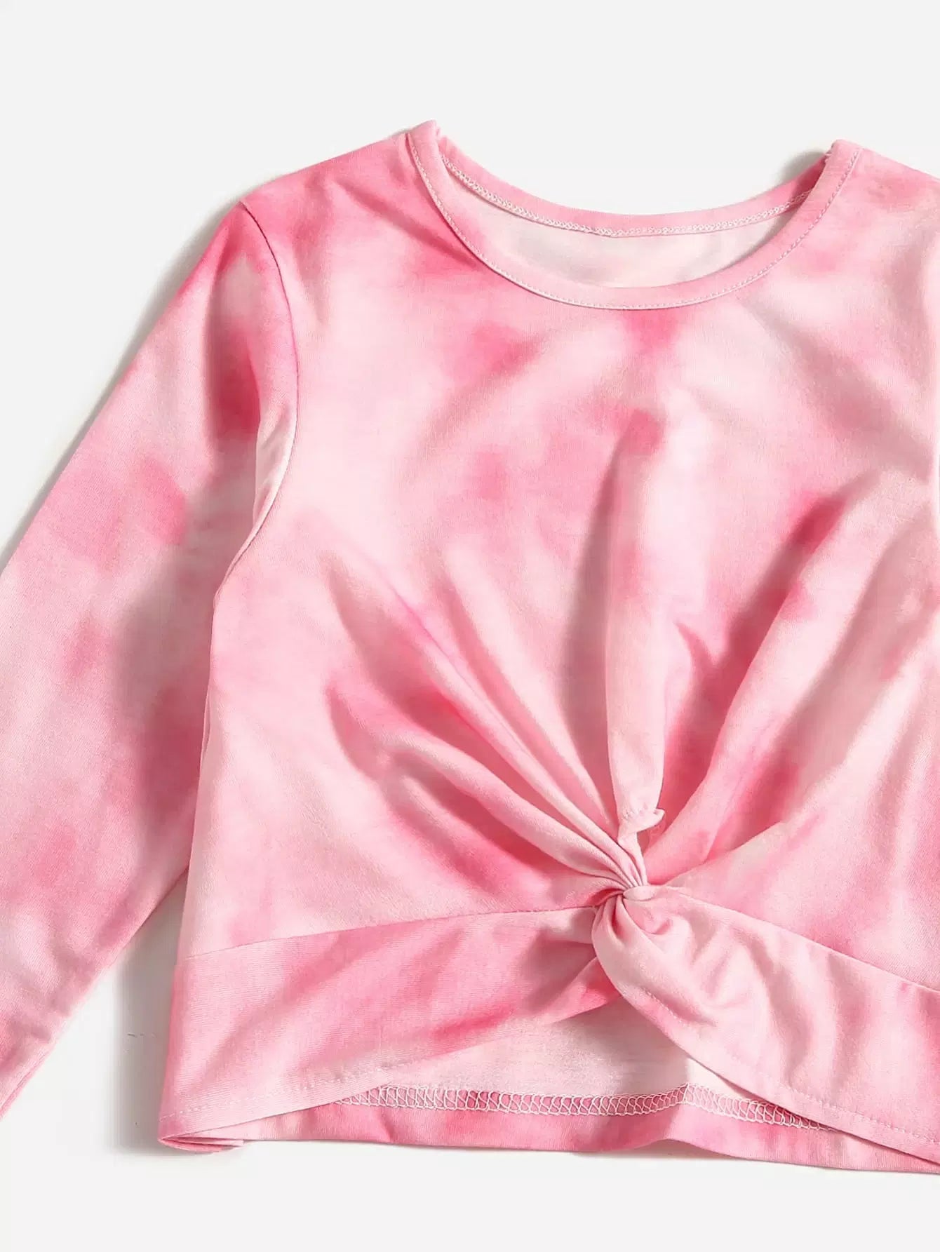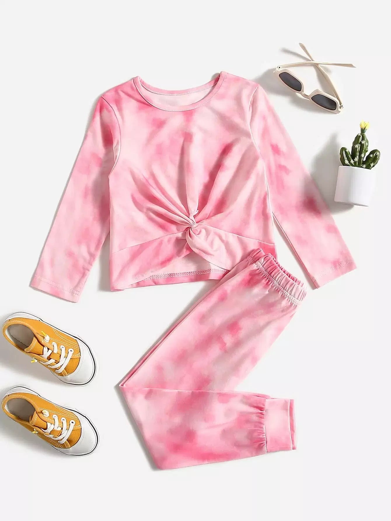 تيشيرت وبنطال رياضي أمامي تويست بصبغة تويست للبنات الصغار