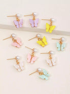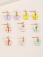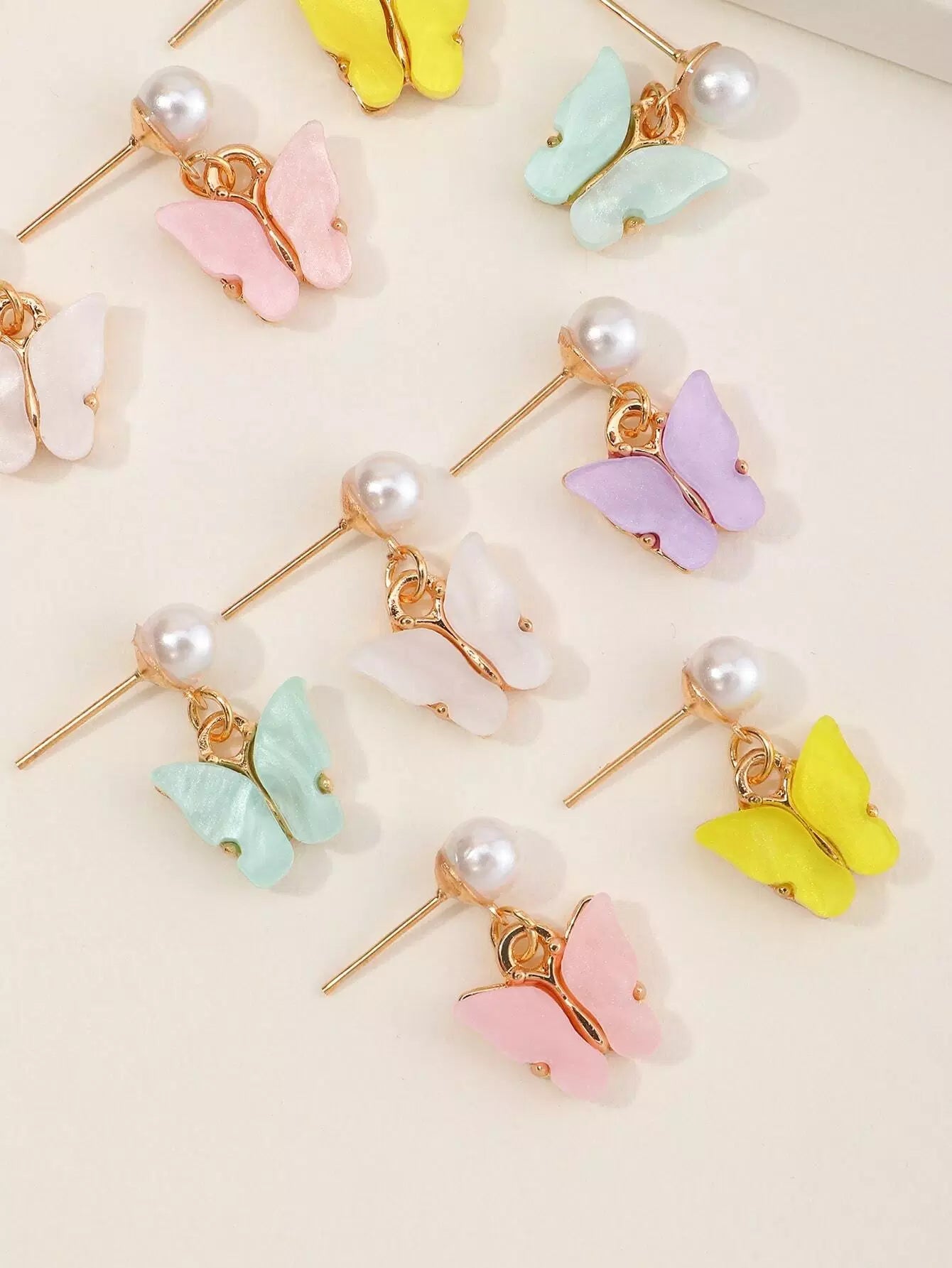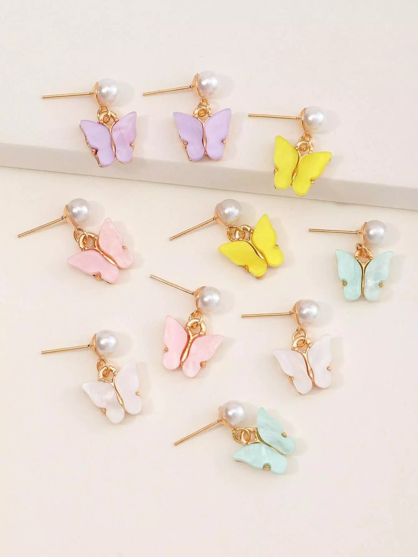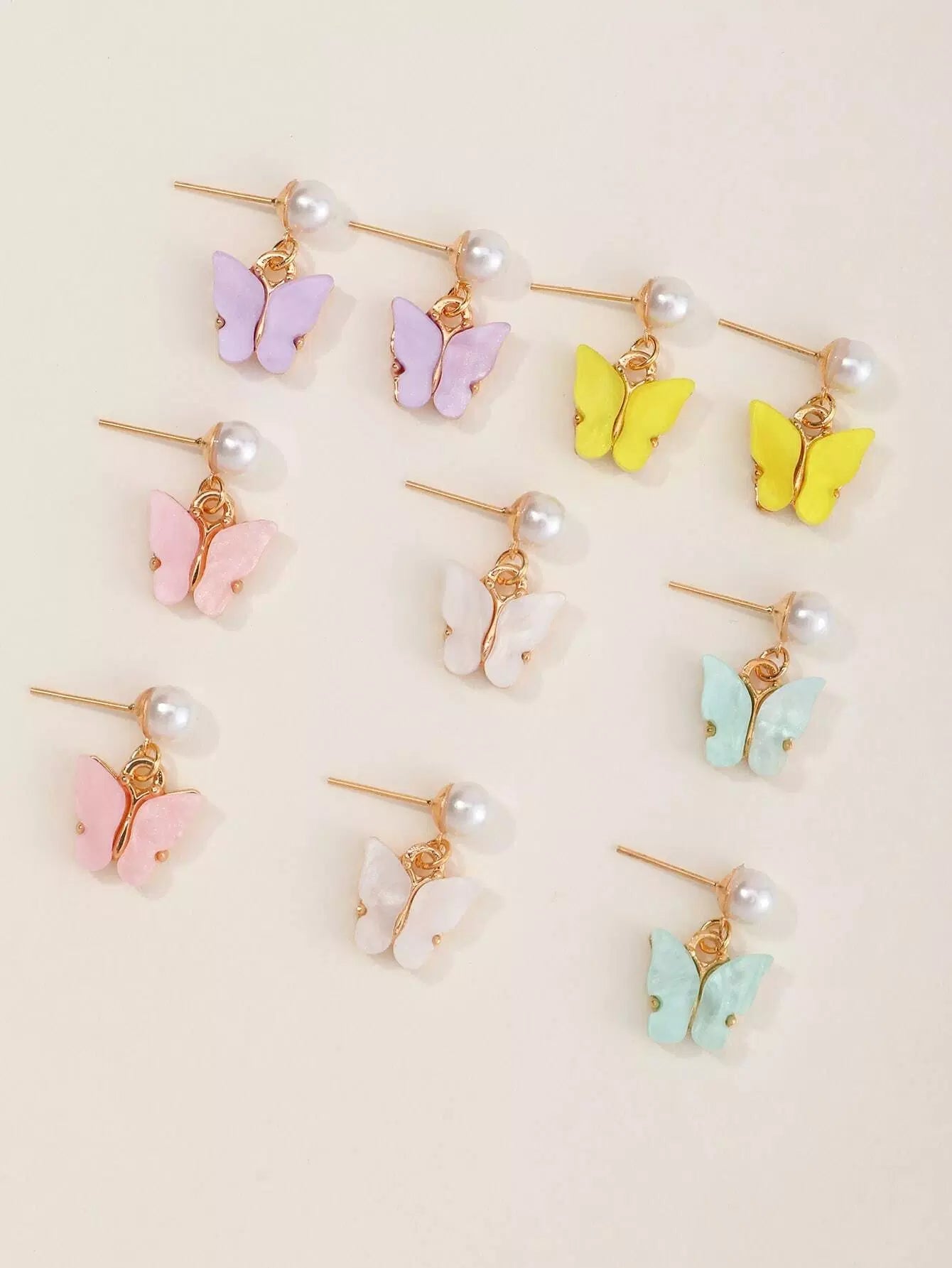 الأطفال - 5 أزواج من الأقراط المتدلية على شكل فراشة مزخرفة باللؤلؤ الصناعي للأطفال