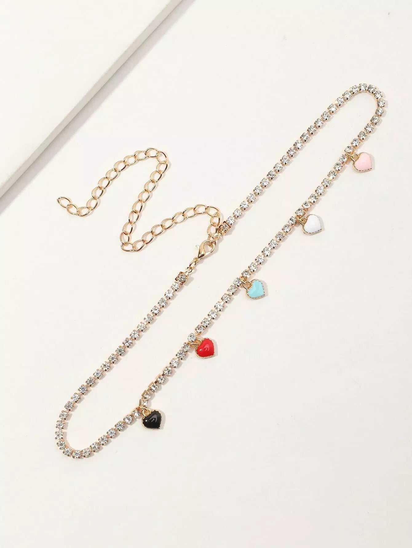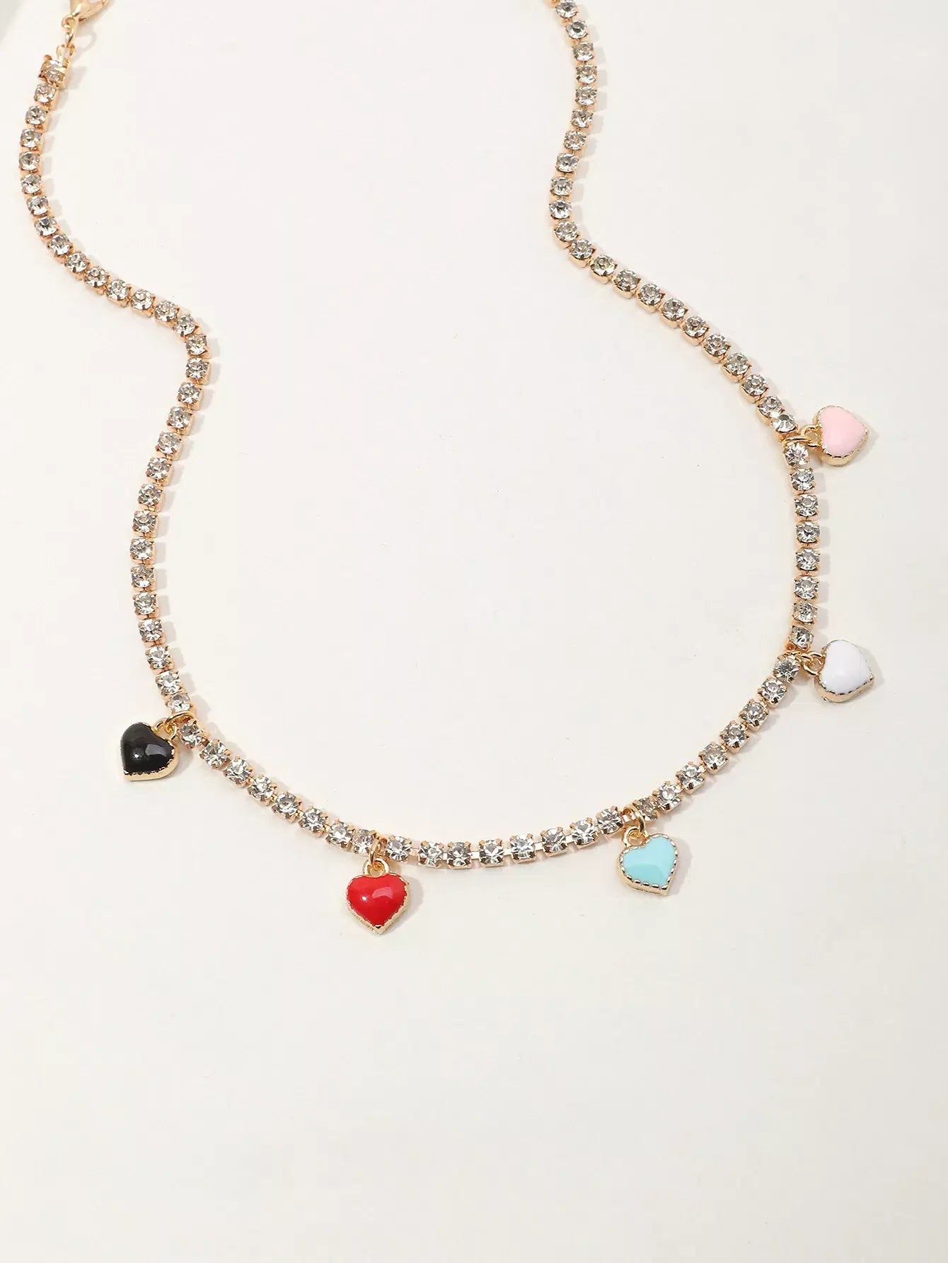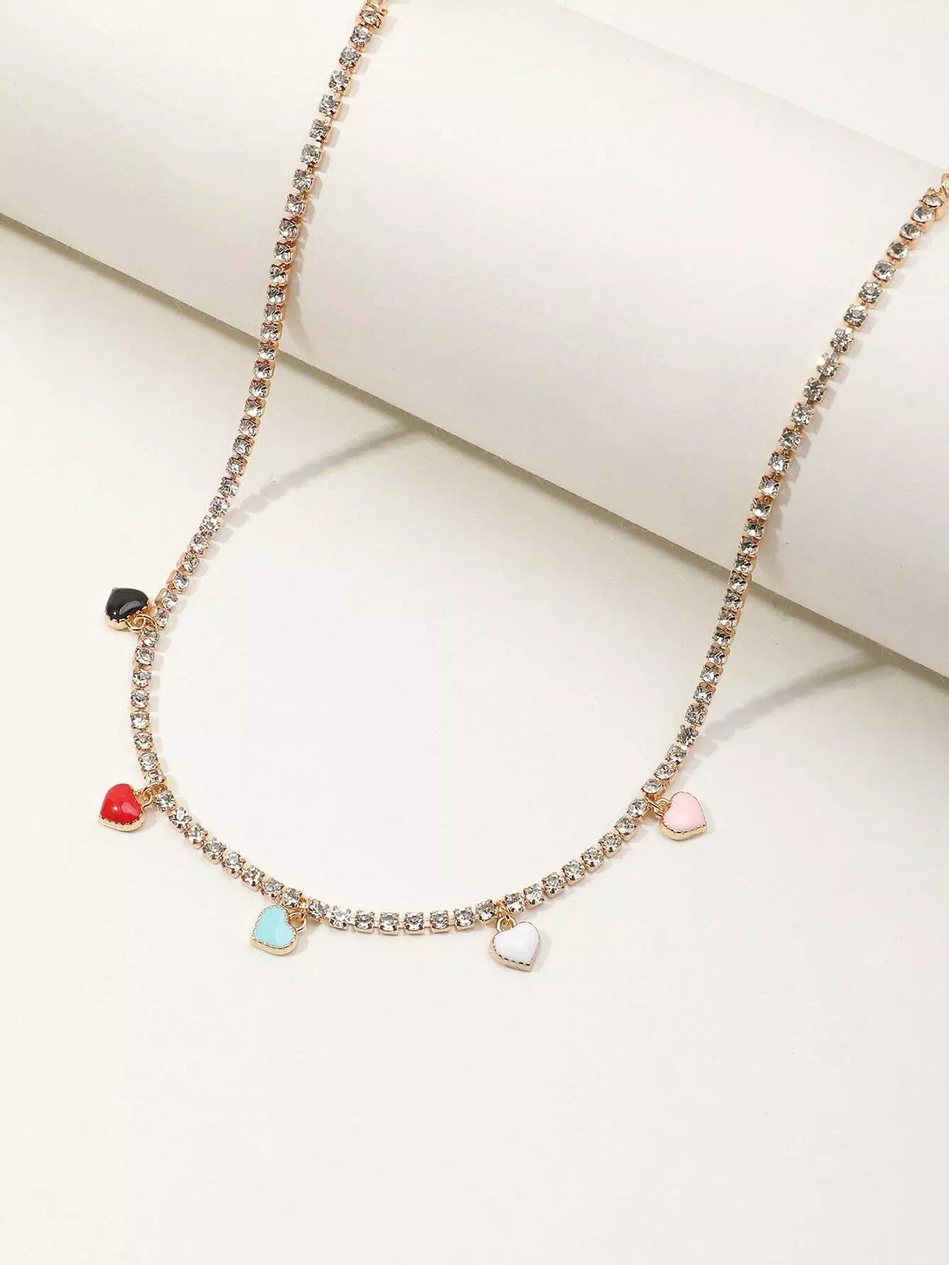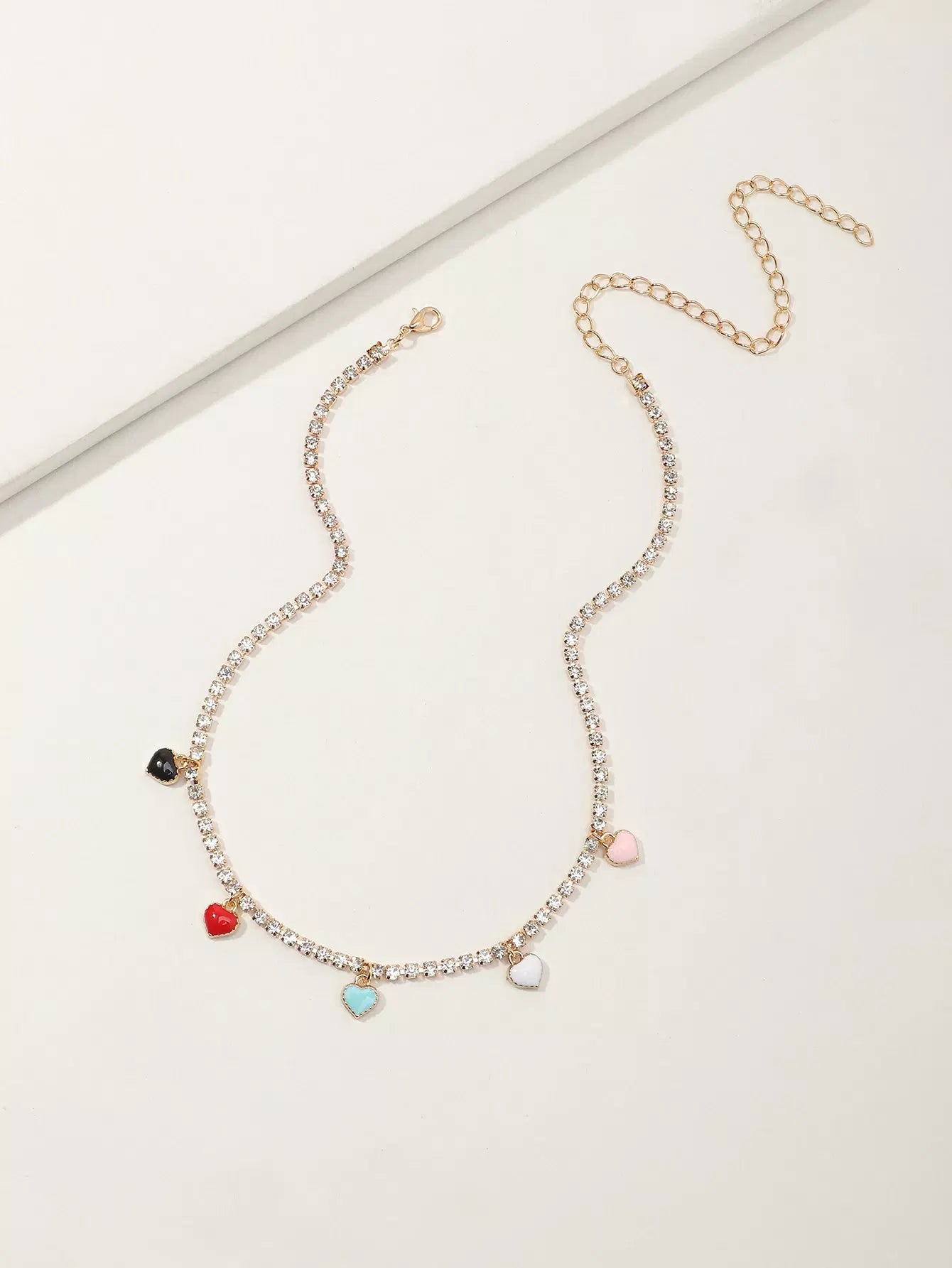قلادة مزينة بأحجار الراين على شكل قلب للفتيات