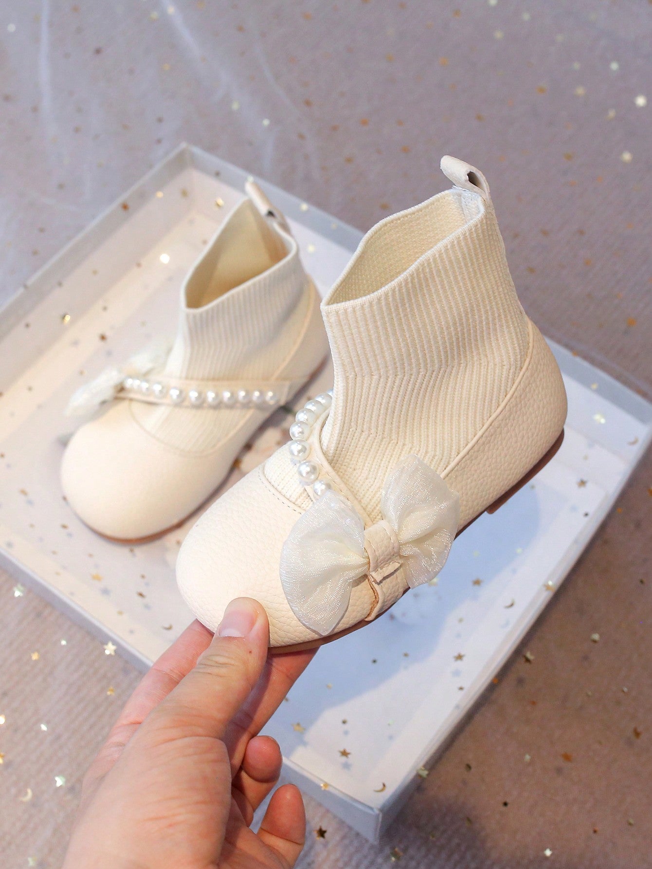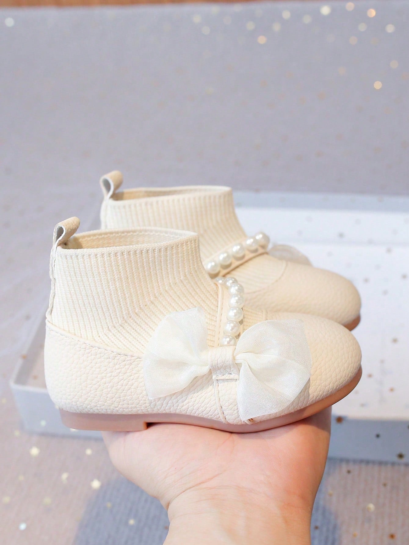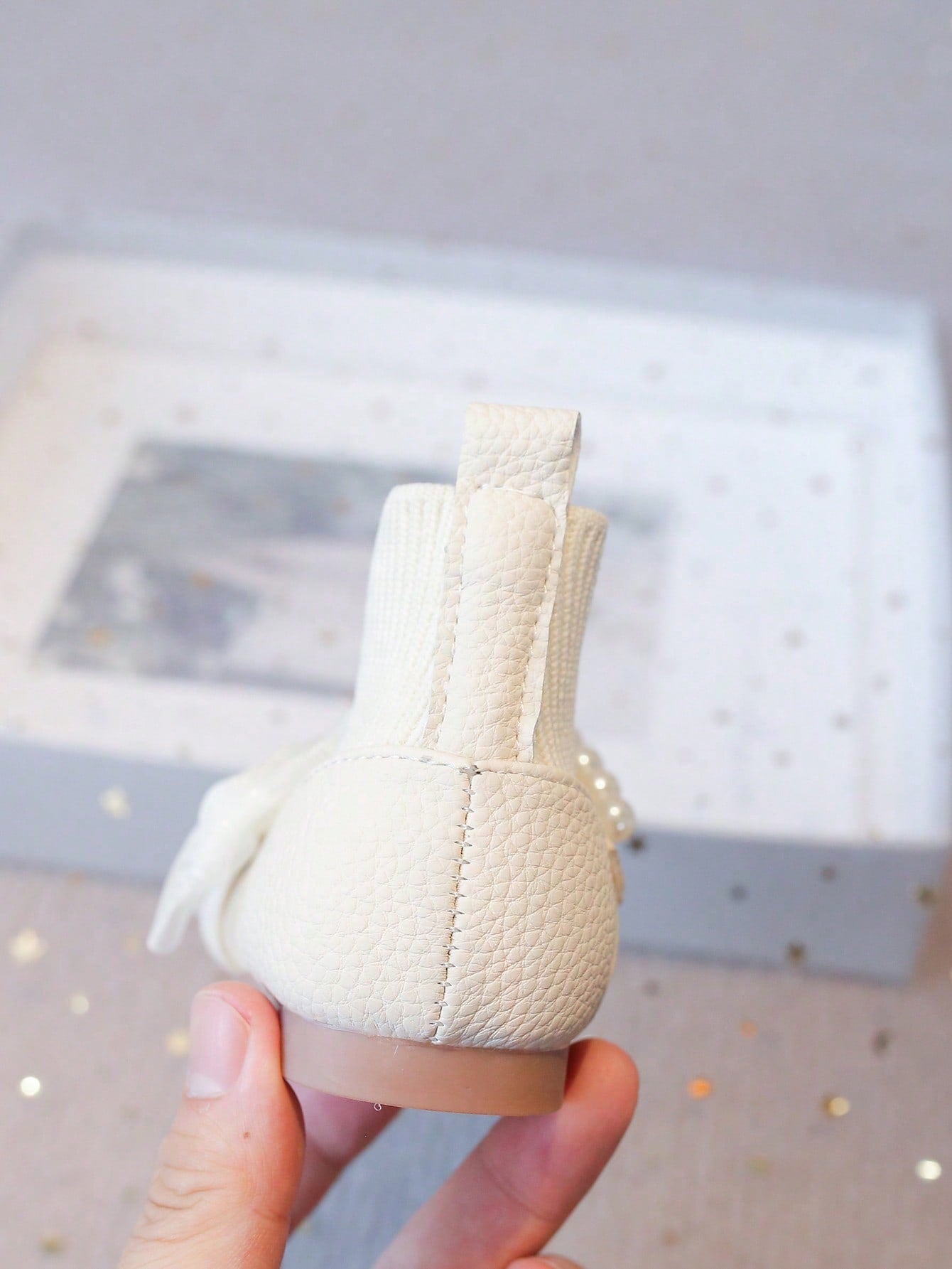 حذاء كاحل جديد للبنات من الجلد اللامع بتصميم لؤلؤي وقوس، موديل 2025