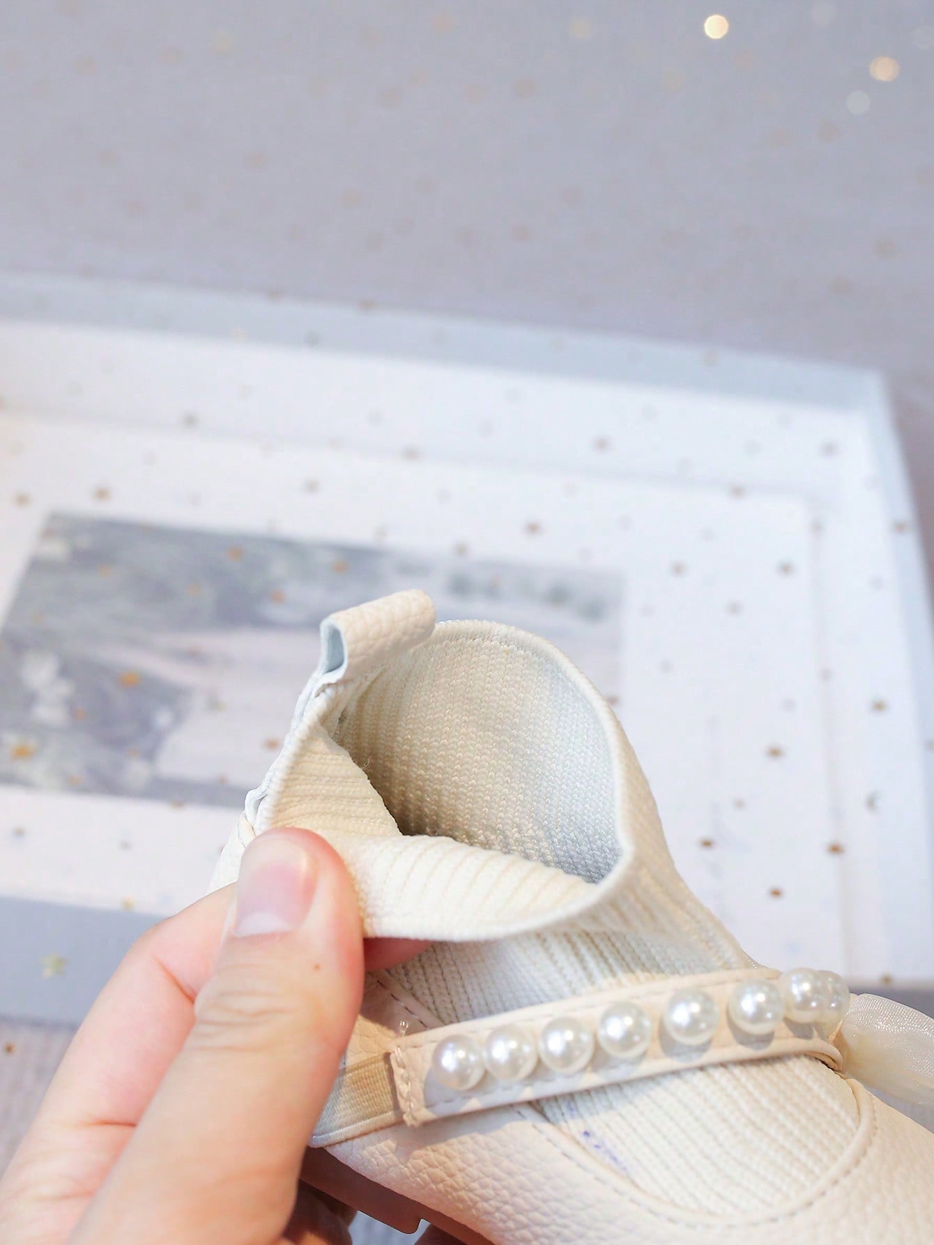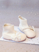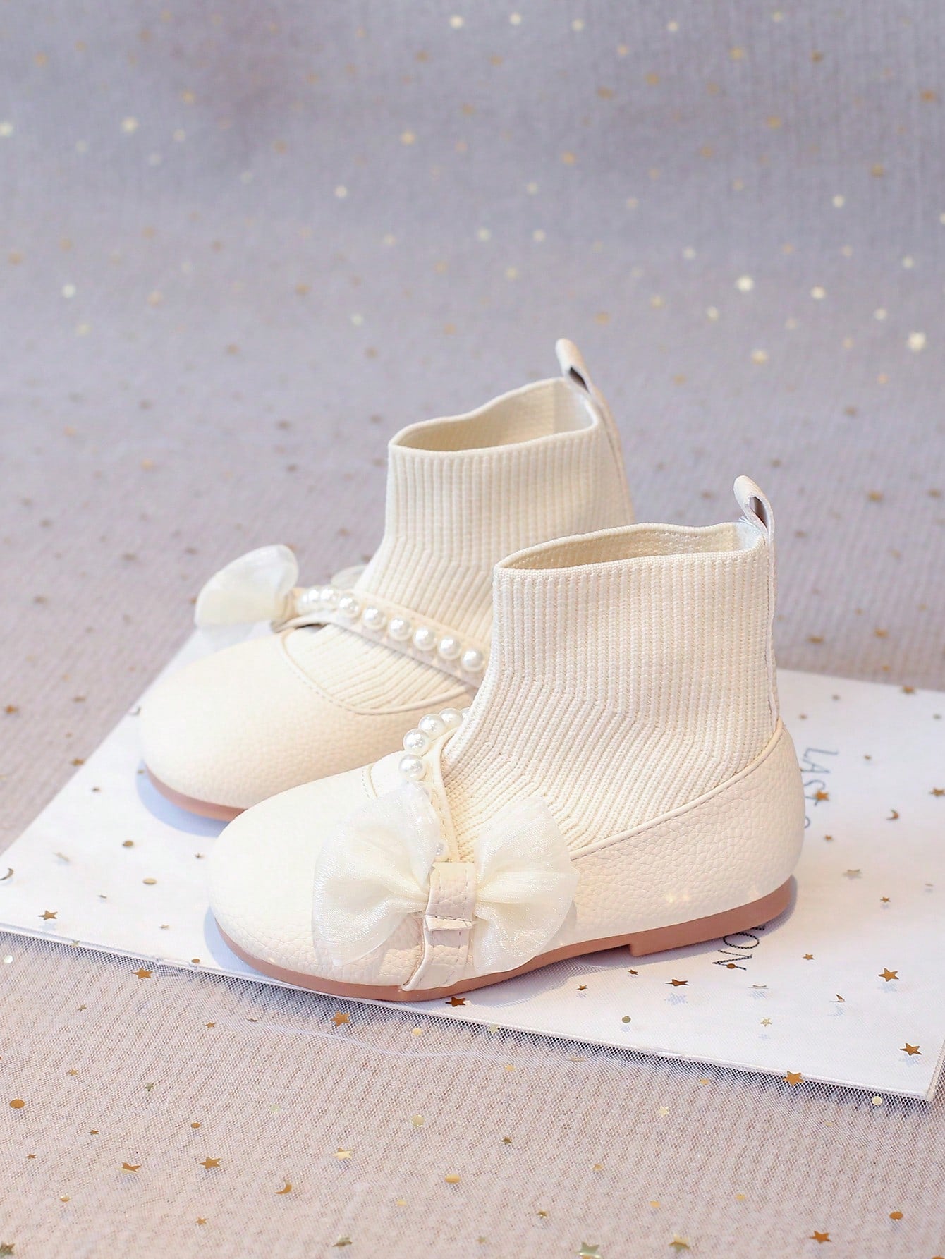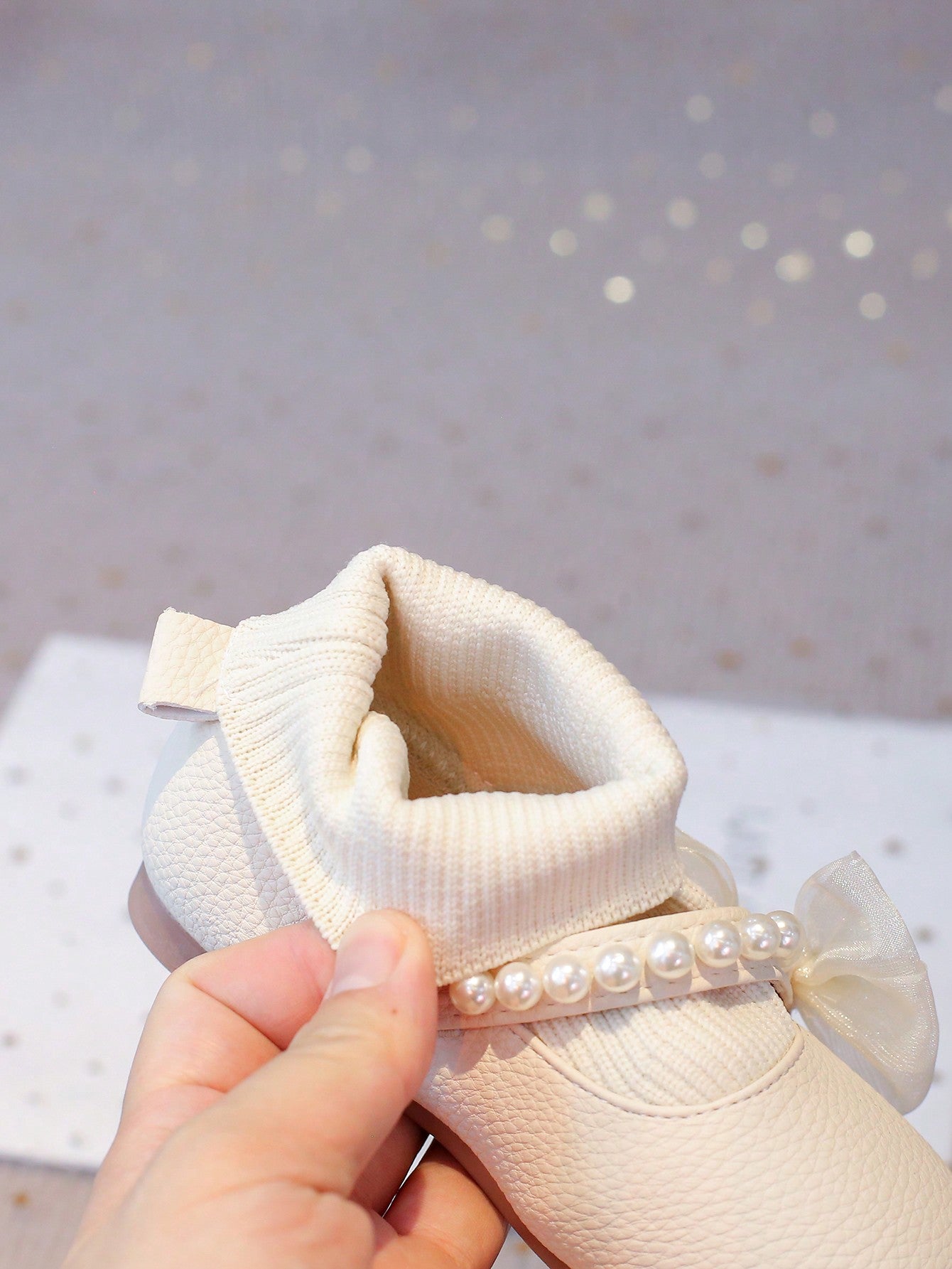 حذاء كاحل جديد للبنات من الجلد اللامع بتصميم لؤلؤي وقوس، موديل 2025