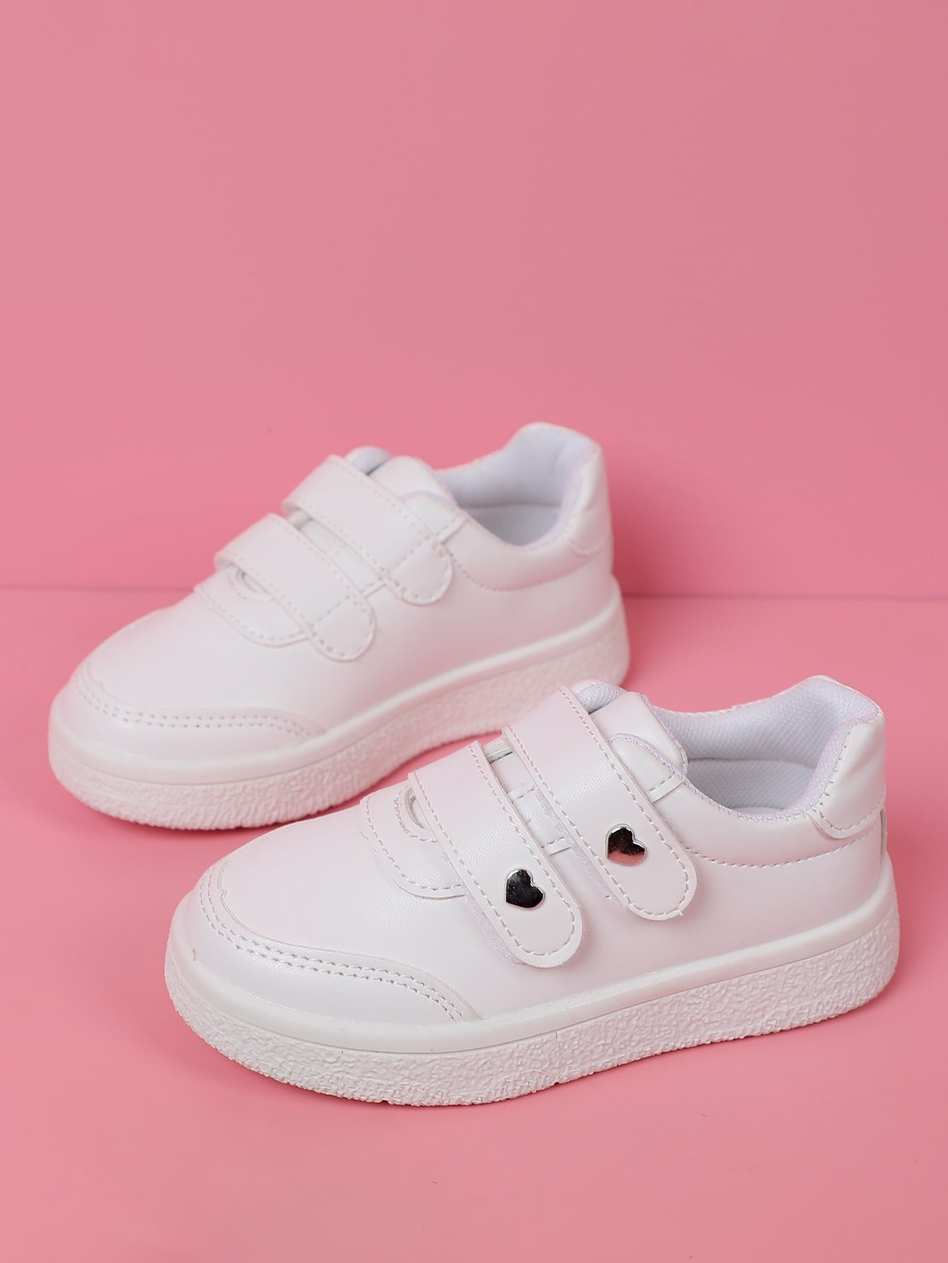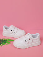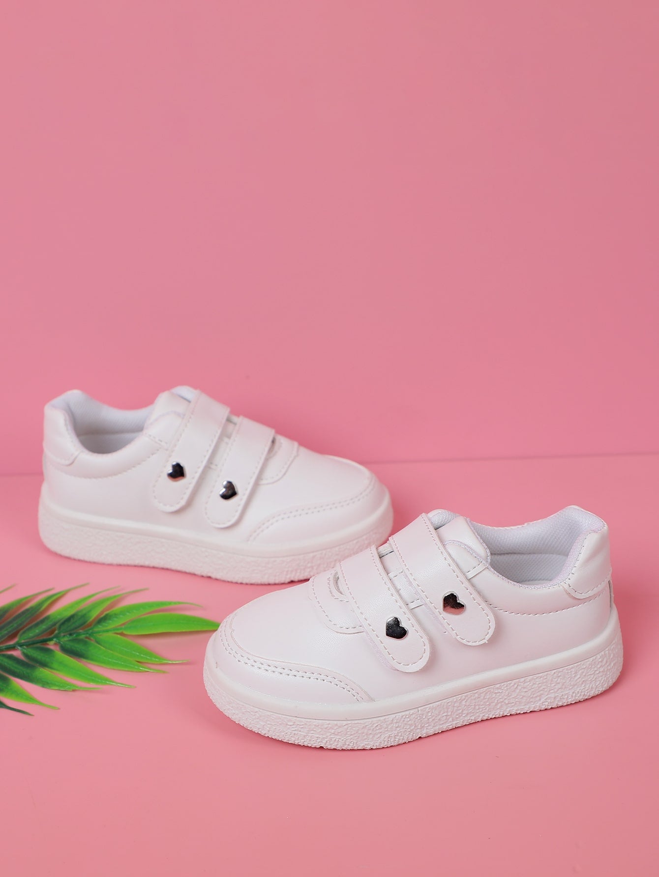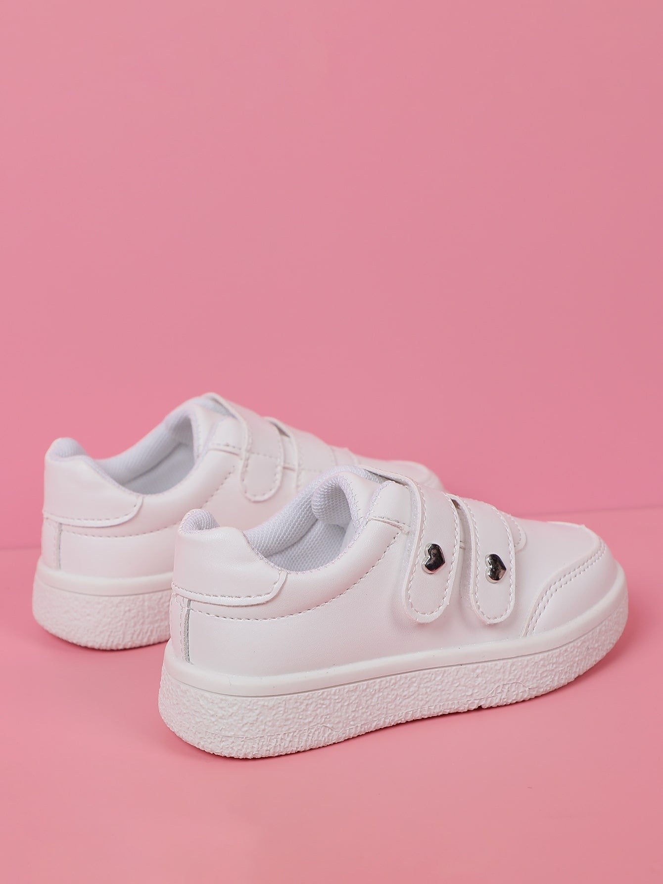 Girls Heart Studded Decor Hook-and-loop Fastener Sneakers Fashion White Skate Shoes