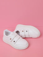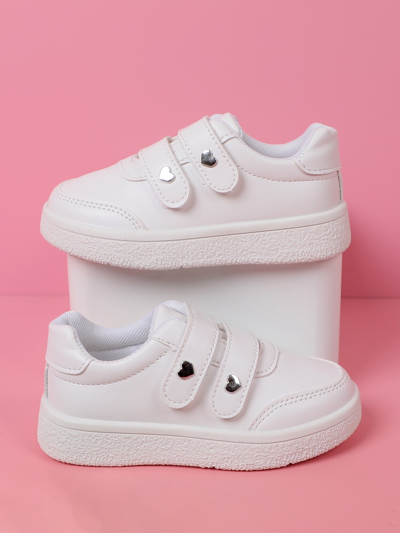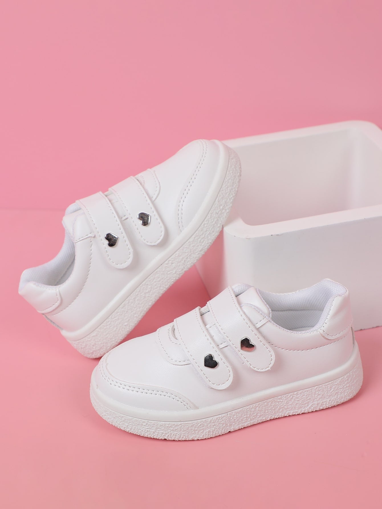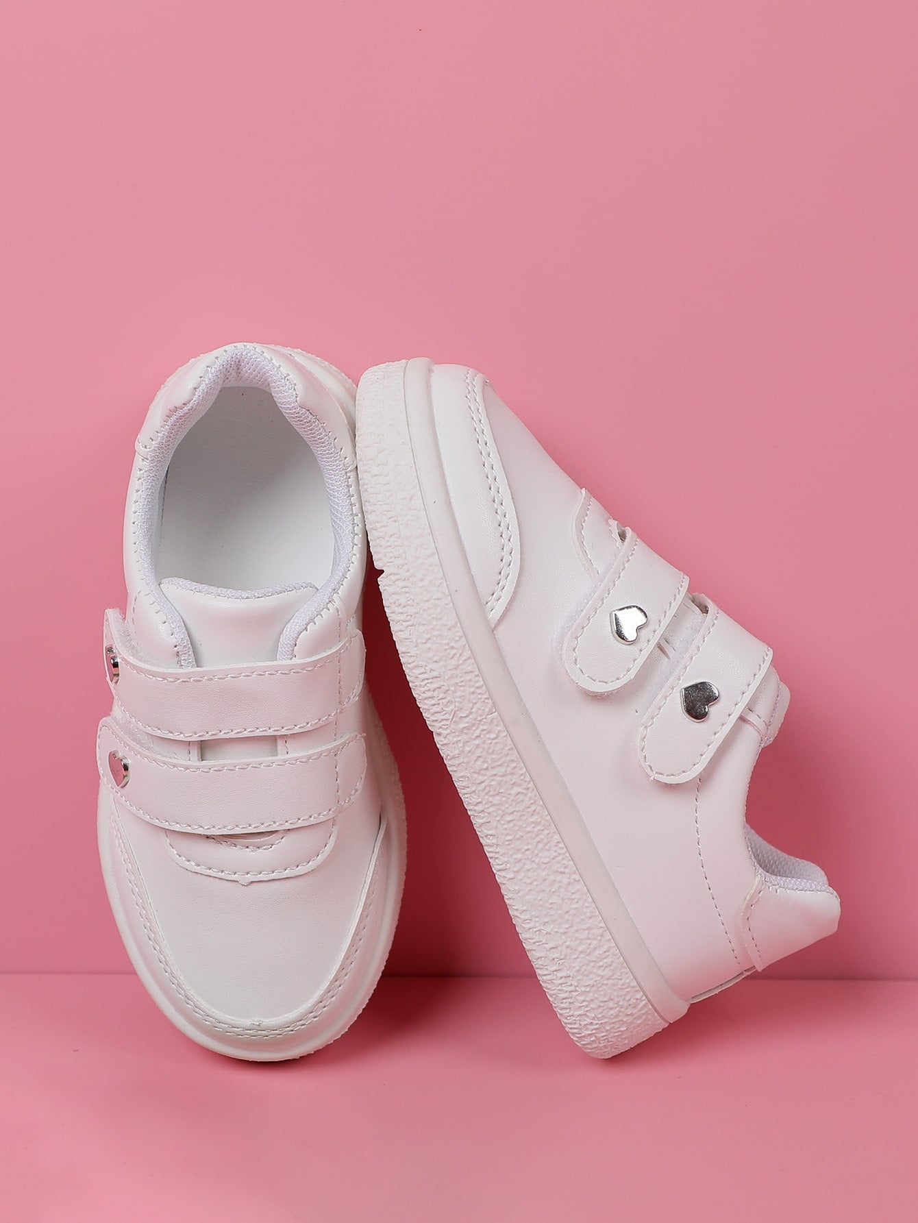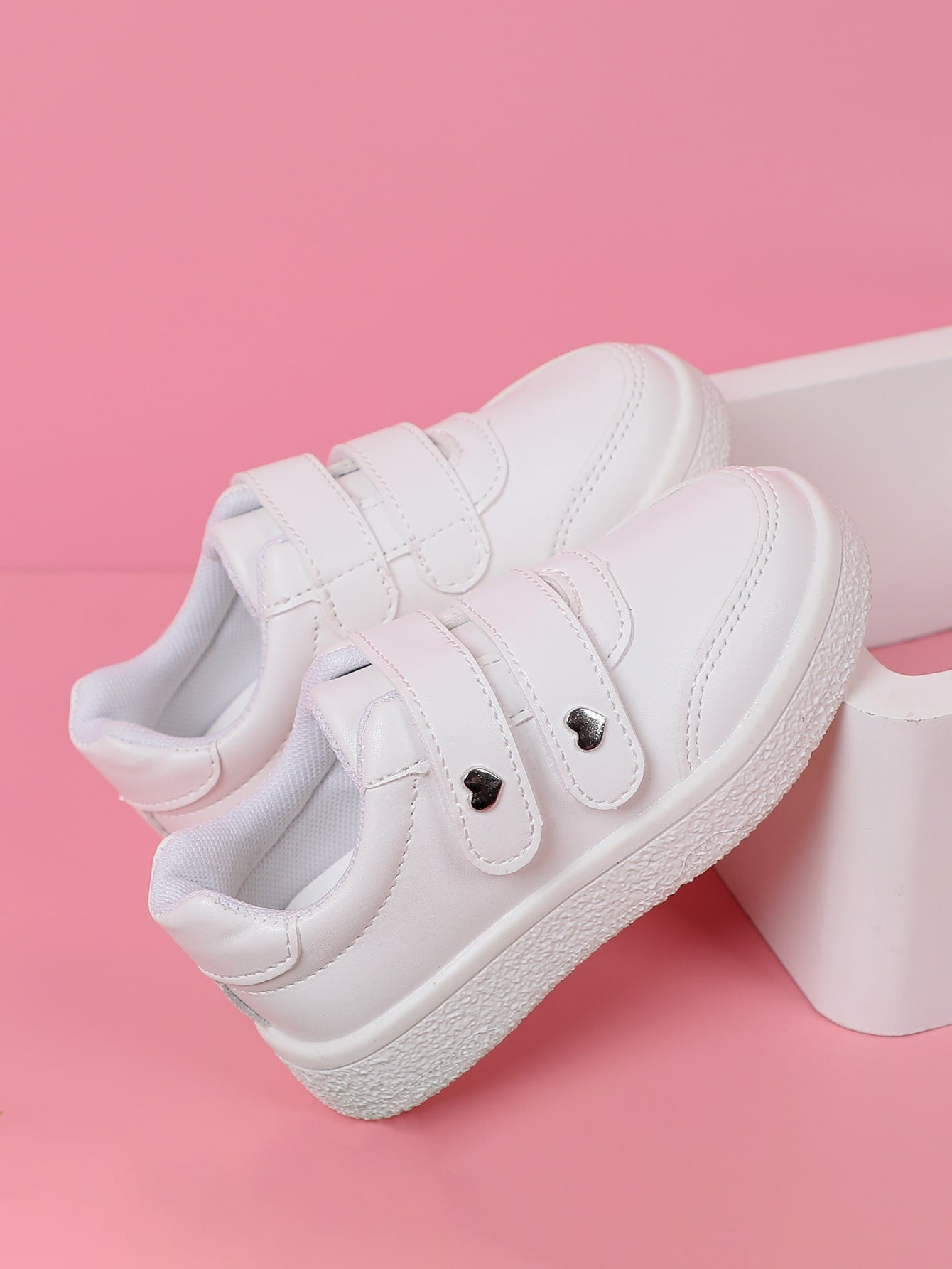 Girls Heart Studded Decor Hook-and-loop Fastener Sneakers Fashion White Skate Shoes