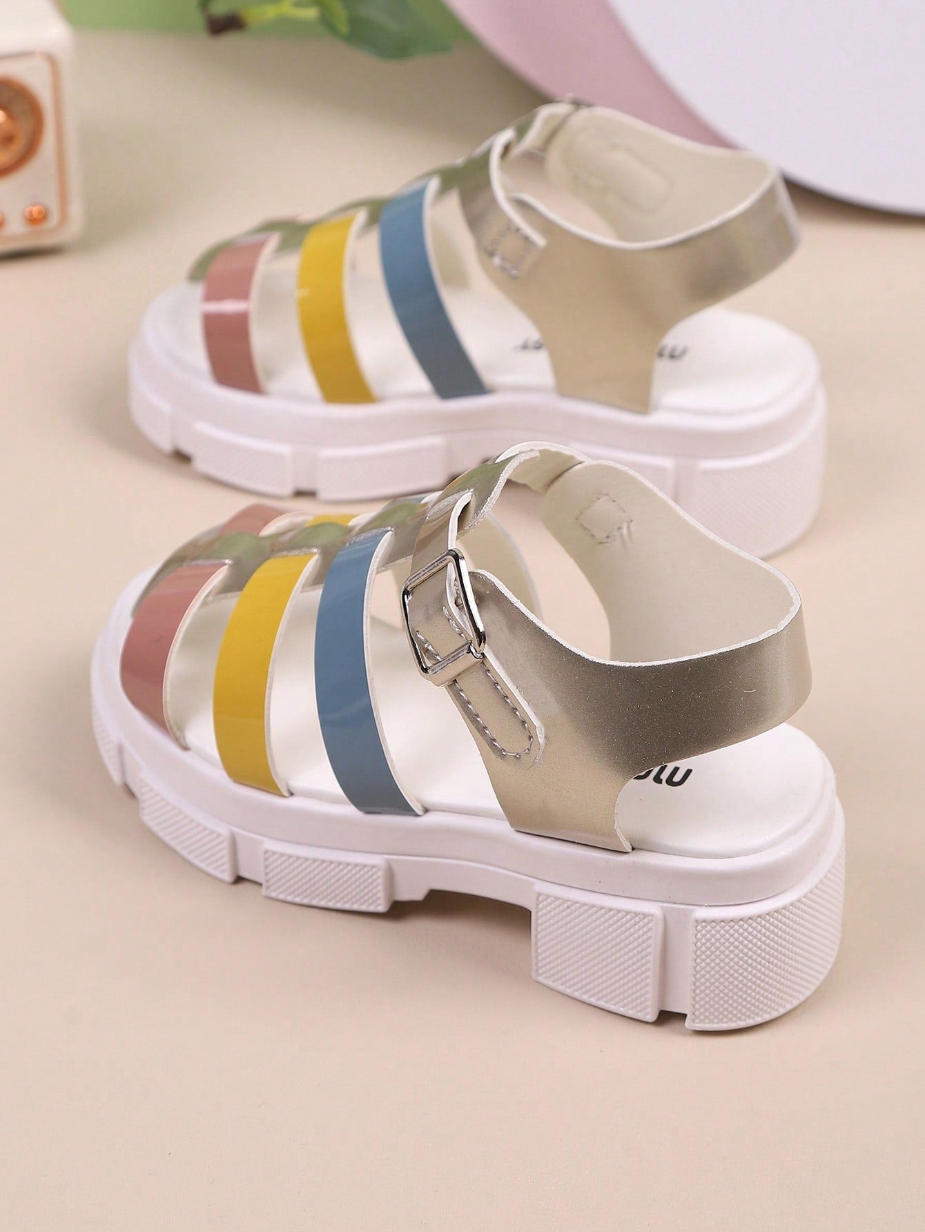 R Girls' Stylish Roman Sandals, Thick-Soled High-Heeled Shoes, Elegant Princess Shoes, Suitable For Daily