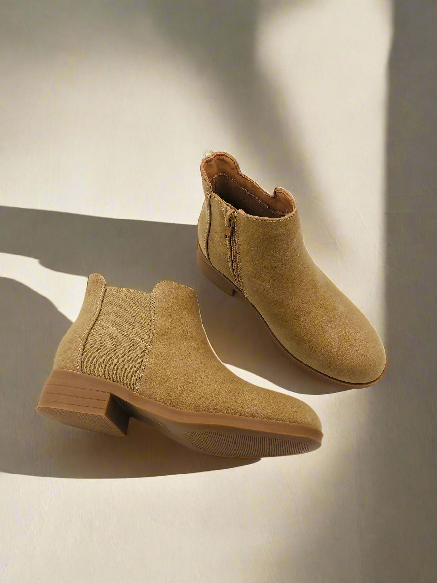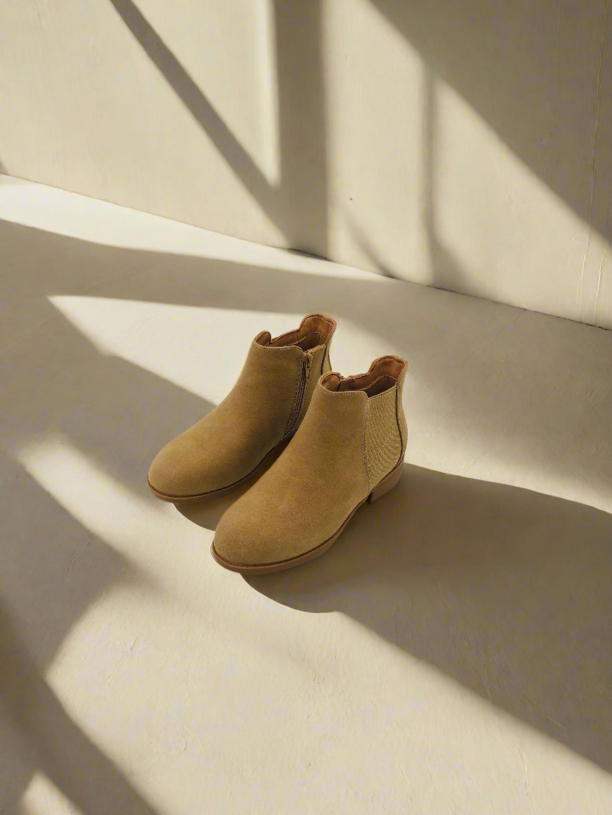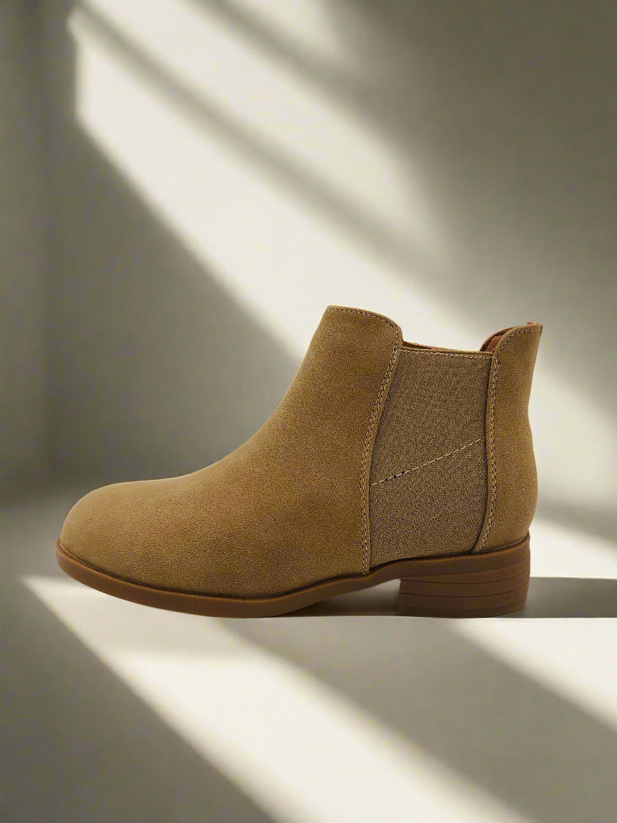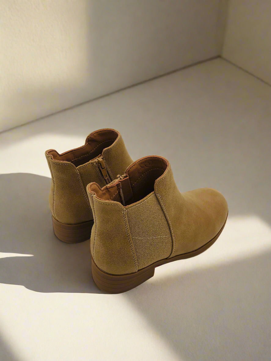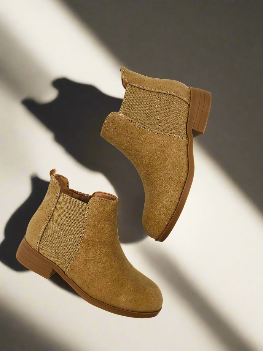 حذاء تشيلسي باللون الجملي مع جوانب مرنة وكعب عريض. هذه الأحذية هي إضافة أنيقة لأي خزانة ملابس، مثالية للمناسبات اليومية والرسمية على حد سواء. توفر الراحة والمتانة وسهلة الارتداء طوال اليوم.