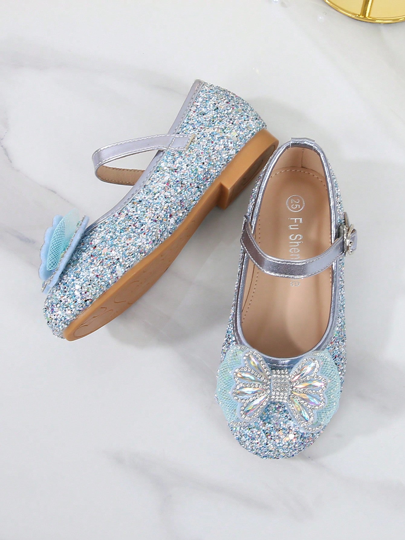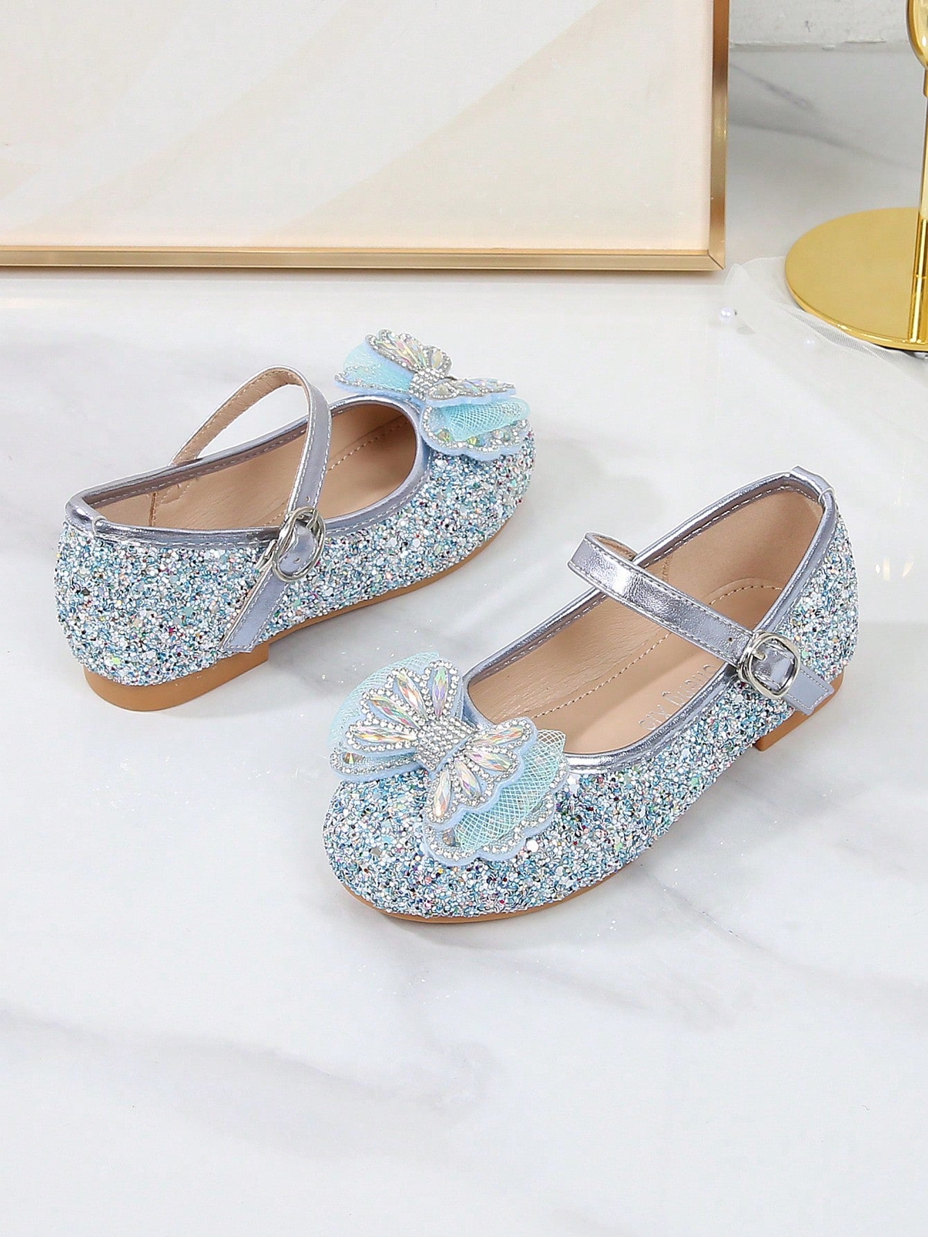 kids Girls' Fashion Shiny Sequin Bow Ballet Flat Party Wedding Dance Shoes