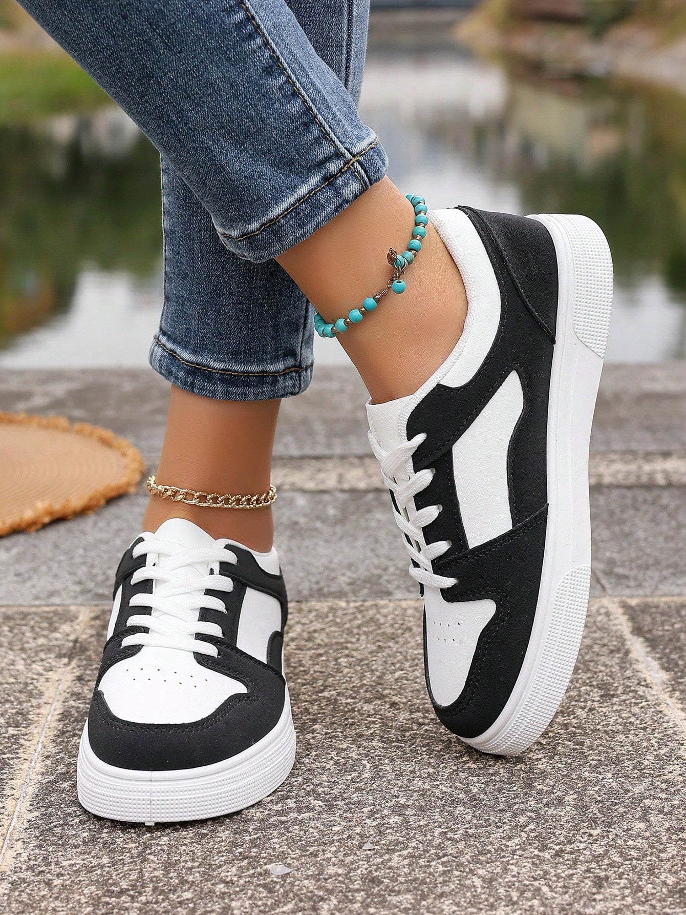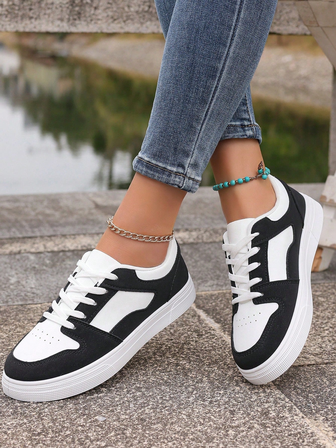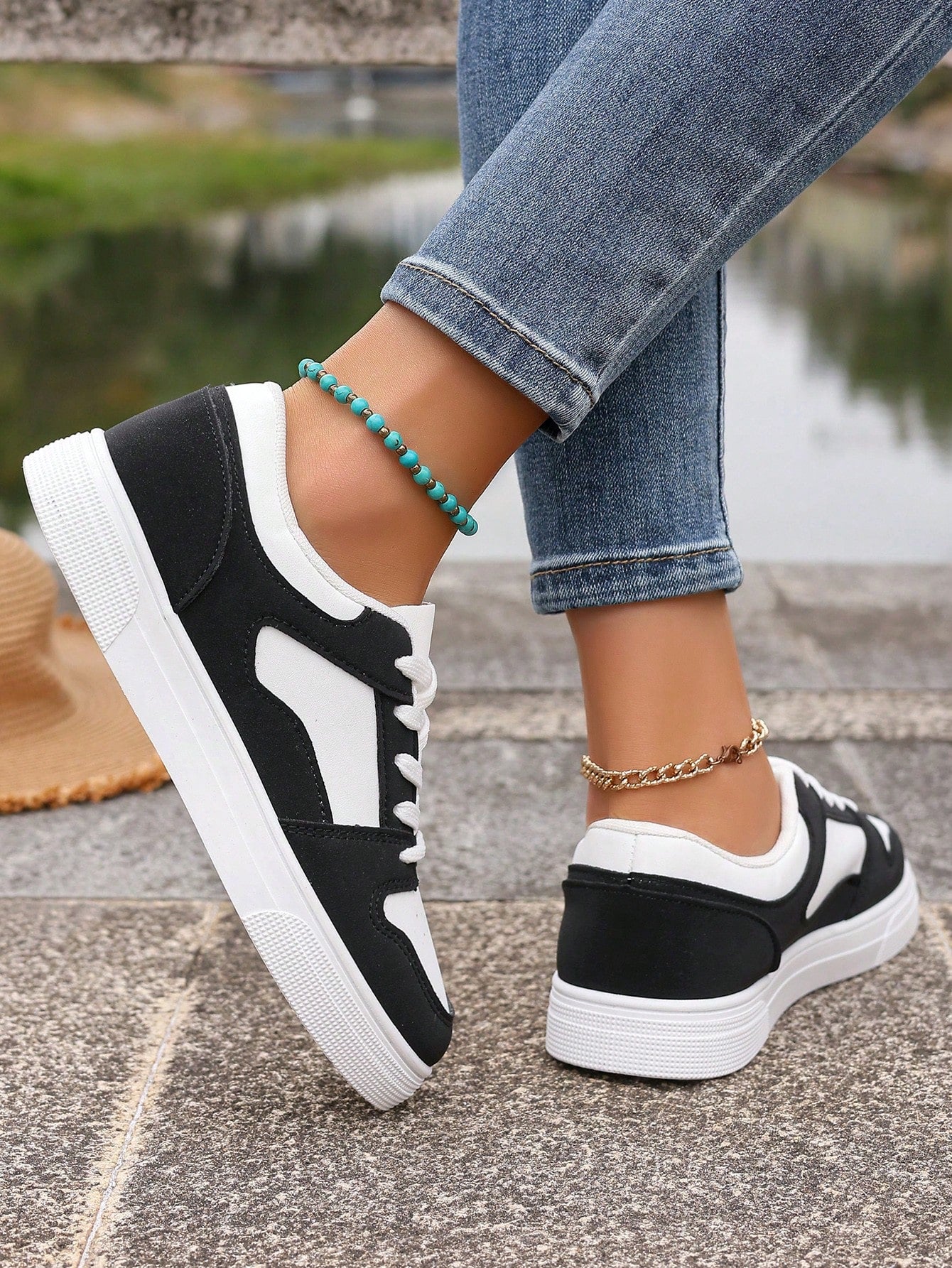 زوج واحد من الأحذية الرياضية الكلاسيكية الجديدة ذات الرباط، مناسبة لفصلي الربيع والخريف، مناسبة للفتيات وطالبات المرحلة الإعدادية.