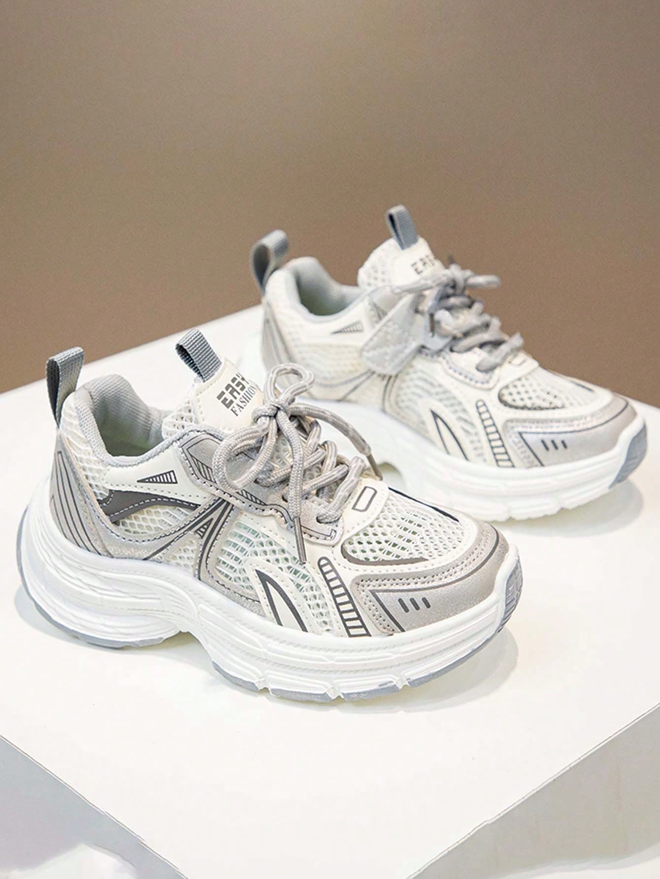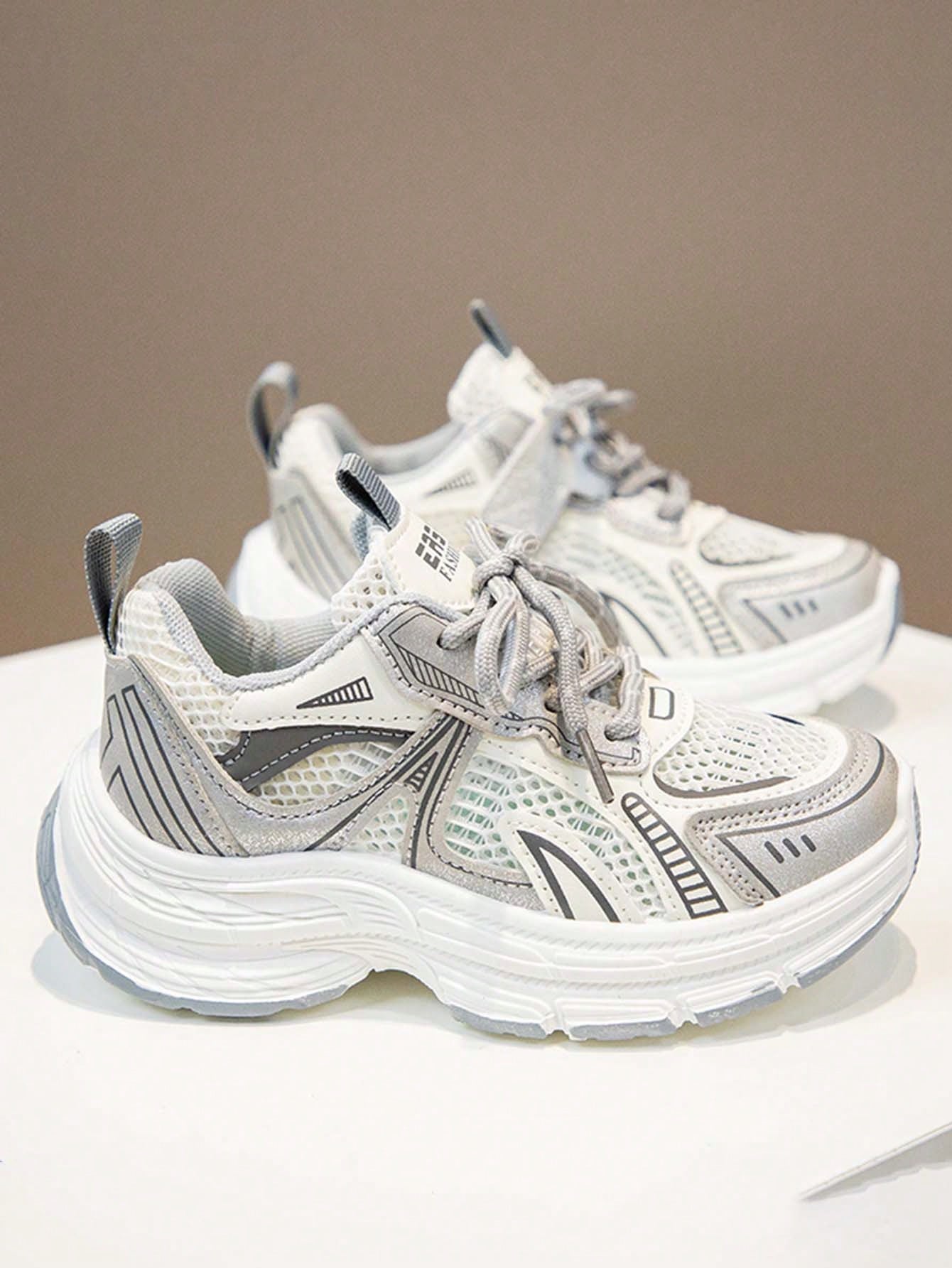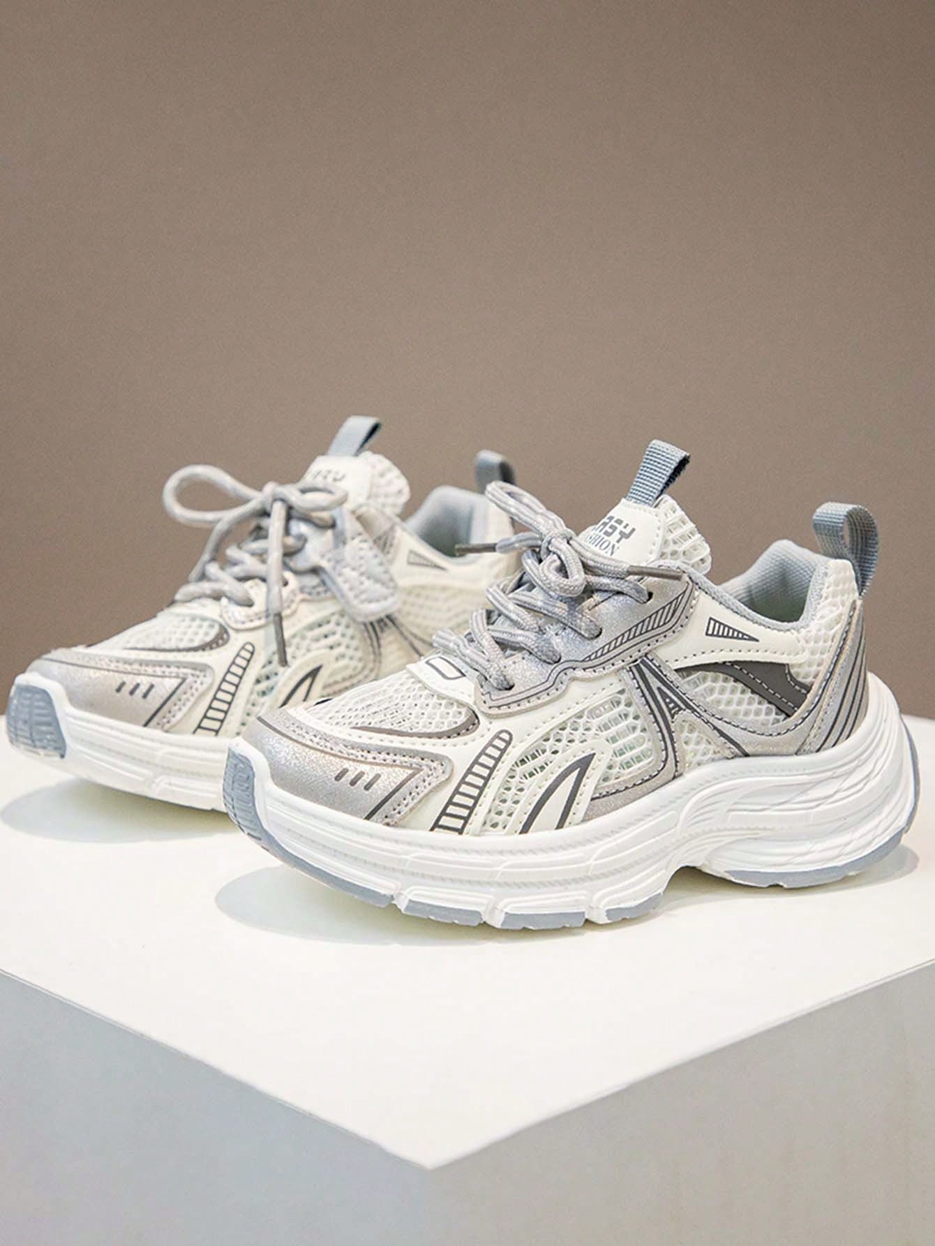 زوج واحد من أحذية رياضية شبكية جديدة للأطفال، مناسبة لفصل الربيع، تسمح بتهوية القدمين.