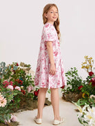 الأطفال - فستان سموك بطباعة زهور بأكمام منتفخة للفتيات