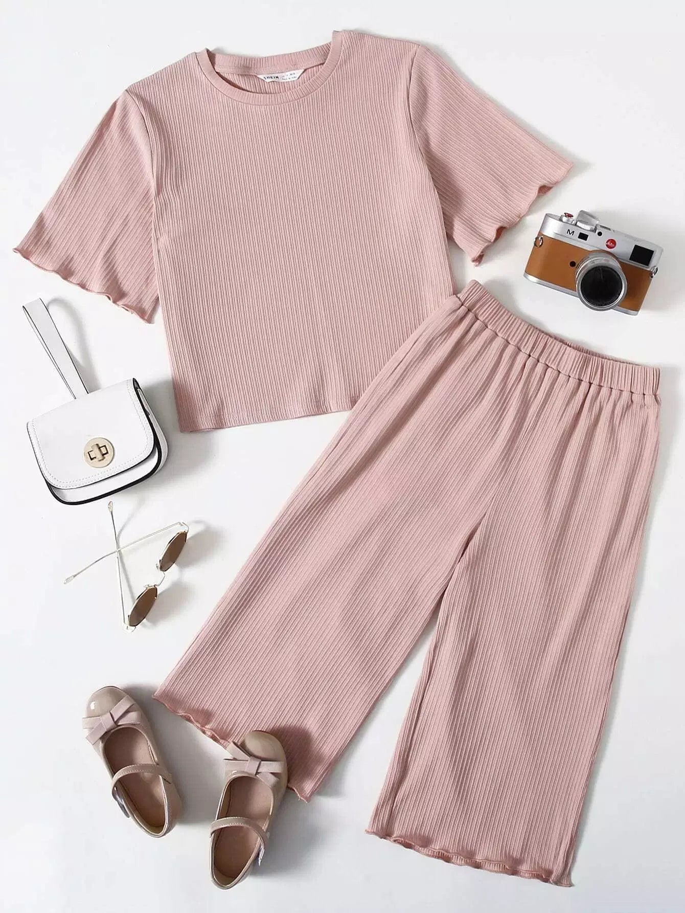 طقم بناتي مكون من بلوزة محبوكة وبنطلون بقصّة خس