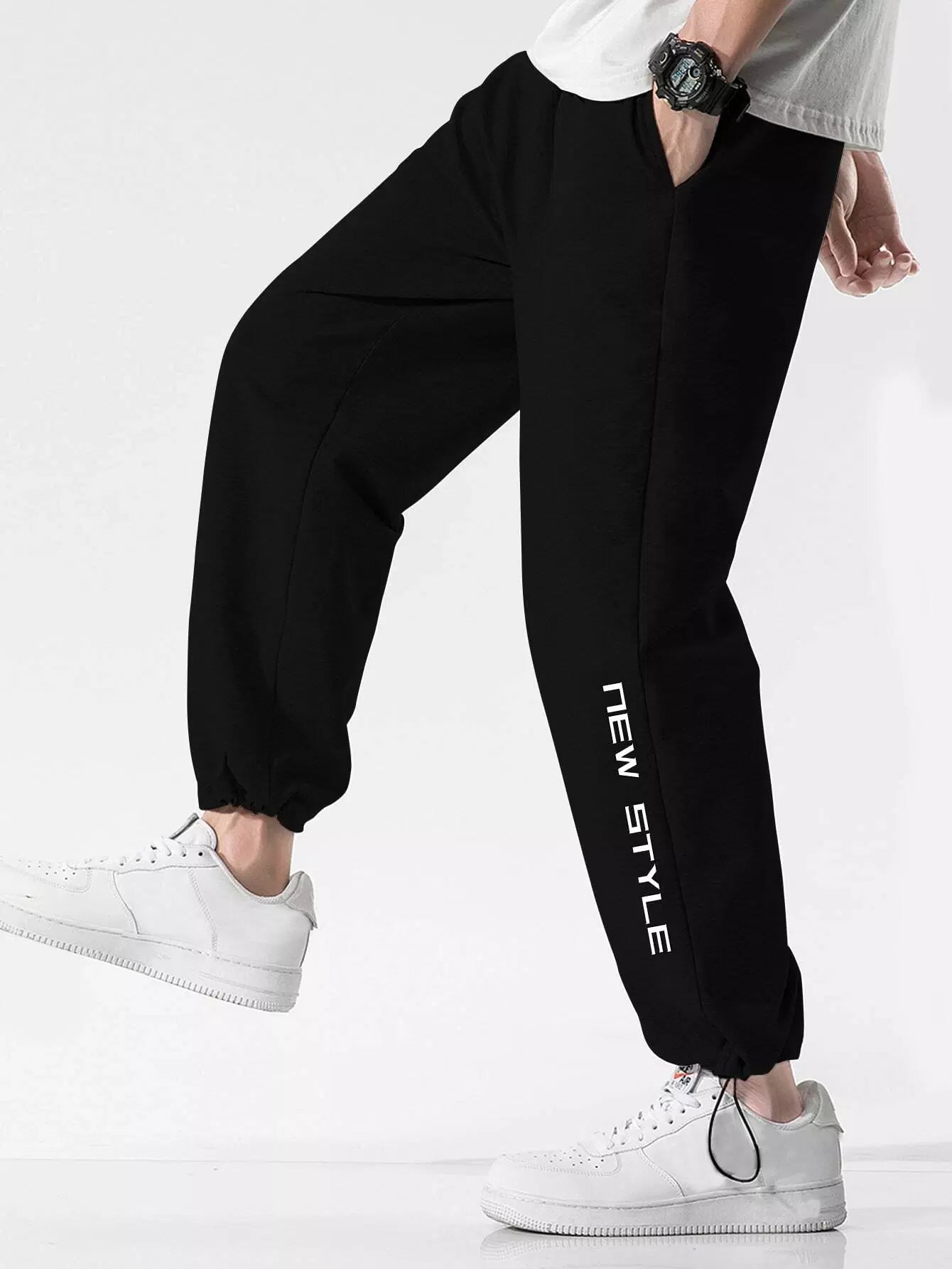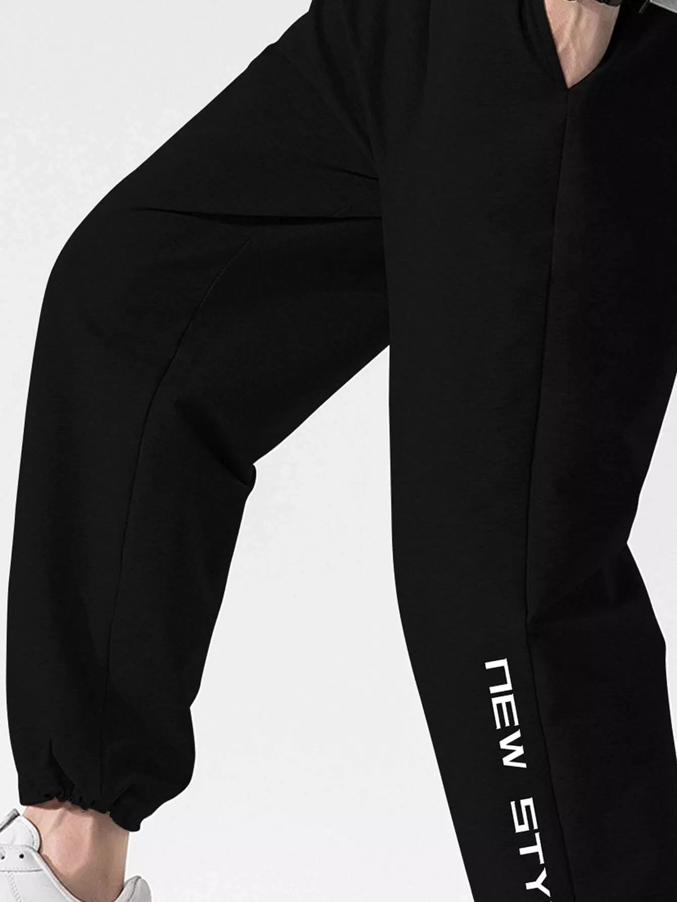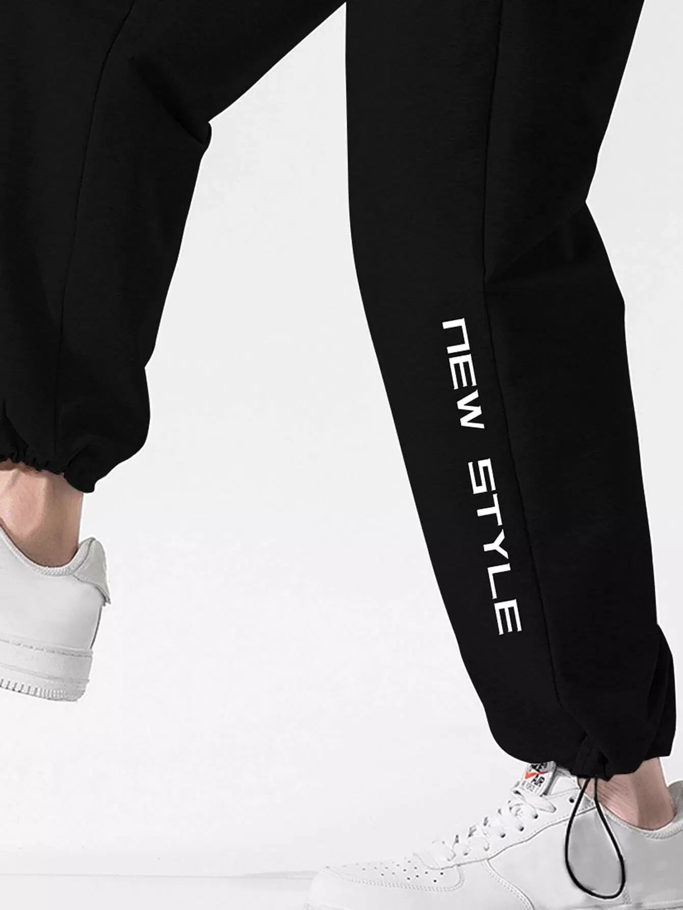 بنطال رياضي رجالي بحافة رباط جرافيك بحرف حرفي للرجال