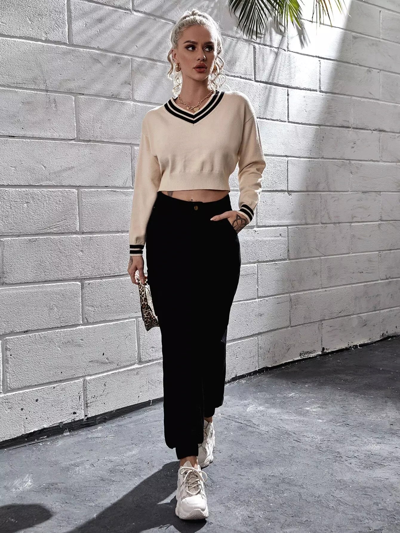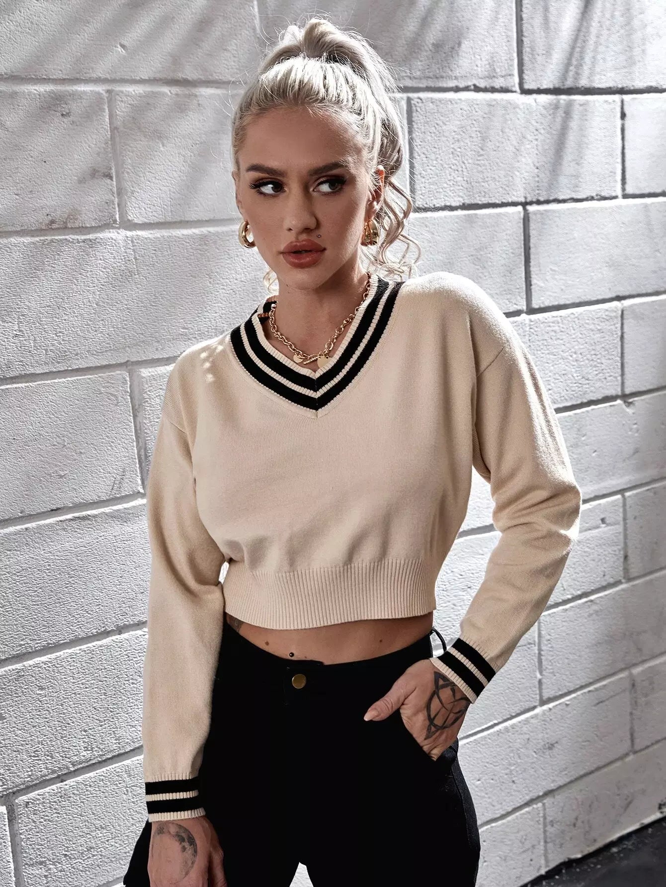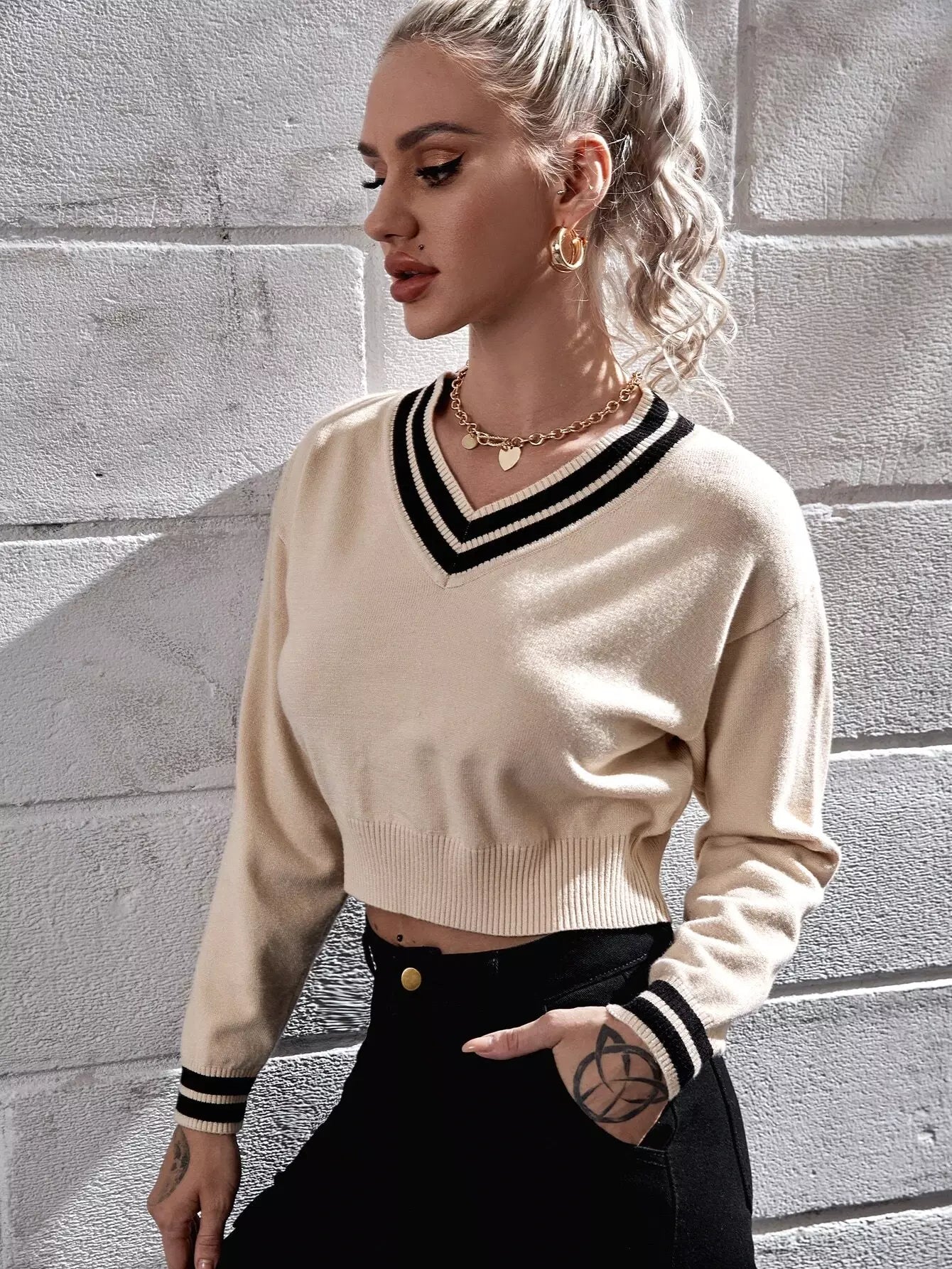 سترة قصيرة مخططة منسدلة الكتفين مخططة