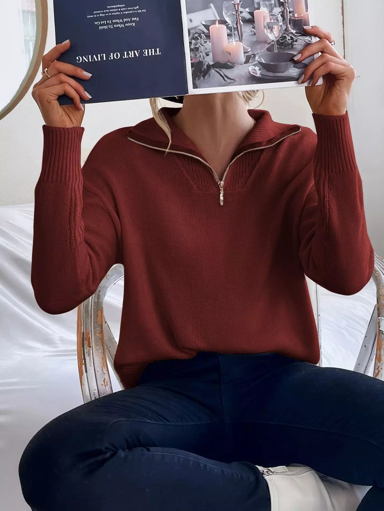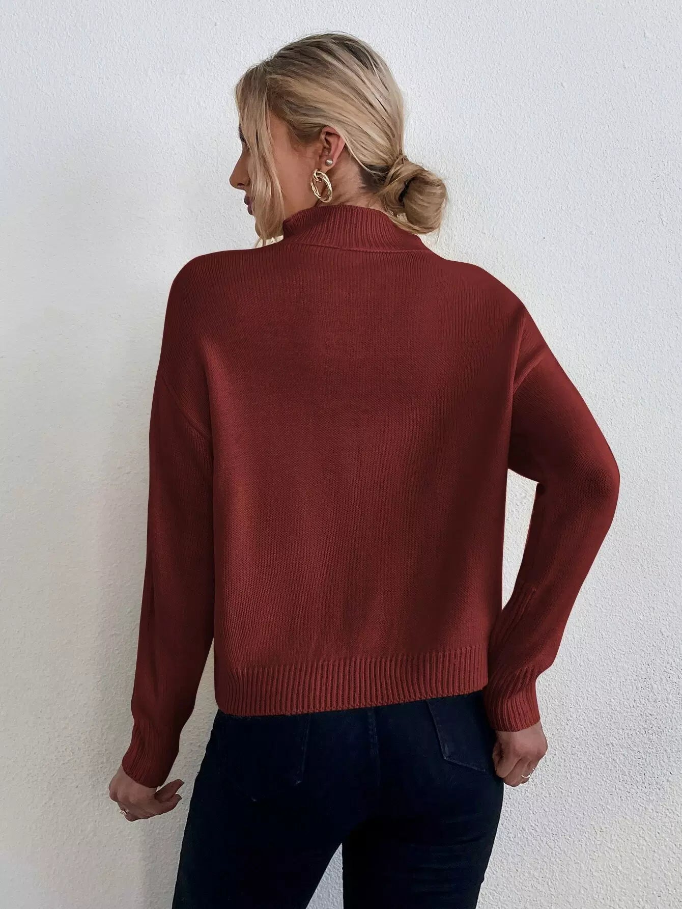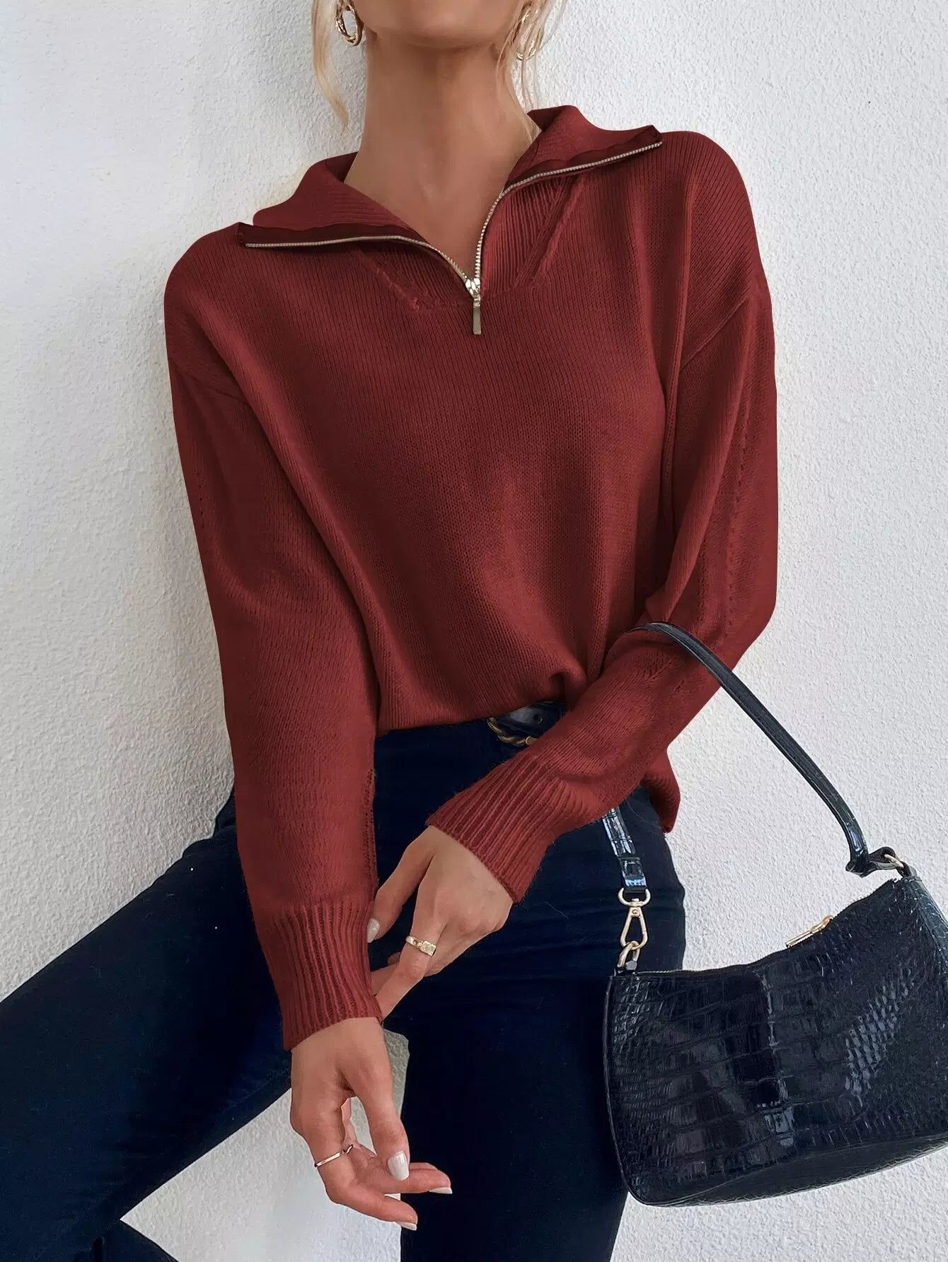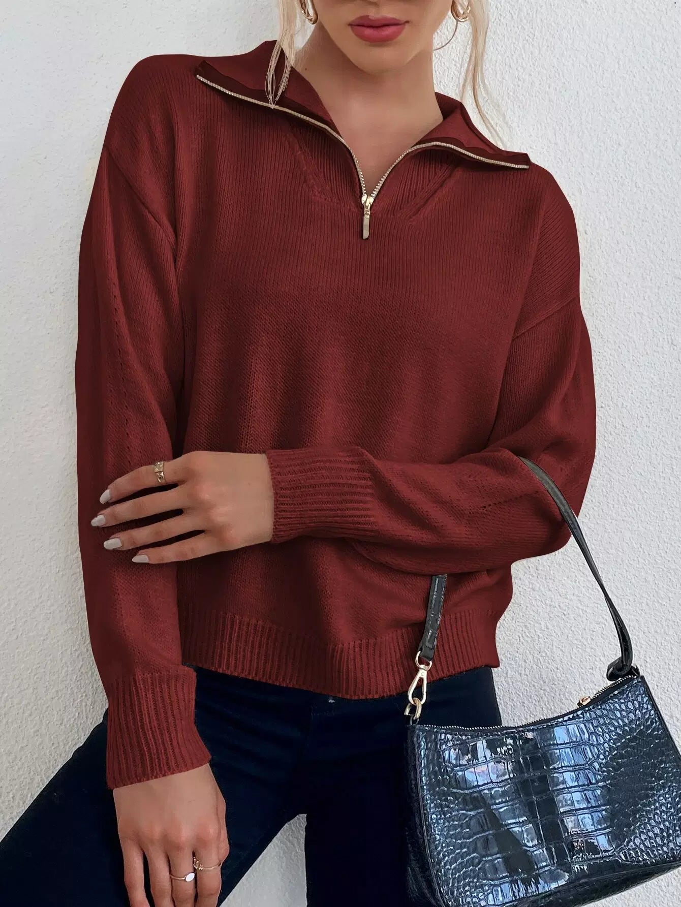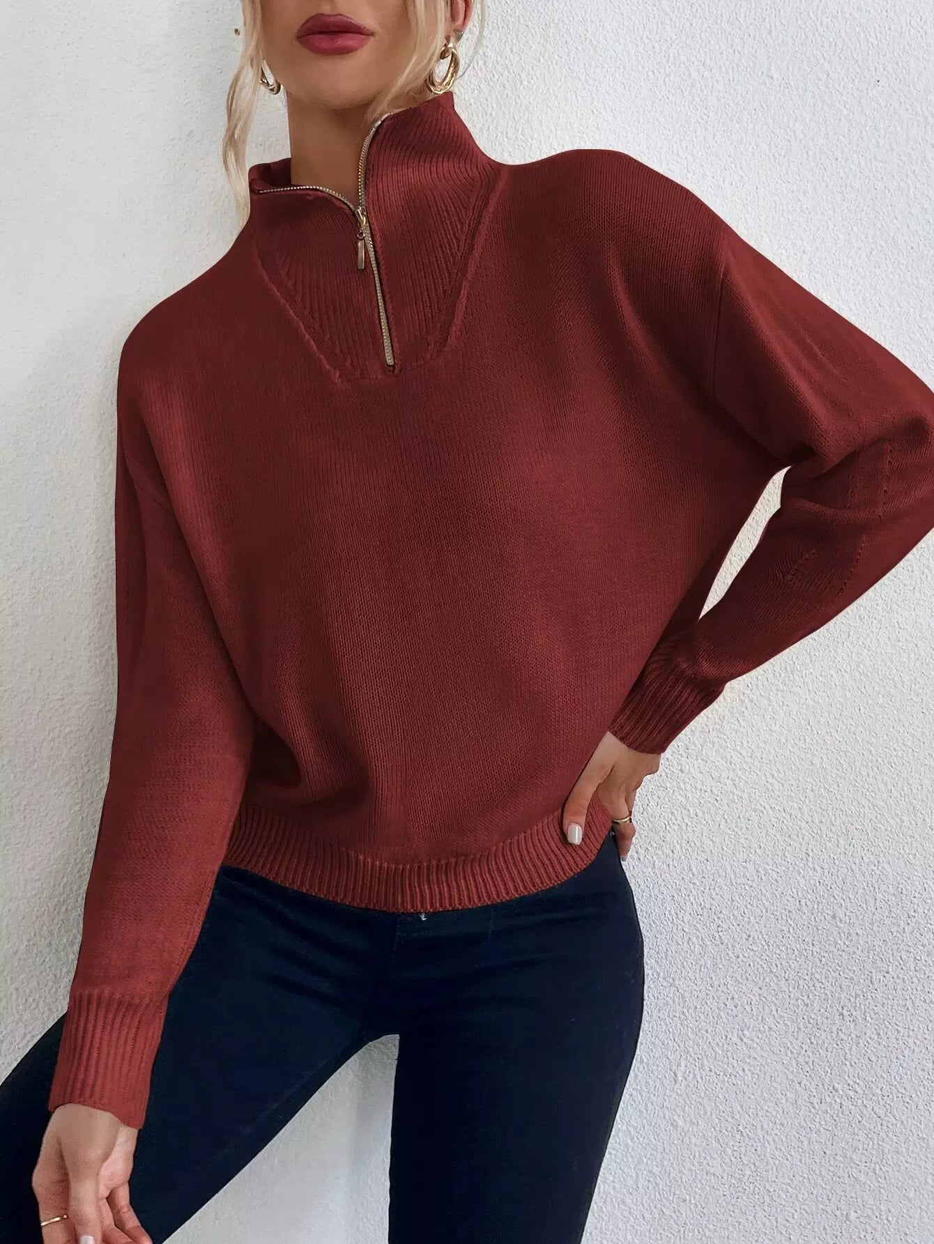 للنساء - سترة بكتف منسدل بنصف سحاب