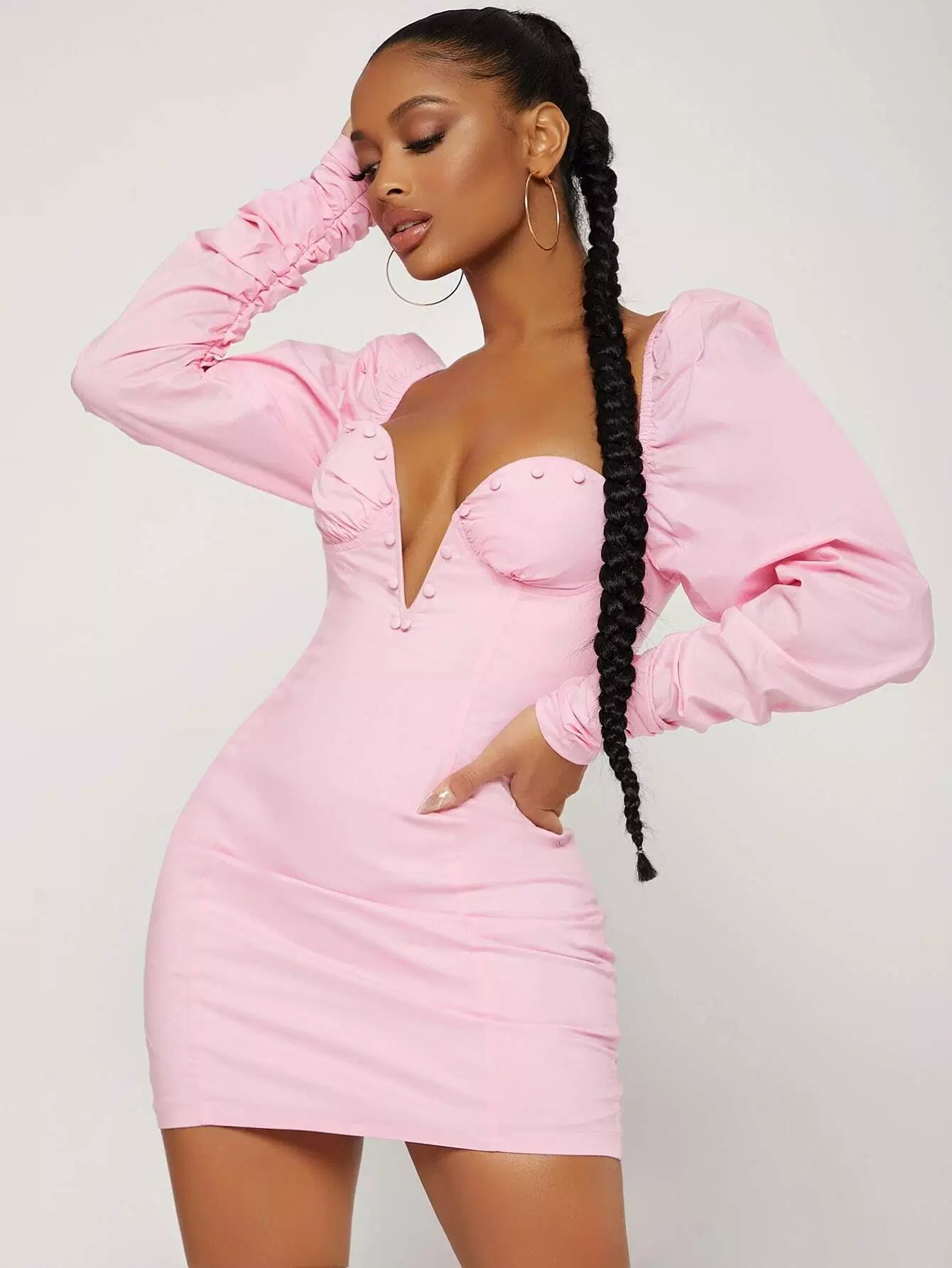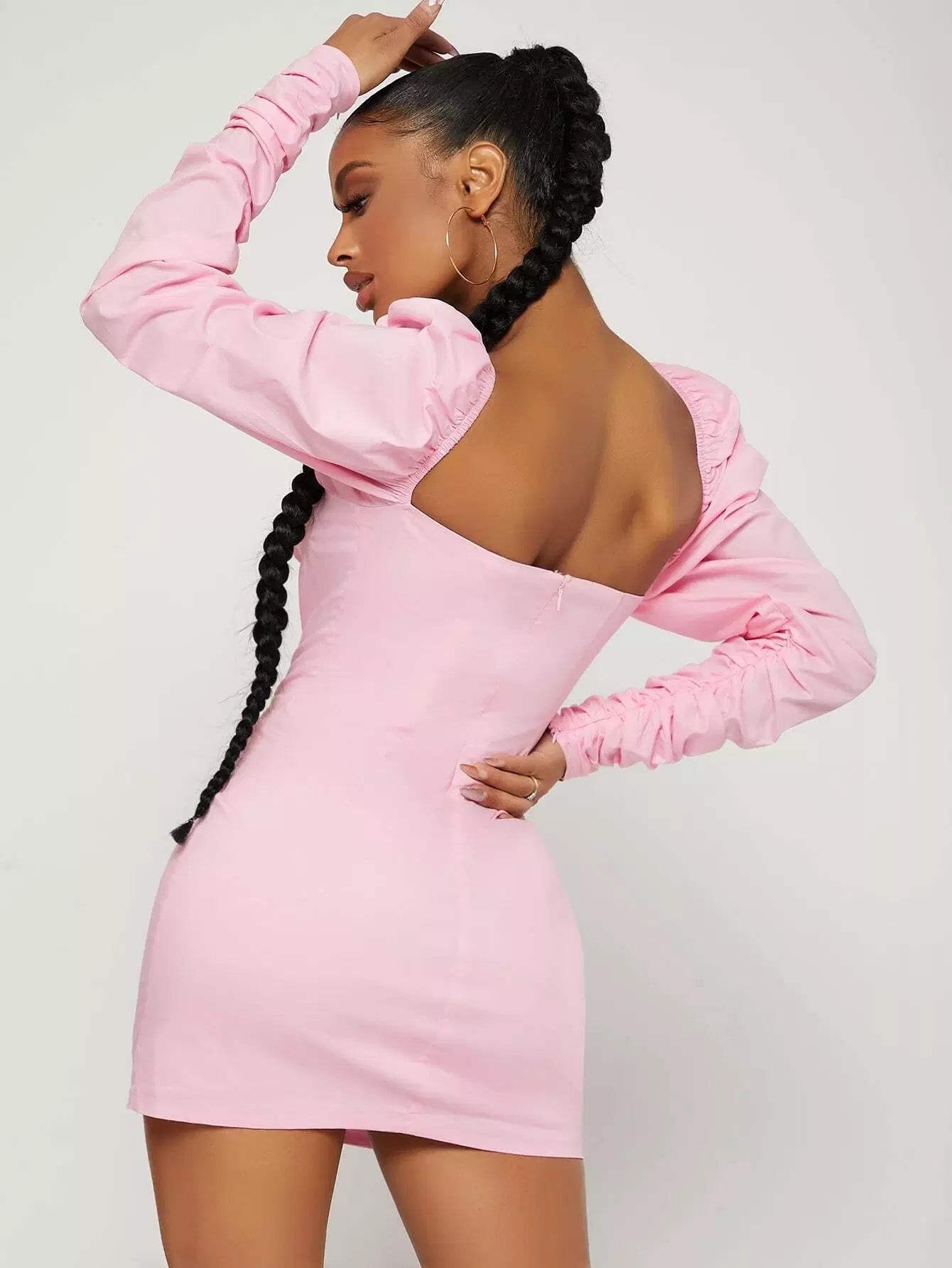 فستان سادة بفتحة عنق مكشكش بأكمام جيجوت سادة