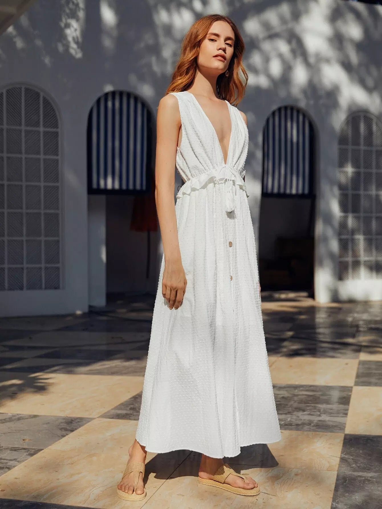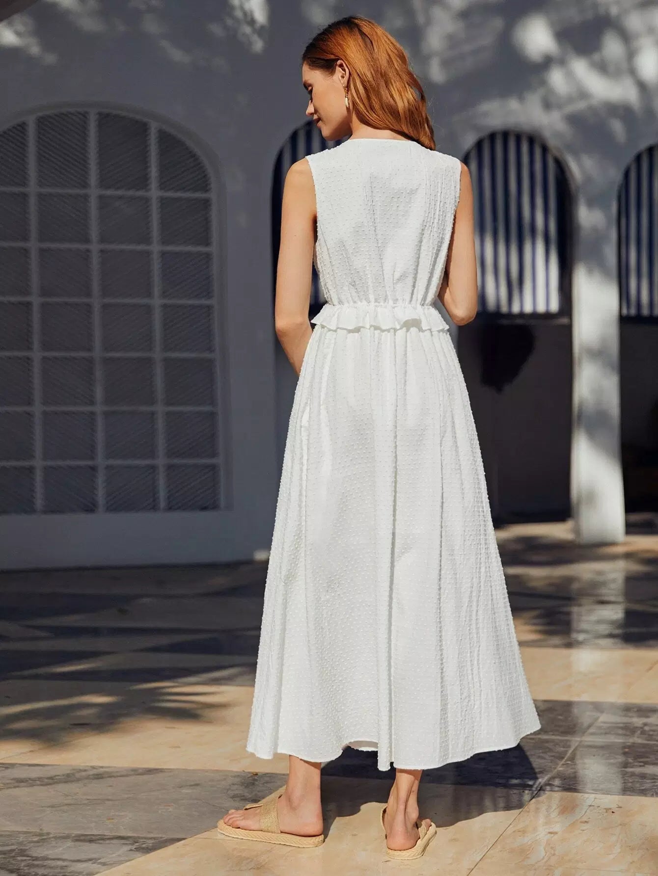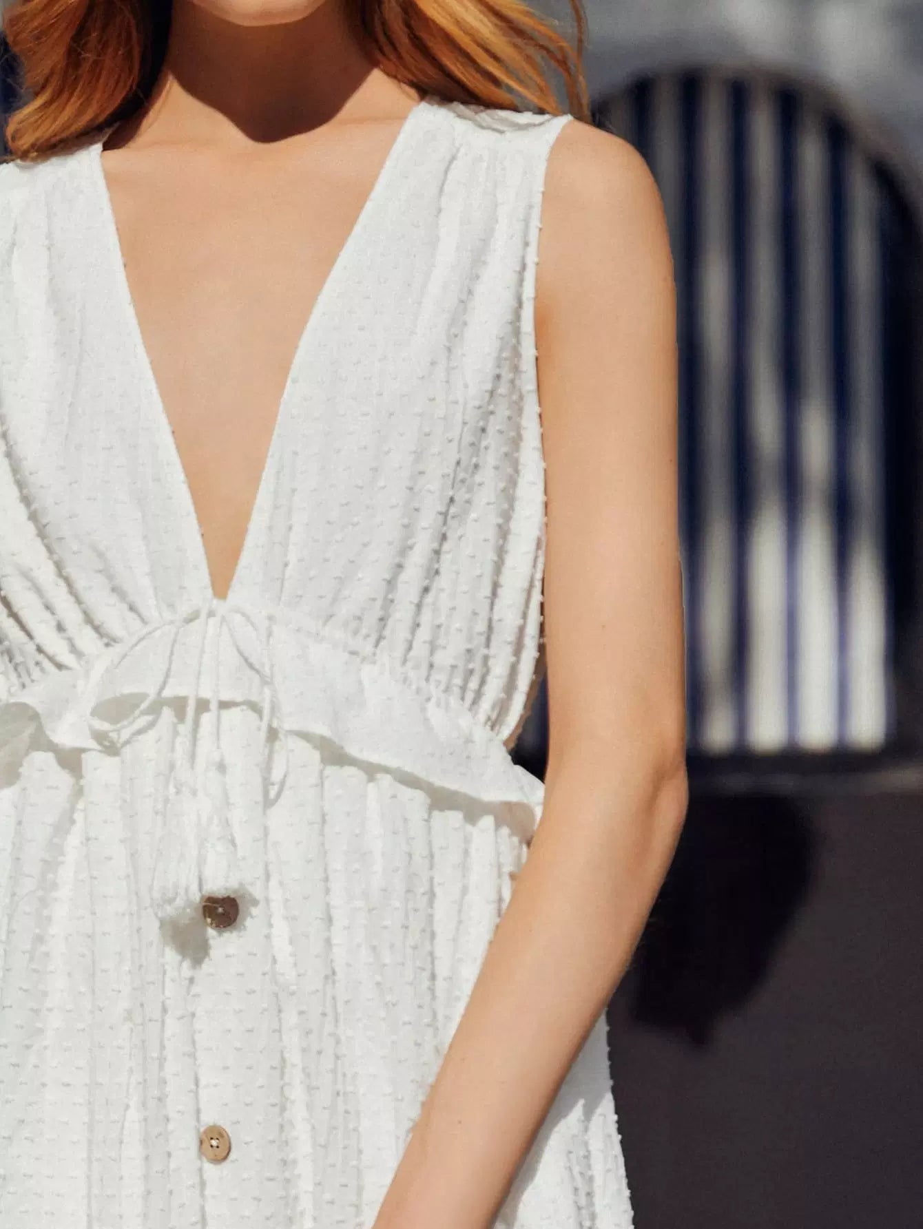 فستان سويس دوت دوت من الأمام بربطة عنق أمامية بشرابة مكشوفة