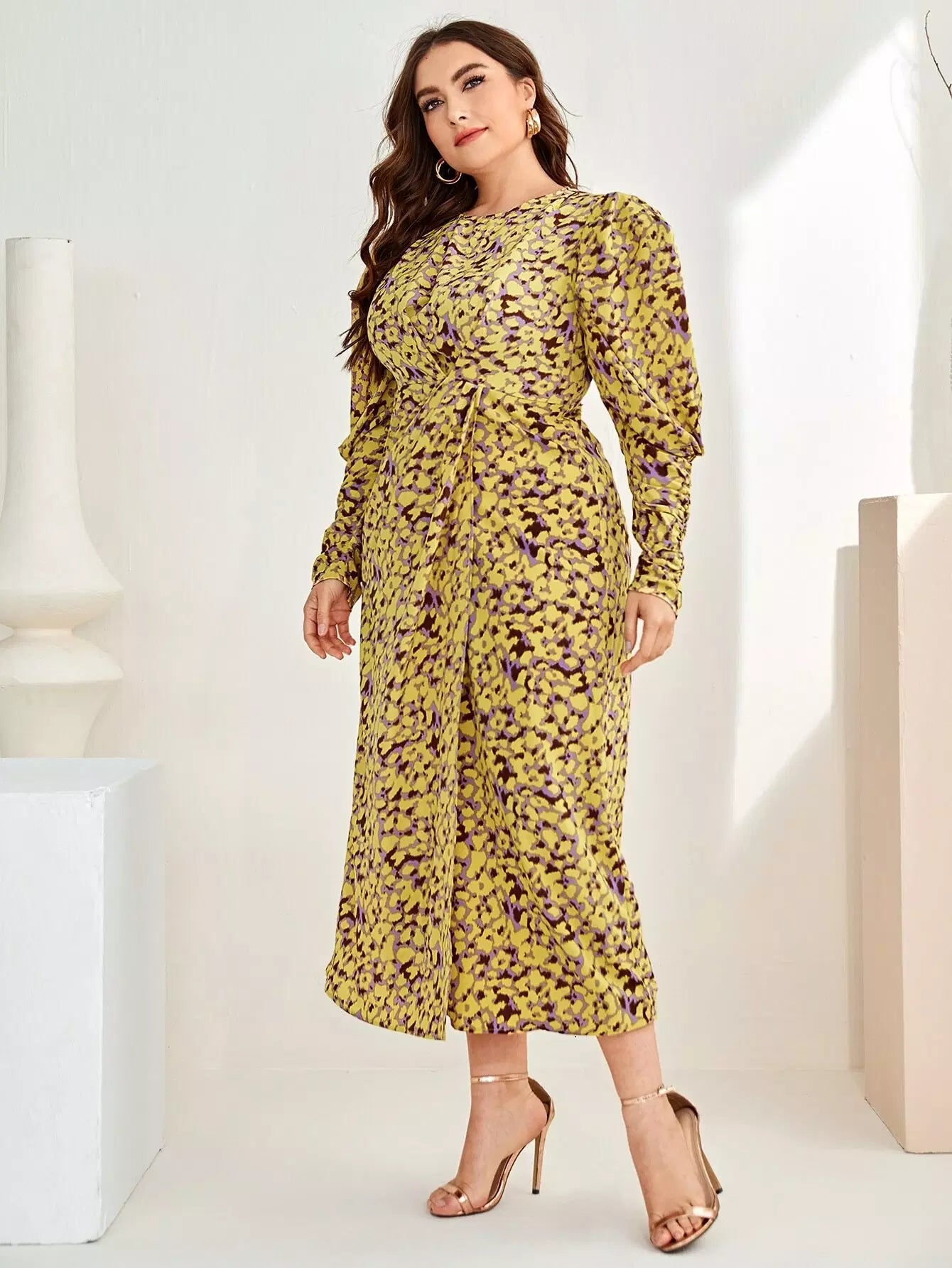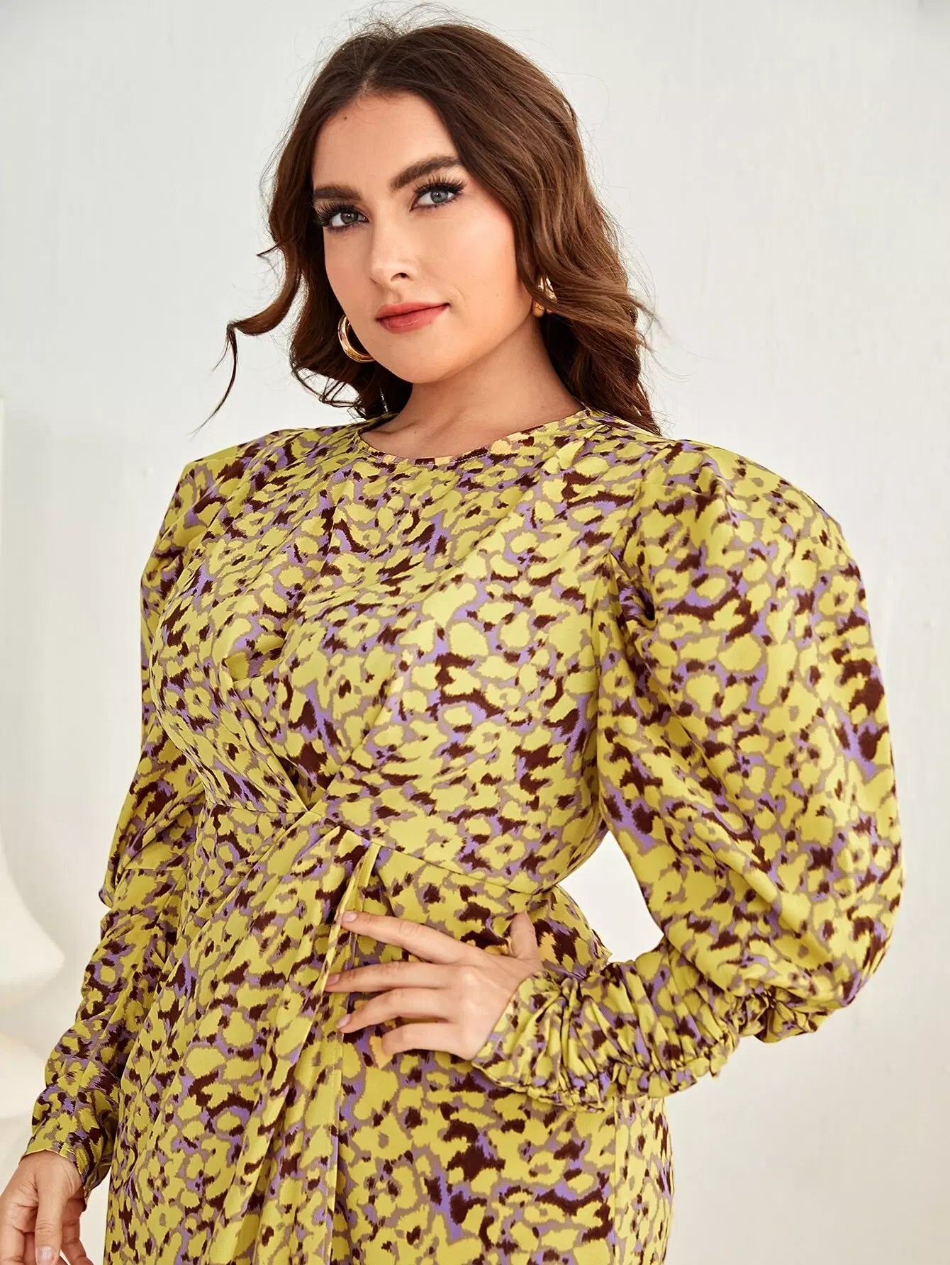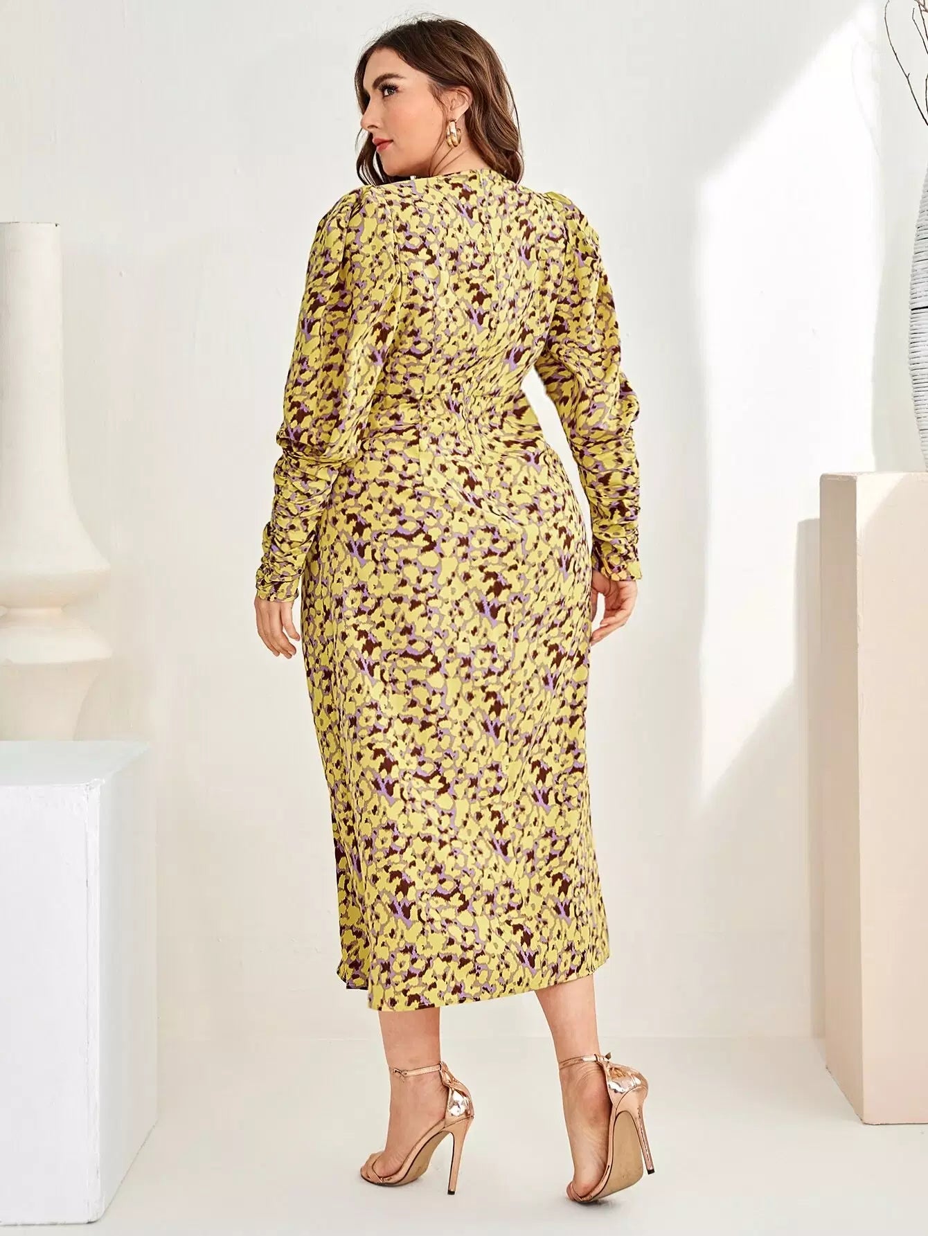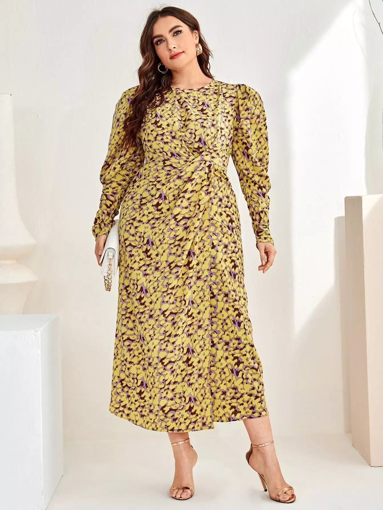 فستان بأكمام جيجوت بأكمام تويست أمامية مطبوعة بالكامل