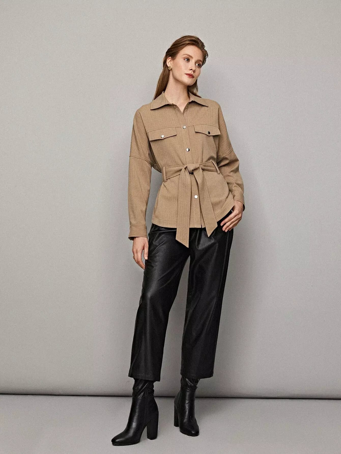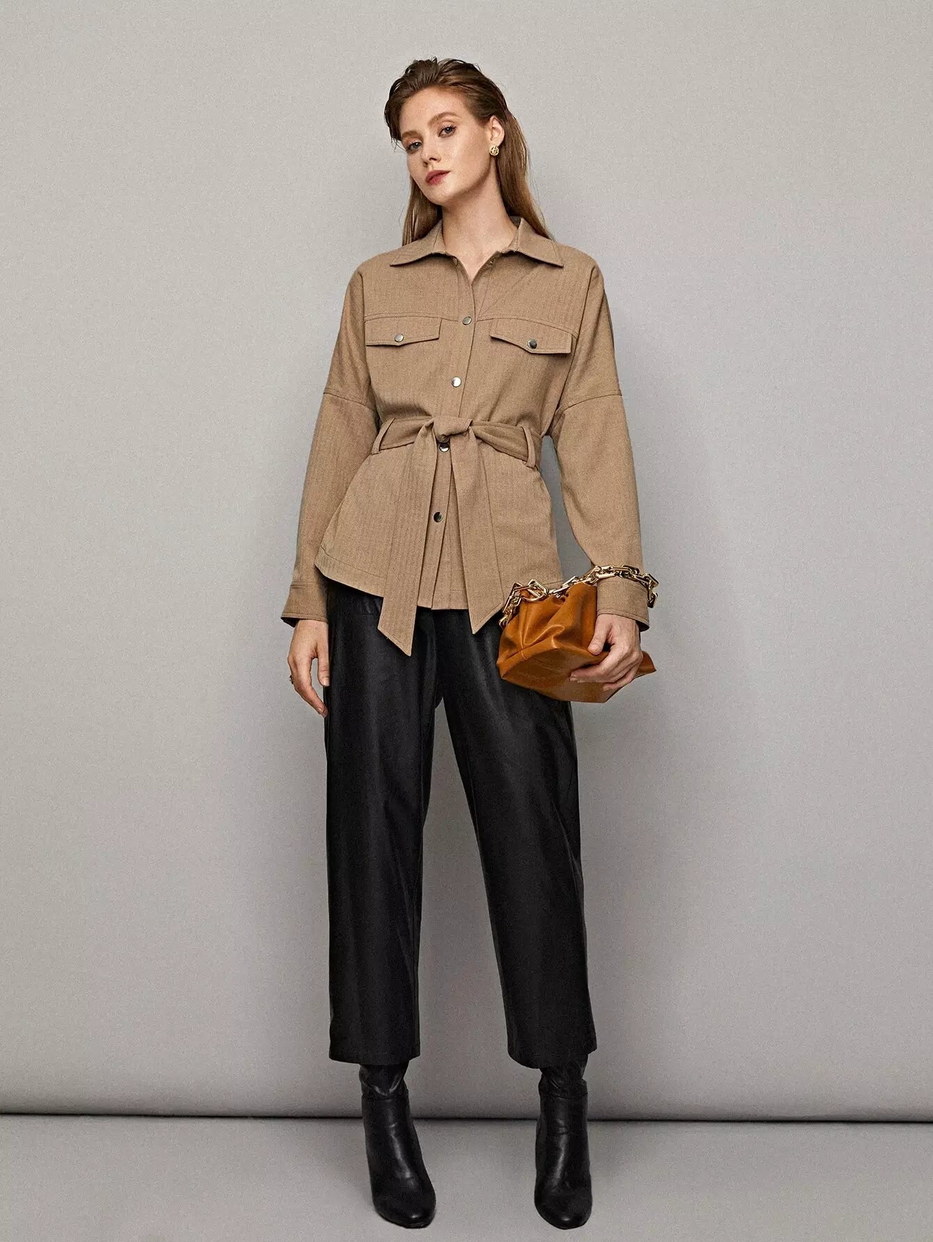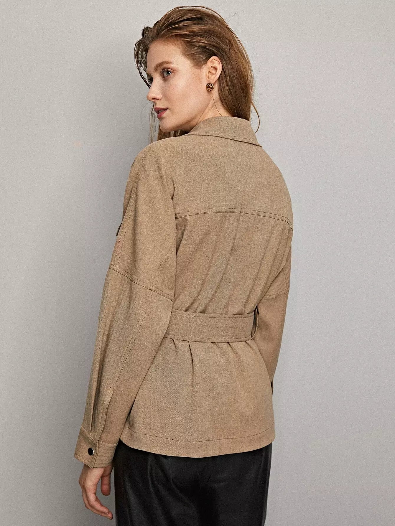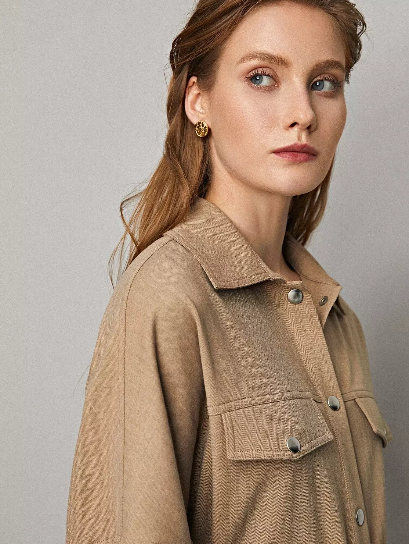 معطف من ألياف لدنة بجيب بقلاب بدون حزام