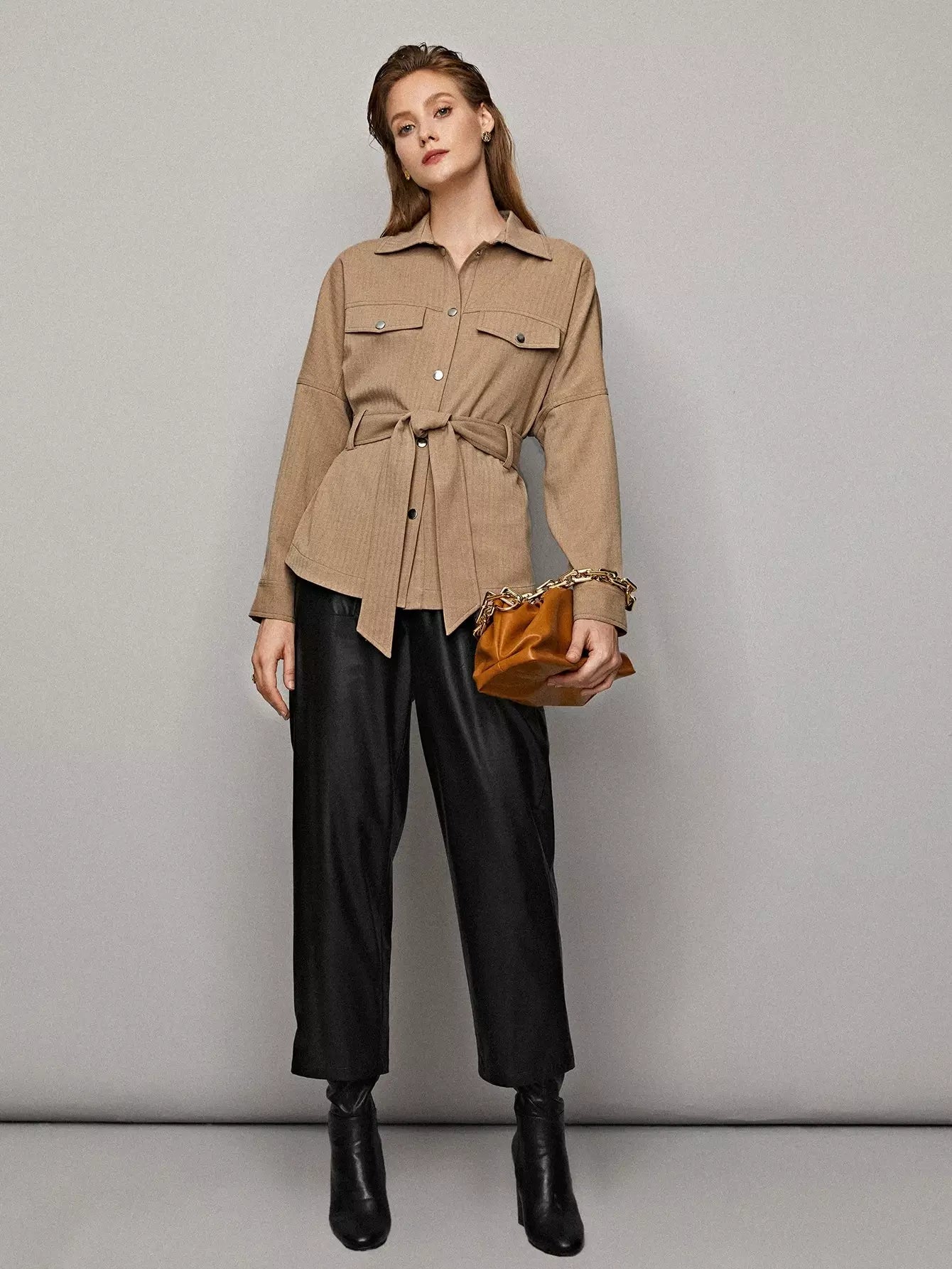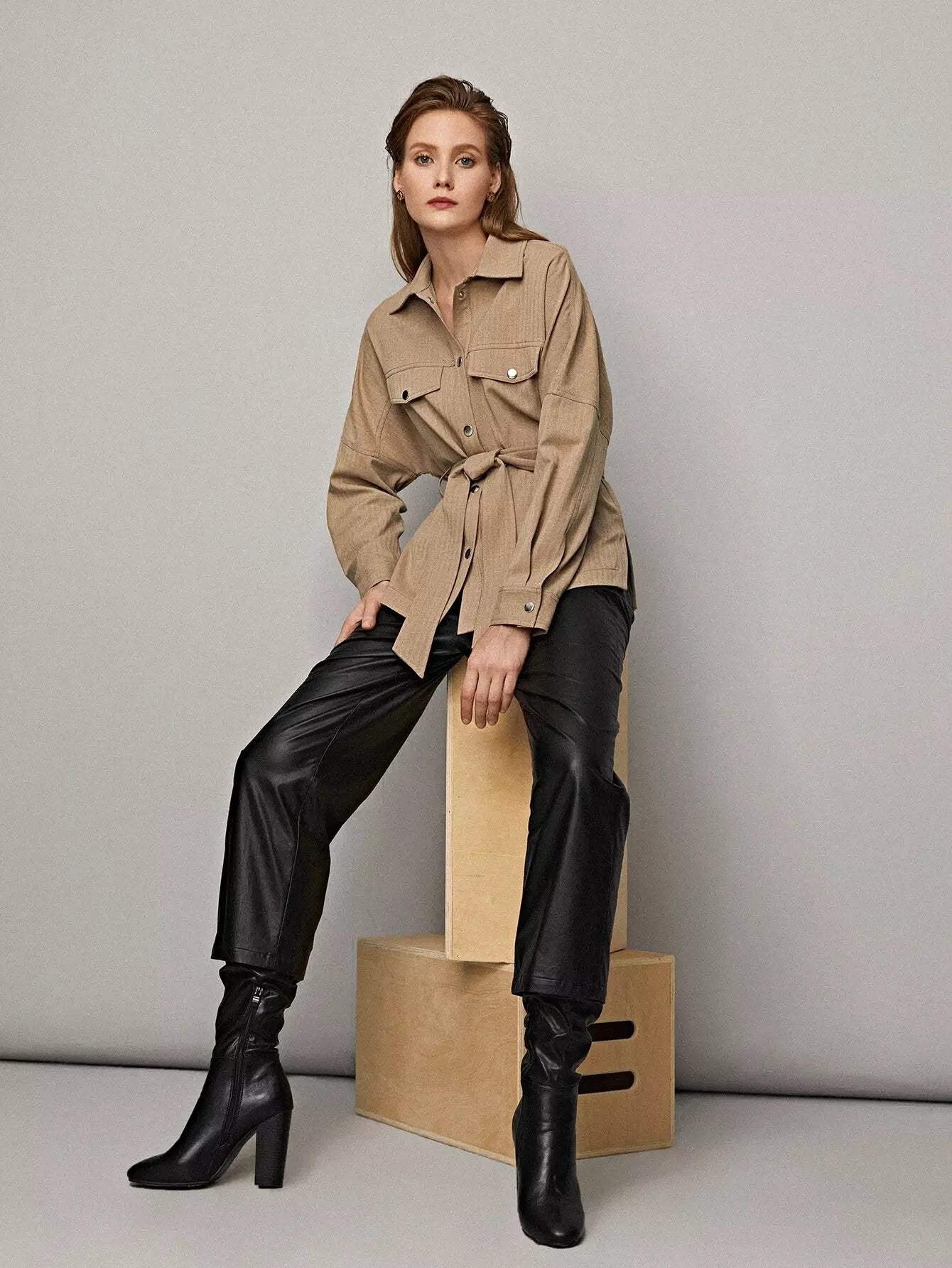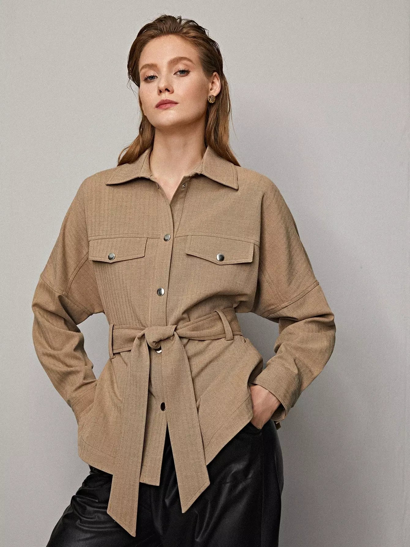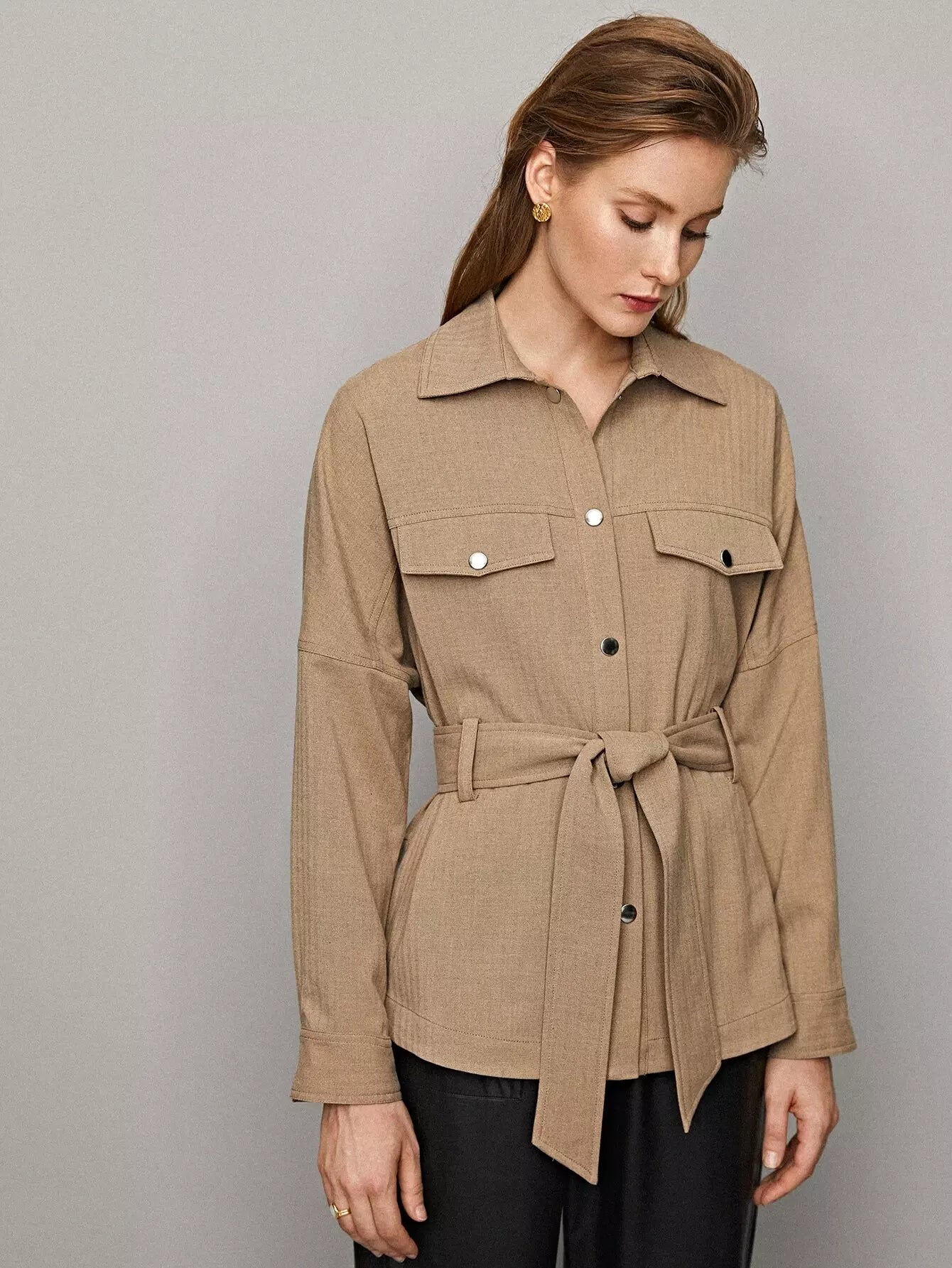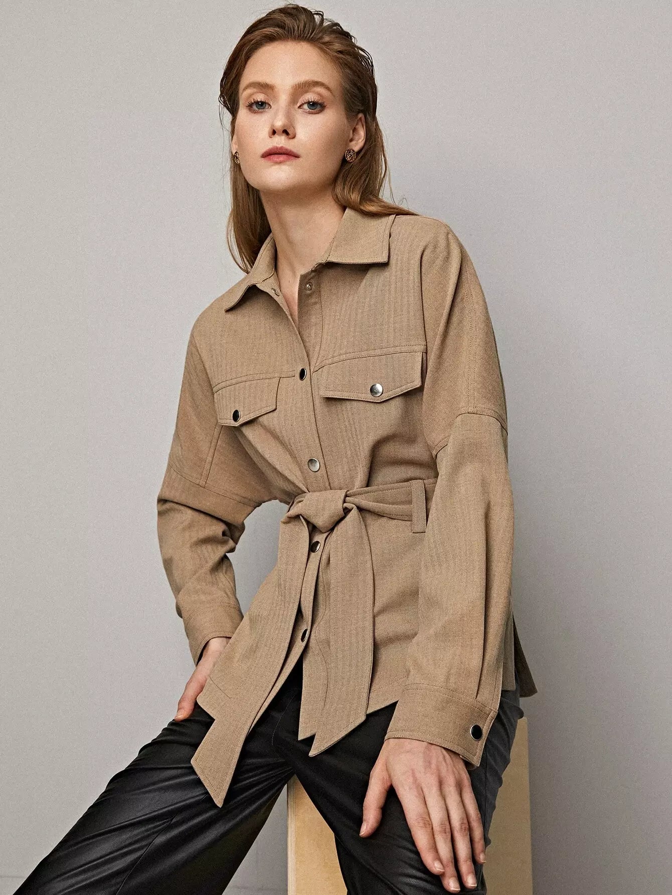 معطف من ألياف لدنة بجيب بقلاب بدون حزام