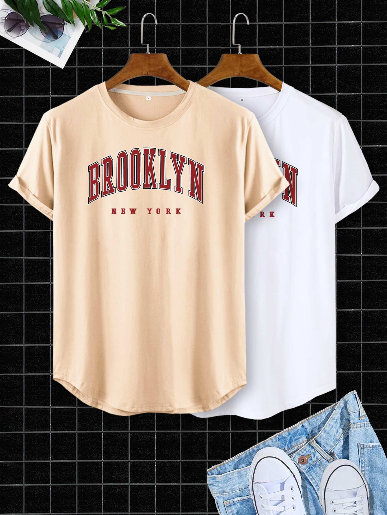 Men 2pcs Letter Graphic Short Sleeve Tee